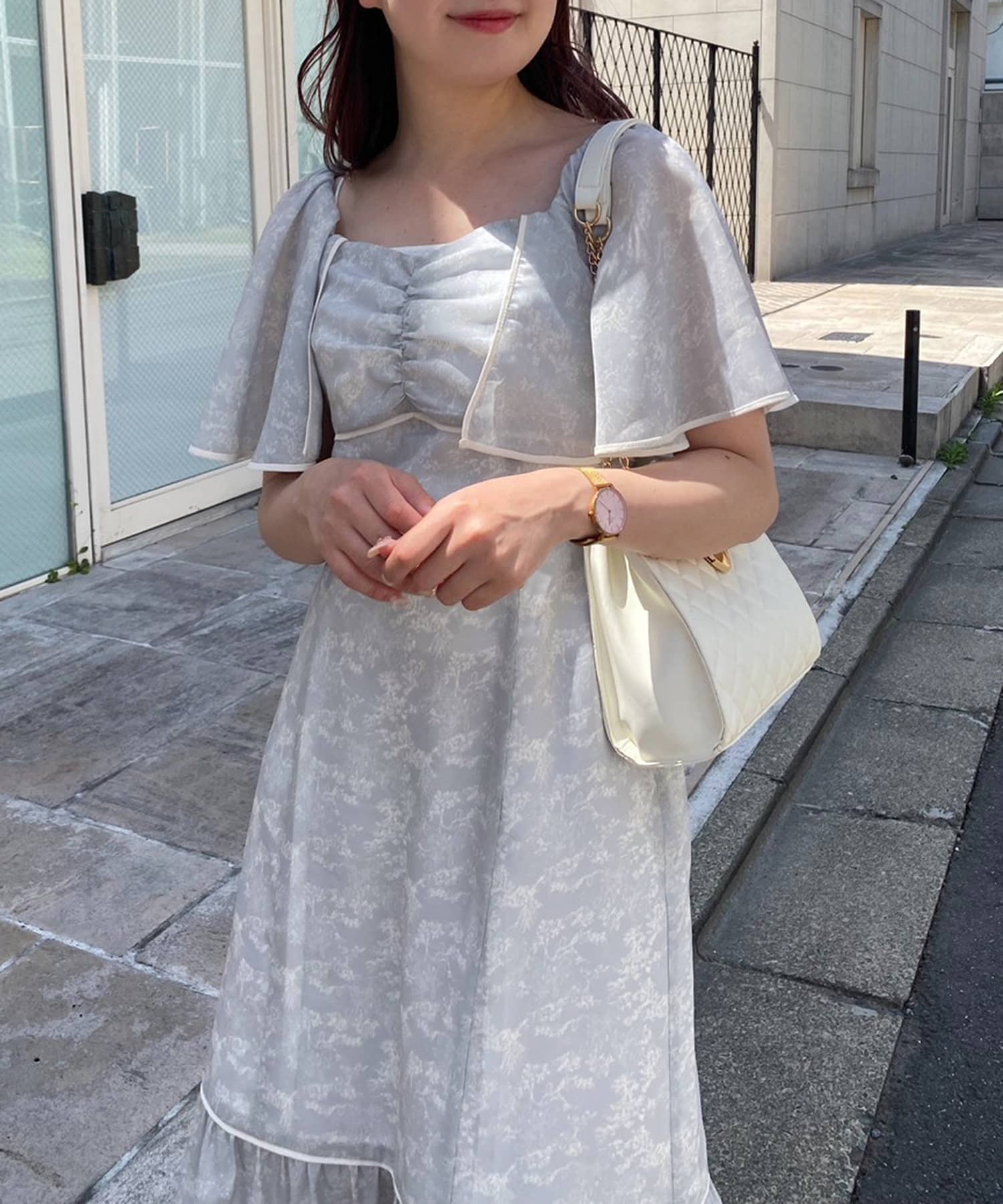 フレアスリーブがポイントのワンピース。