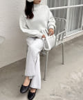 フレアパンツでのシルエットなので、美脚効果、足長効果も期待できます。