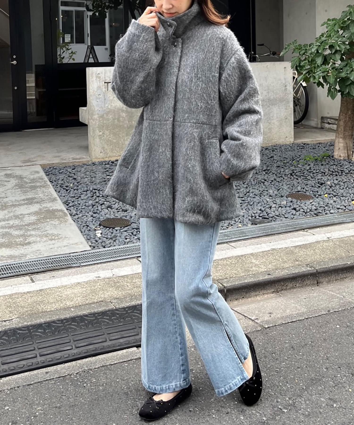 裾にはサイドにスリットを入れ、重くなりがちな足元にも抜け感が加わります。