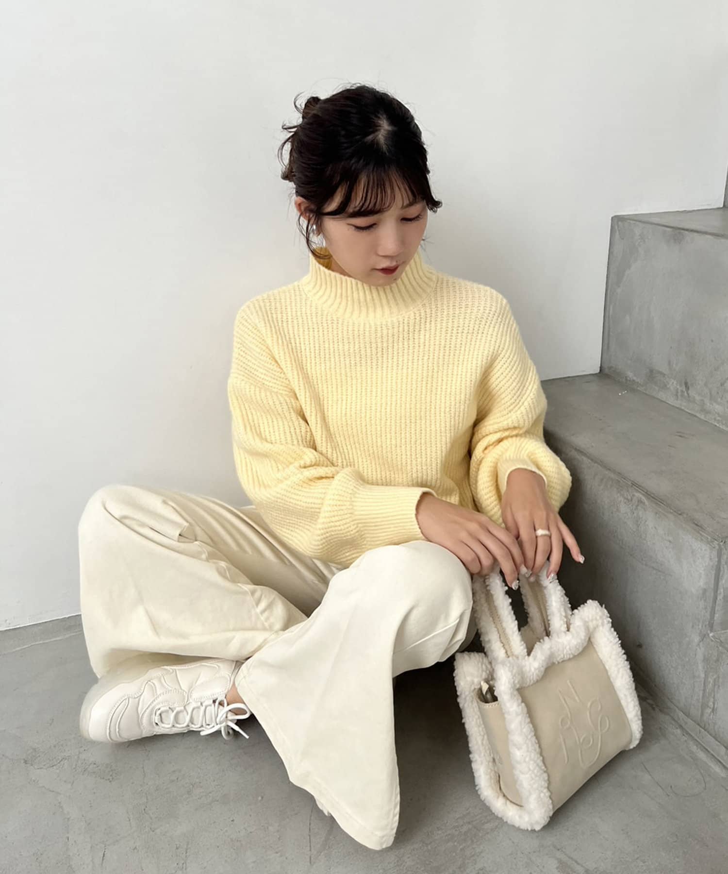 ミルキーで柔らかい色合いが冬のほっこりニットにも相性抜群◎