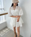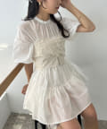 適度な広がり感のあるAラインシルエットとさりげないリボンがフェミニンな印象を際立たせます。