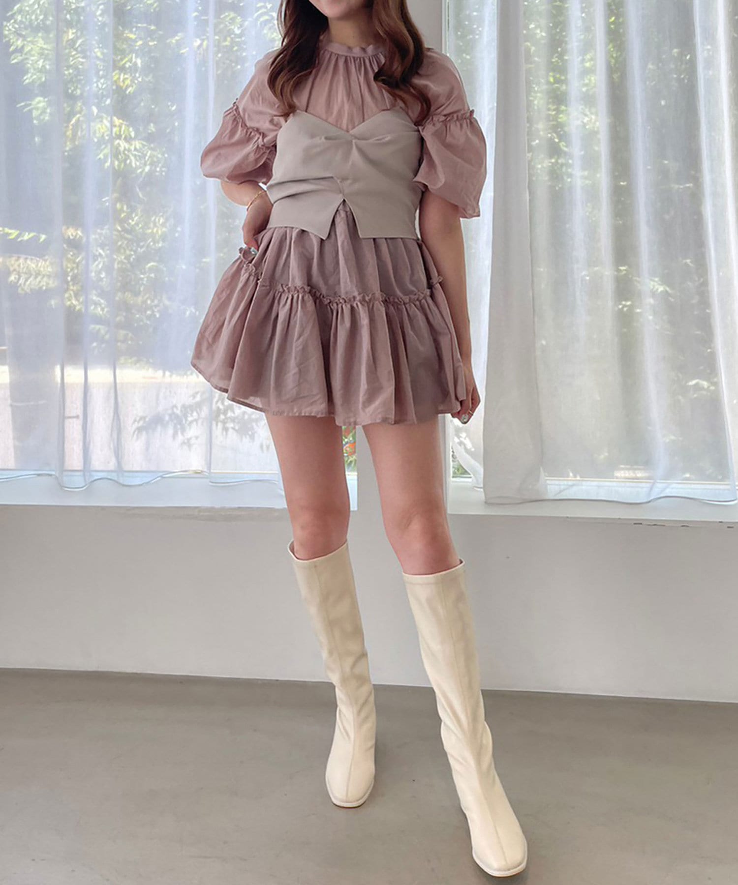 ビスチェやベストなどをレイヤードした着こなしにすると今年らしいコーデになります。