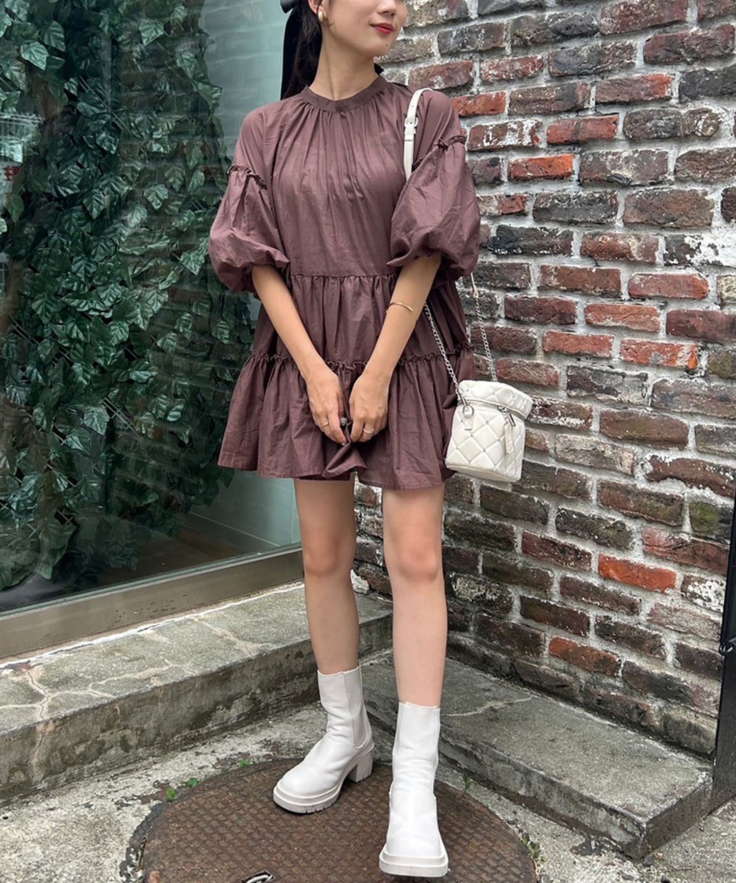 前後着用できるので、前リボンで着るのはもちろん、シンプルなデザインでも着用可能。