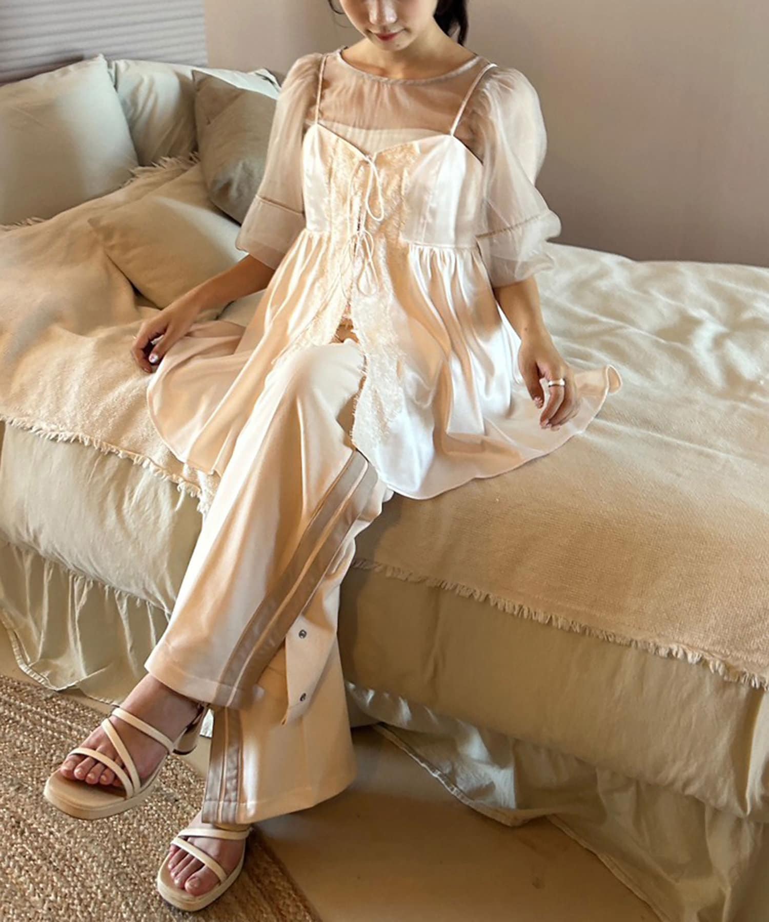 キャミソールに1枚でさらりと着るのはもちろん、