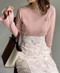 ボートネックで首周りがスッキリしてるデザインのニット。