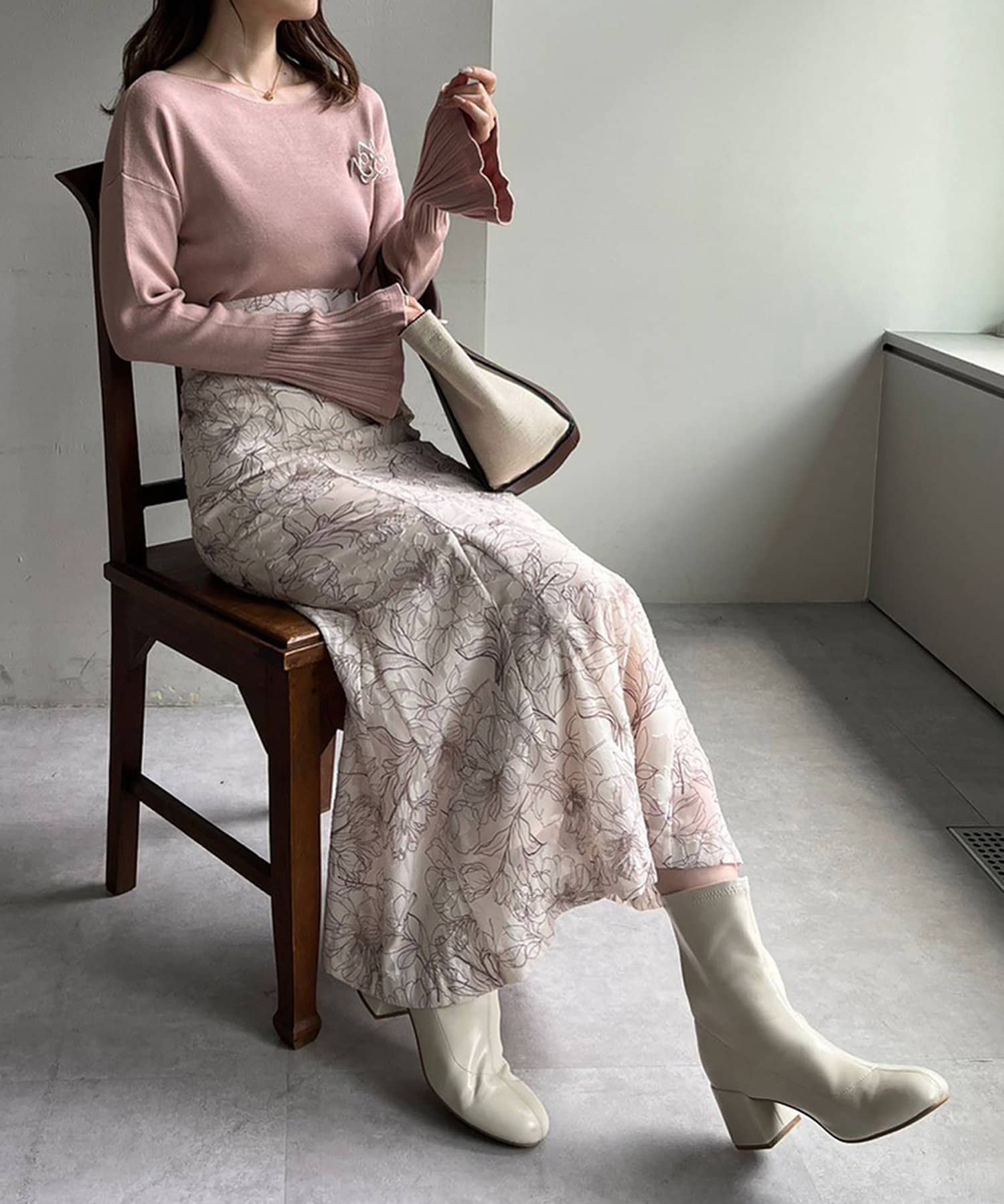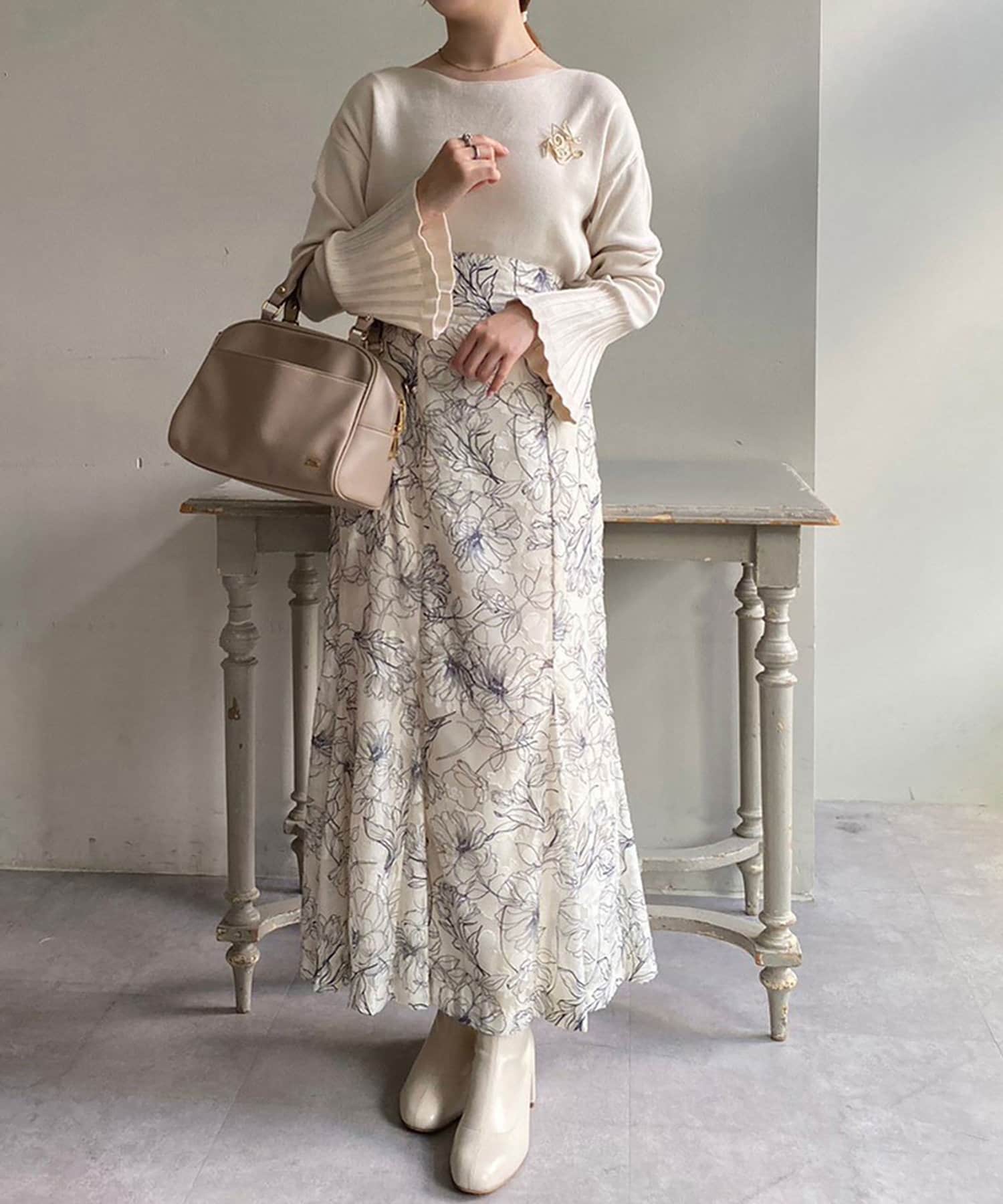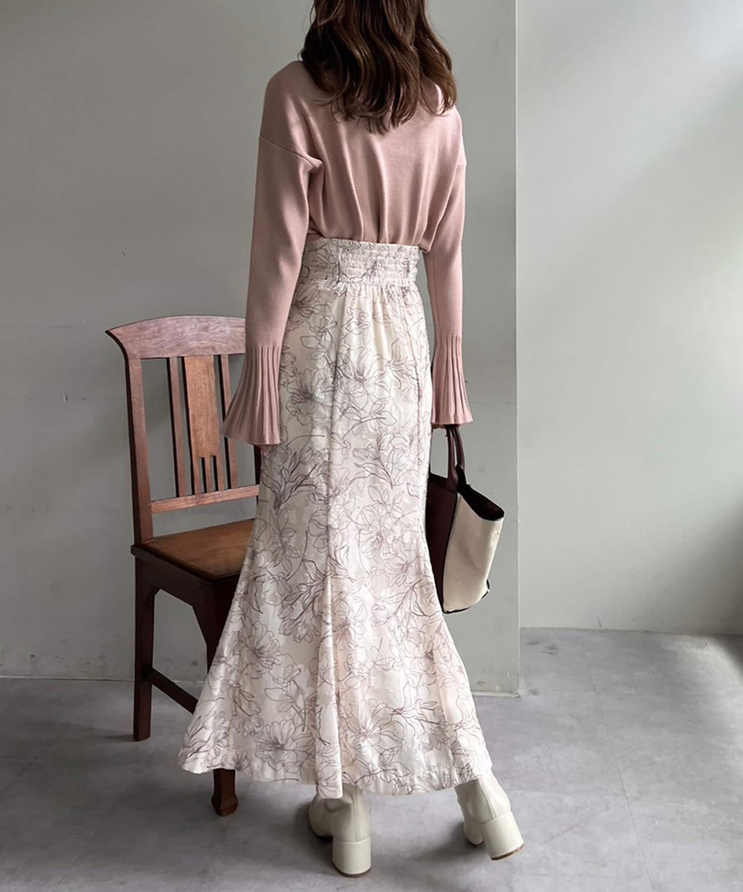 大人っぽく上品に見せたいならマーメイドスカートとの合わせがオススメ。