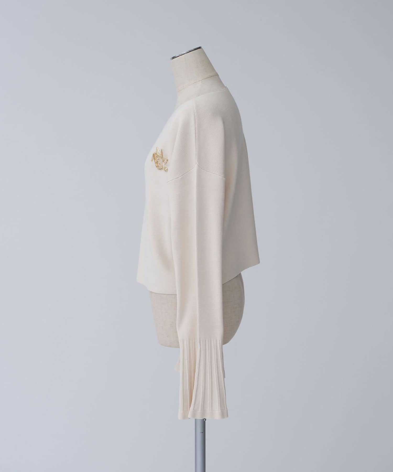ポイントでもある袖のベルスリーブは手首を細く見せる効果があり、