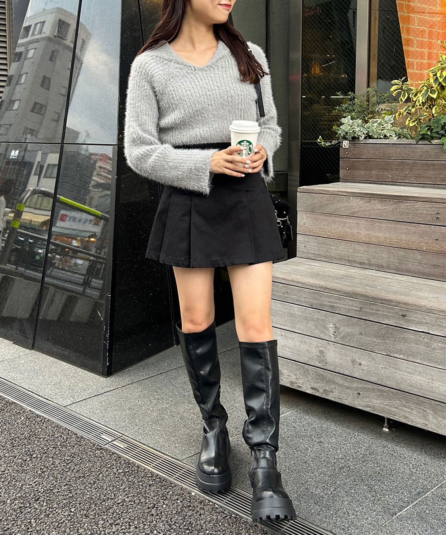 今年ならミニボトムスと合わせるとトレンド感ある着こなしに。