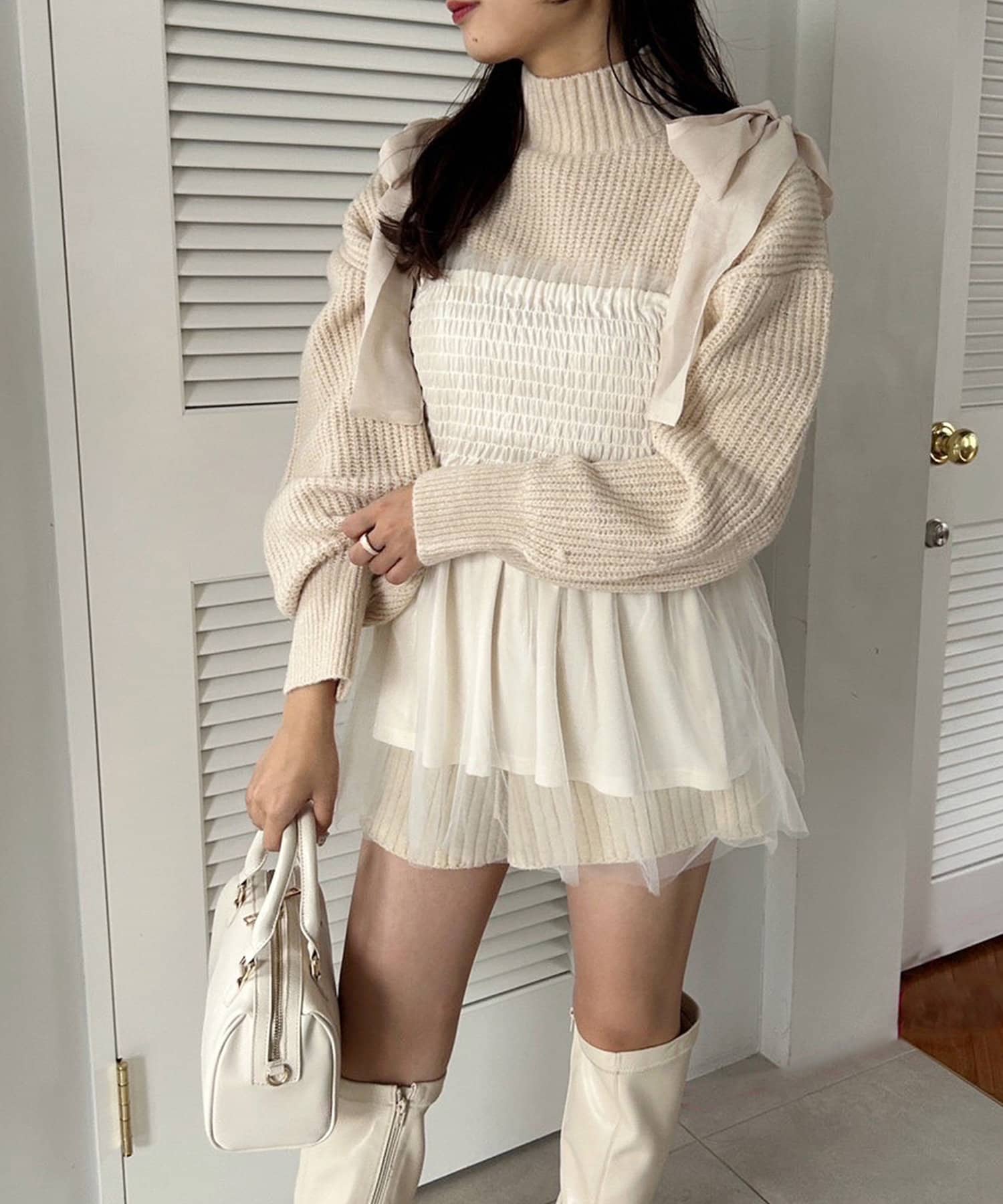 ボリューム袖が手元まで可愛く、女性らしさを際立たせてくれるこだわりのニット