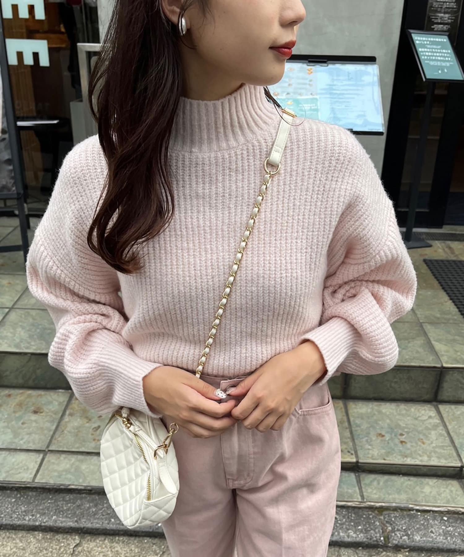 ピンク色がきれいで、セーターは着心地がよく、ハイウエストのスカートとよく合います。