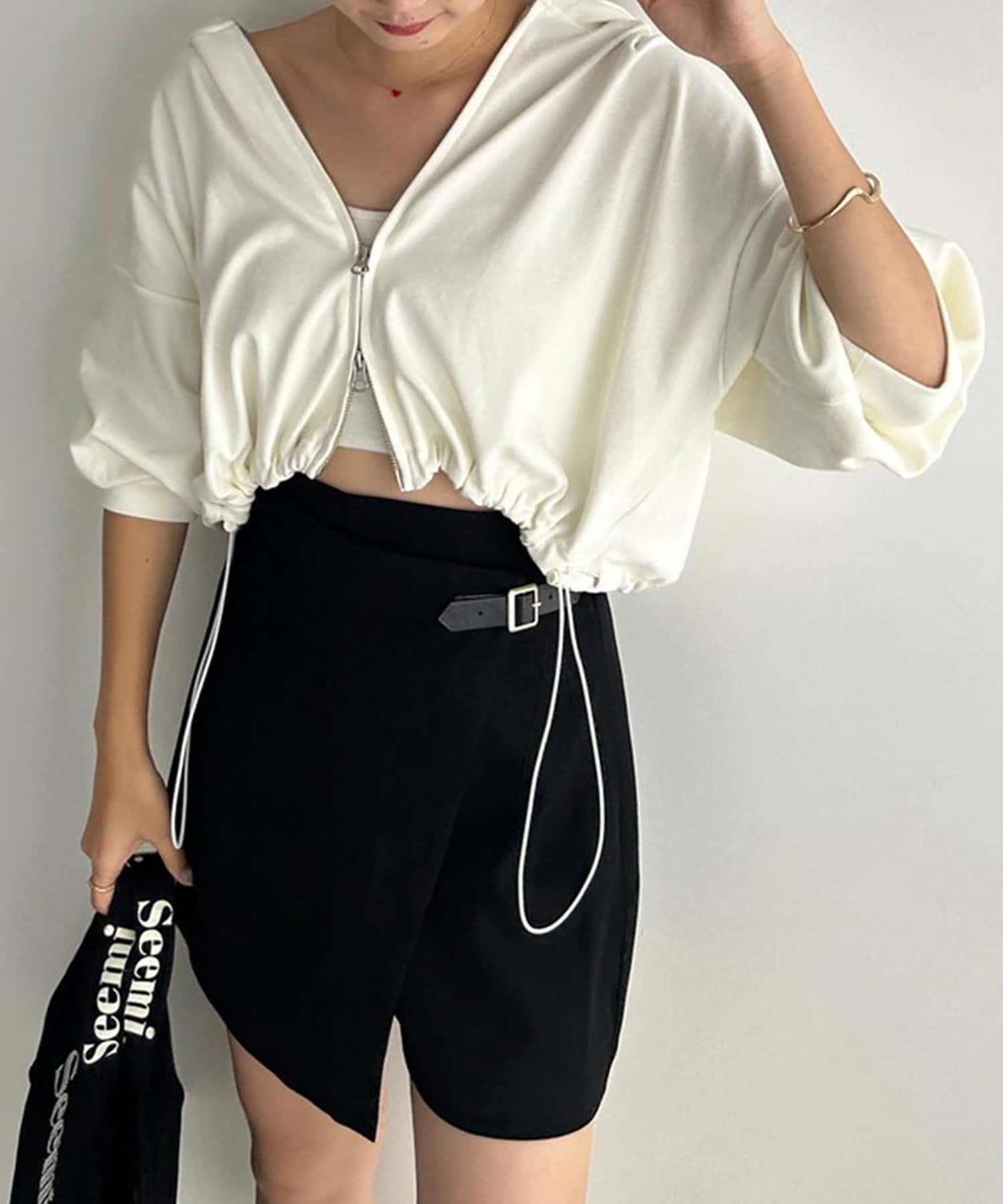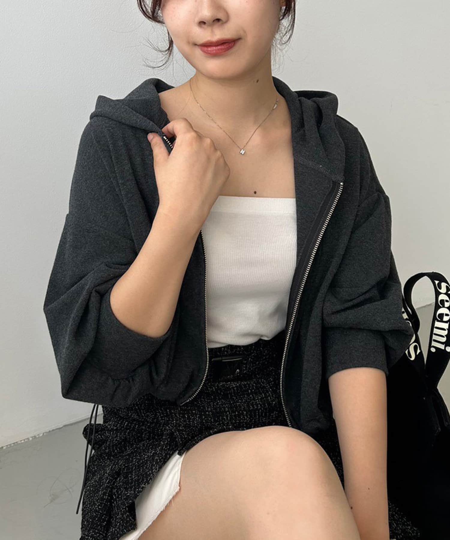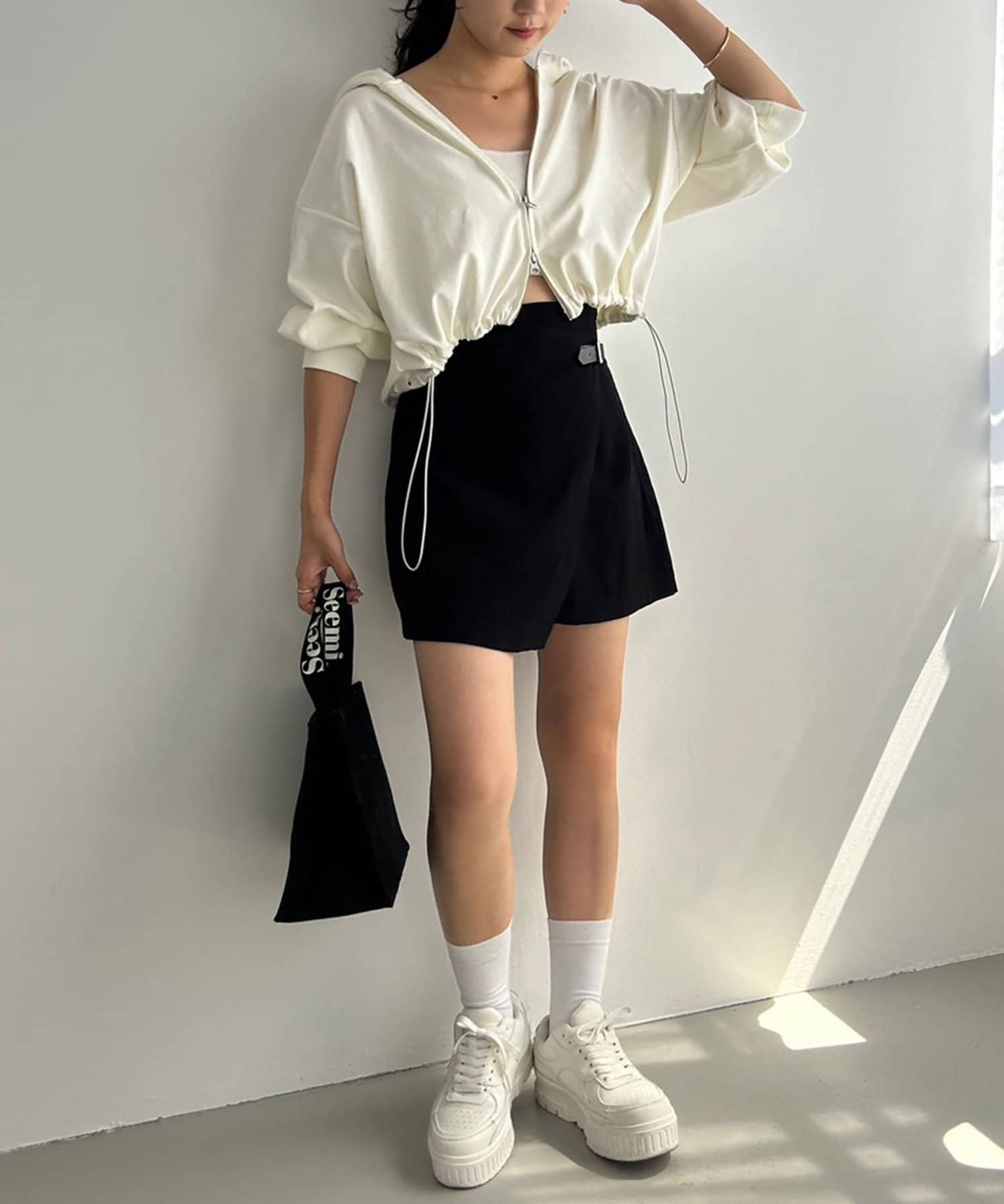 裾は、今期トレンドのクロップド丈でスタイルアップ効果が期待できます。