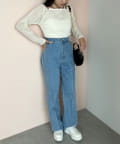 コンパクトな丈感なので、ボリューム感あるボトムをタックインして