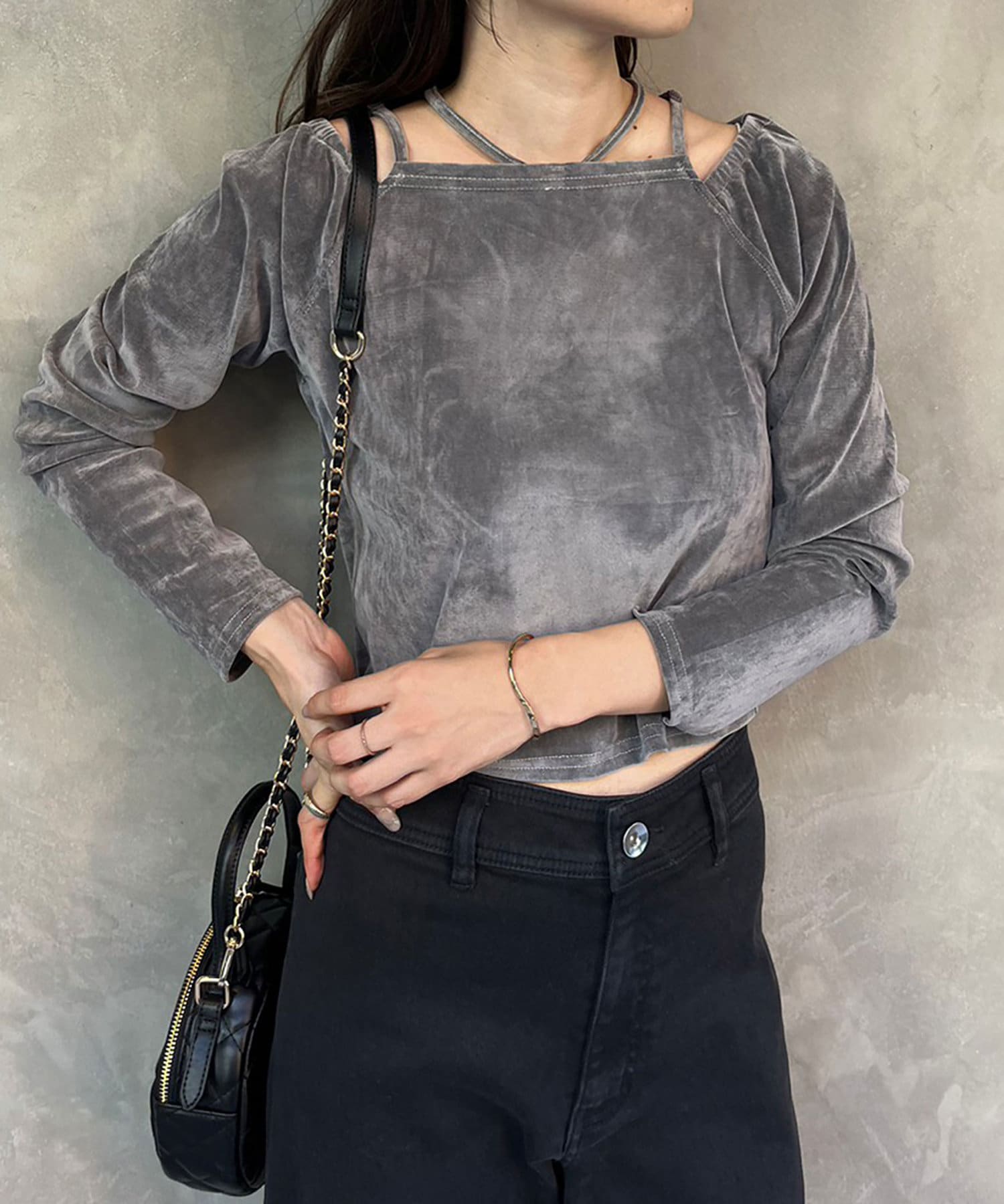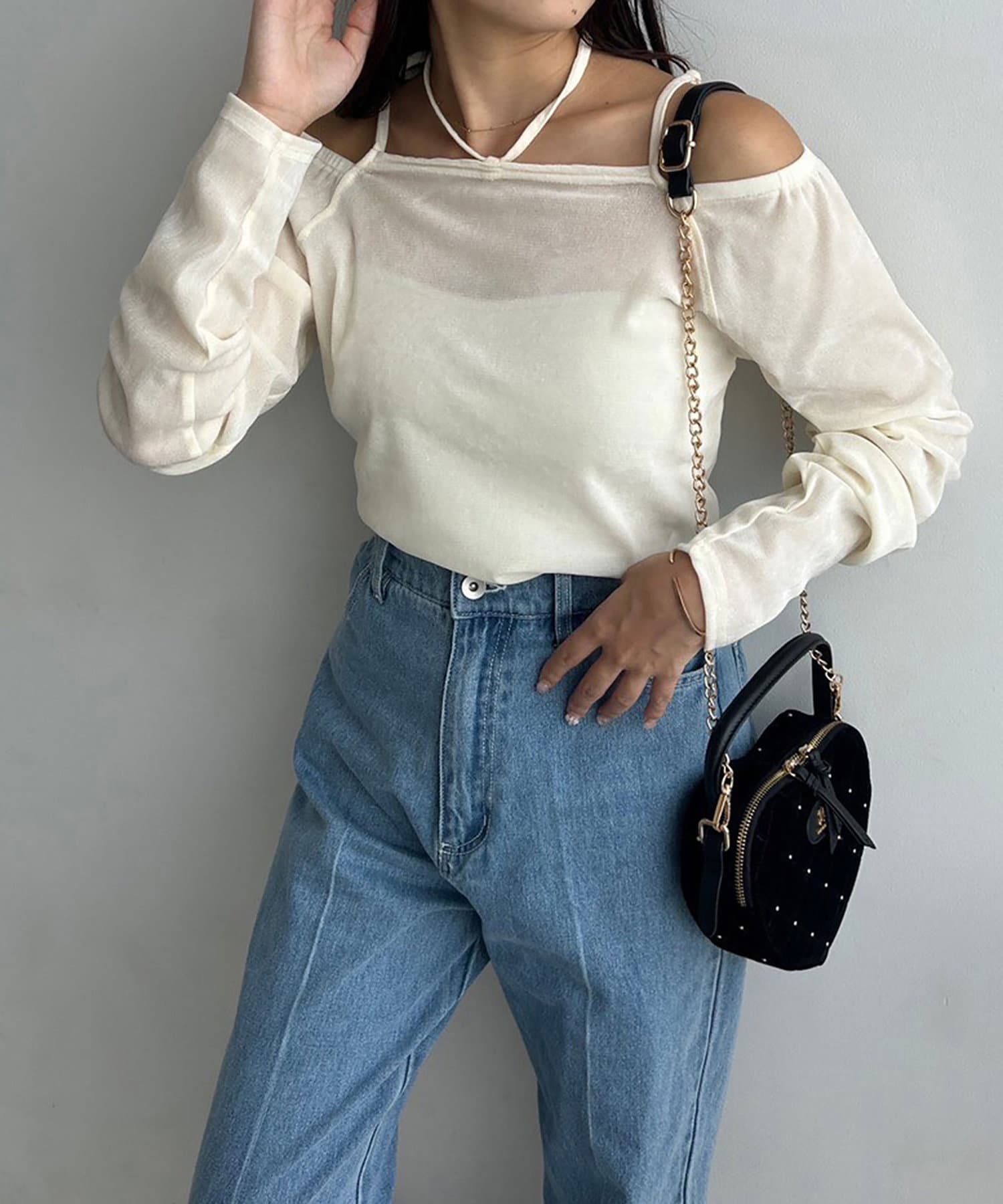 肩の部分にはゴムが入っているのでオフショルとして着こなす事も可能