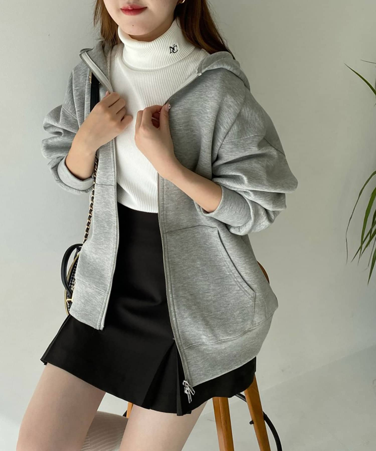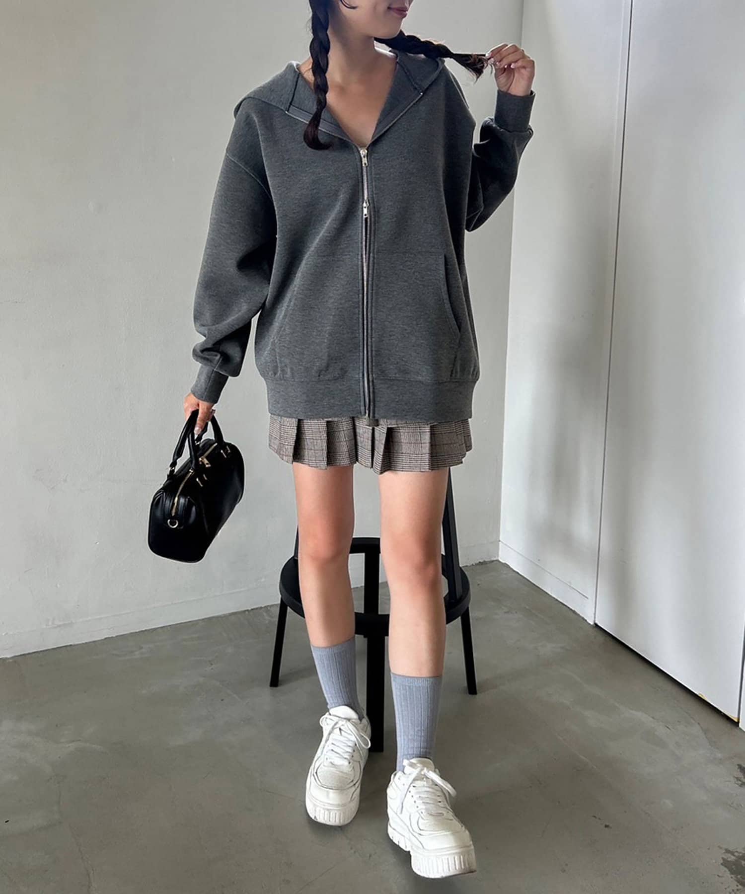 カジュアルなパーカーアイテムは女性らしいアイテムと合わせてこなれ感を出した着こなしがオススメ!