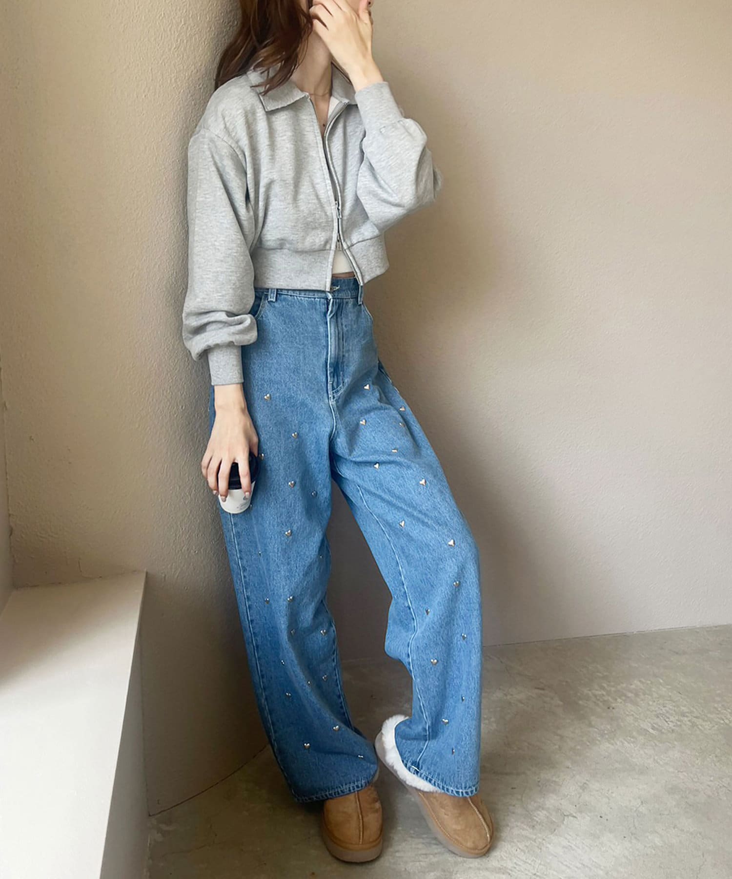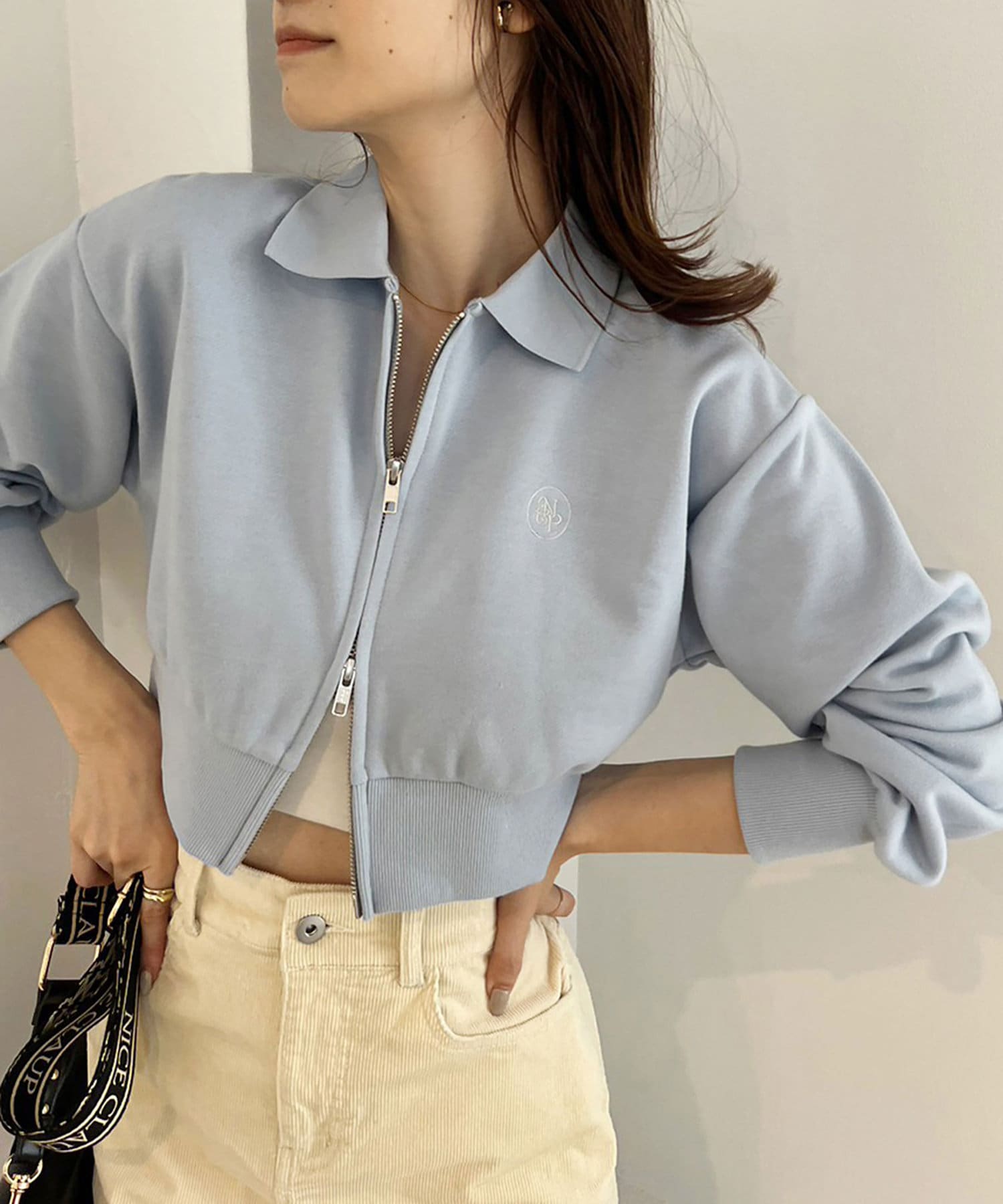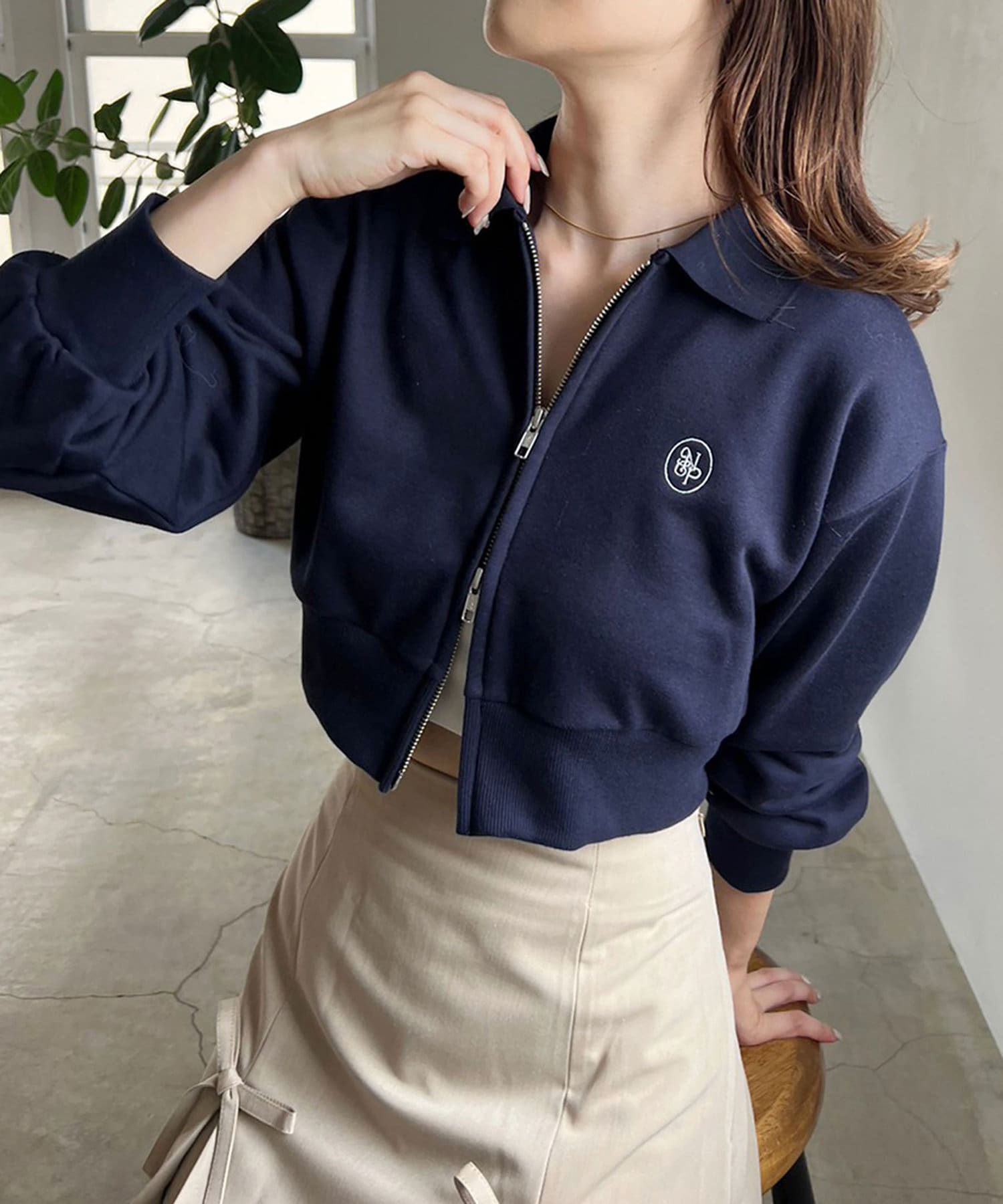 【one after another】ジップアップ刺繍トップス