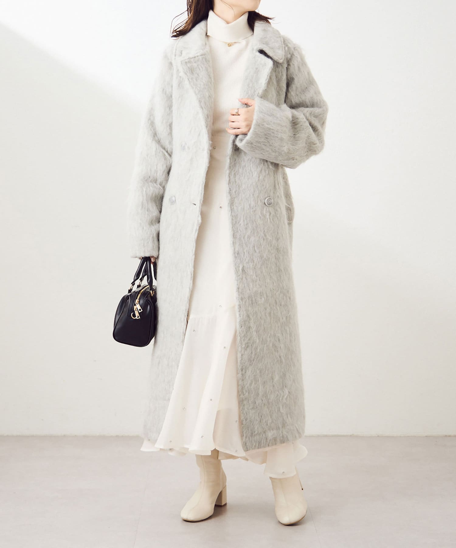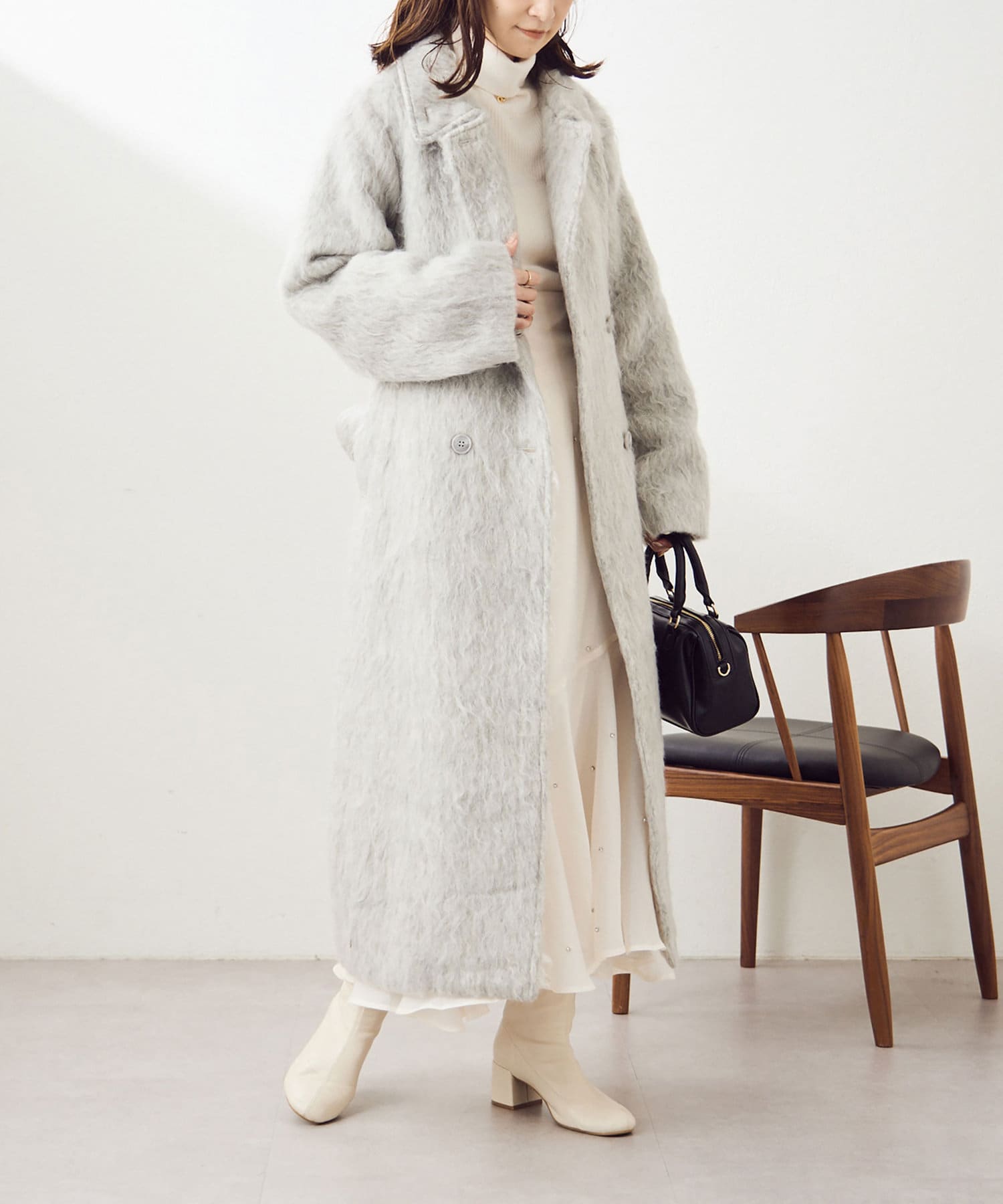今年のトレンドでもあるシャギー素材は繊細な毛流れで高見え、着映え効果も◎