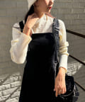 秋冬は、ハイネックインナーや、薄手のトップスを合わせたレイヤードコーデがオススメ。