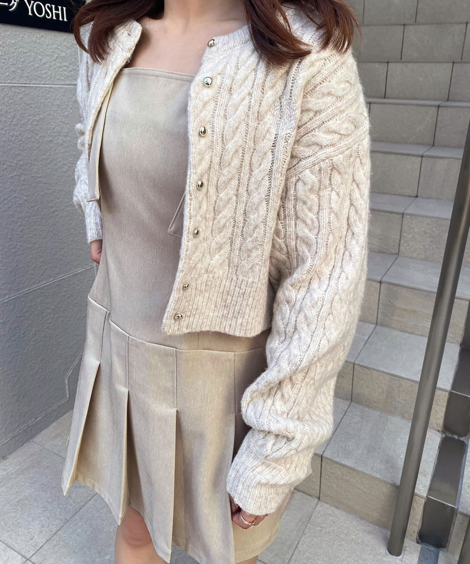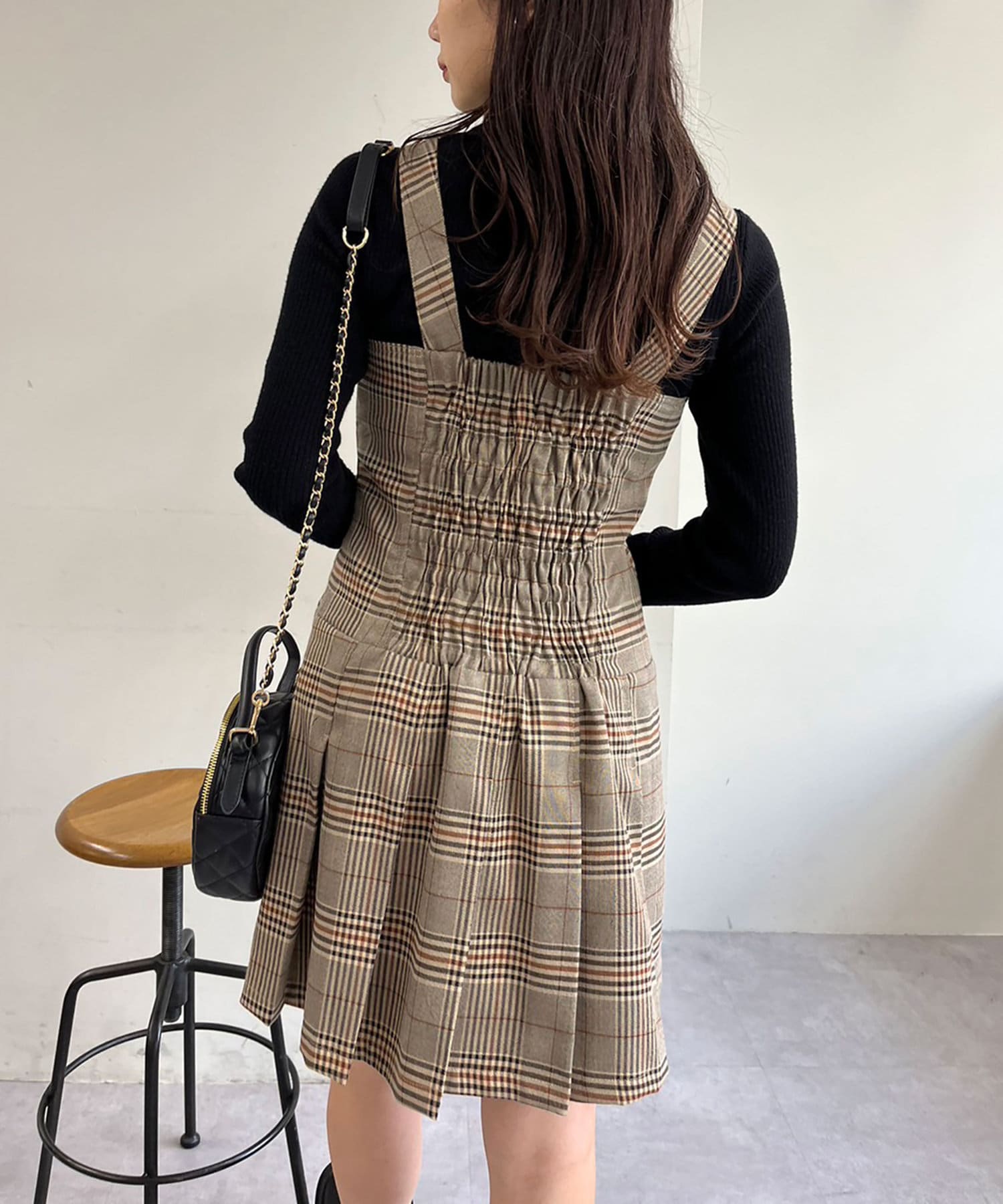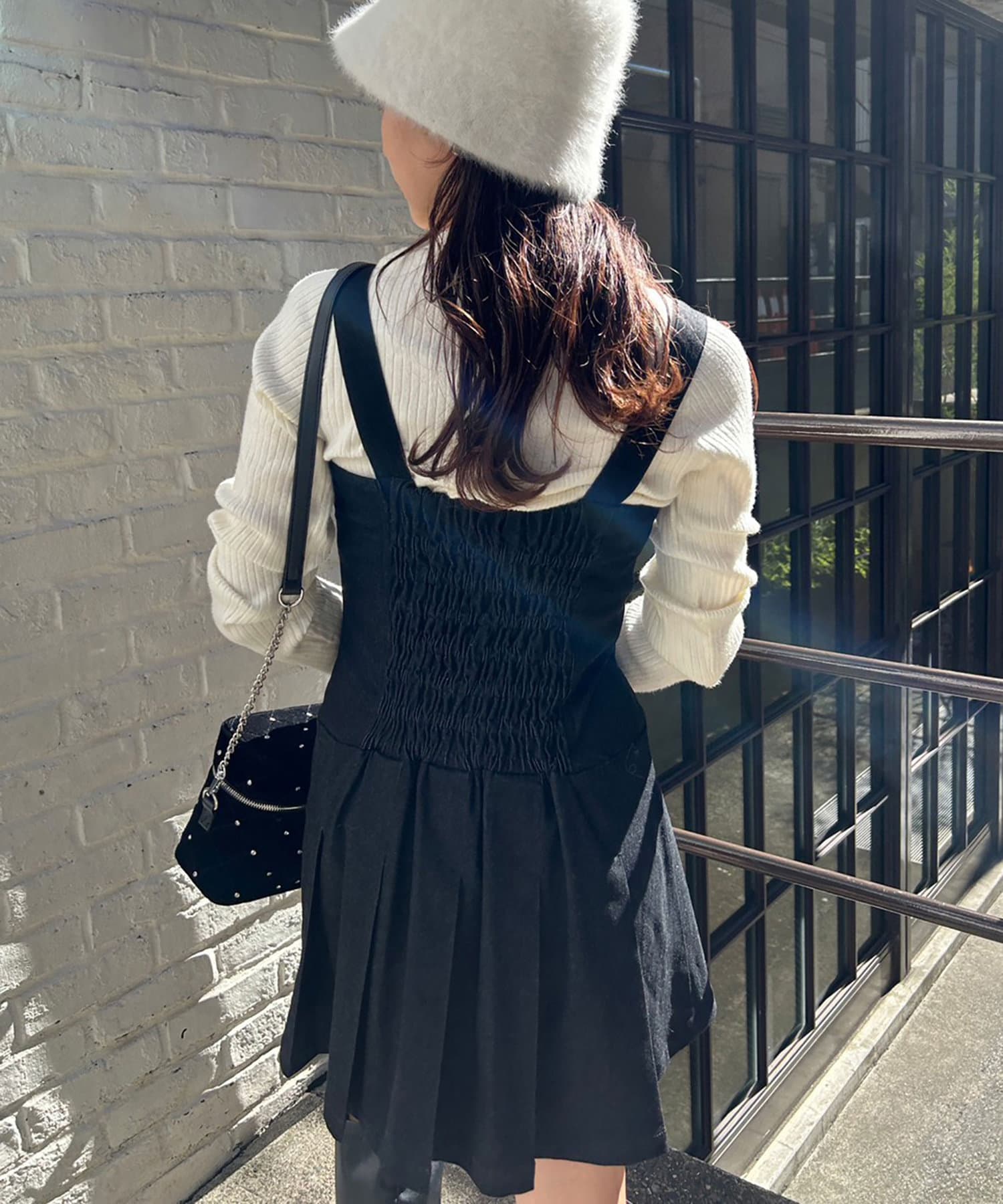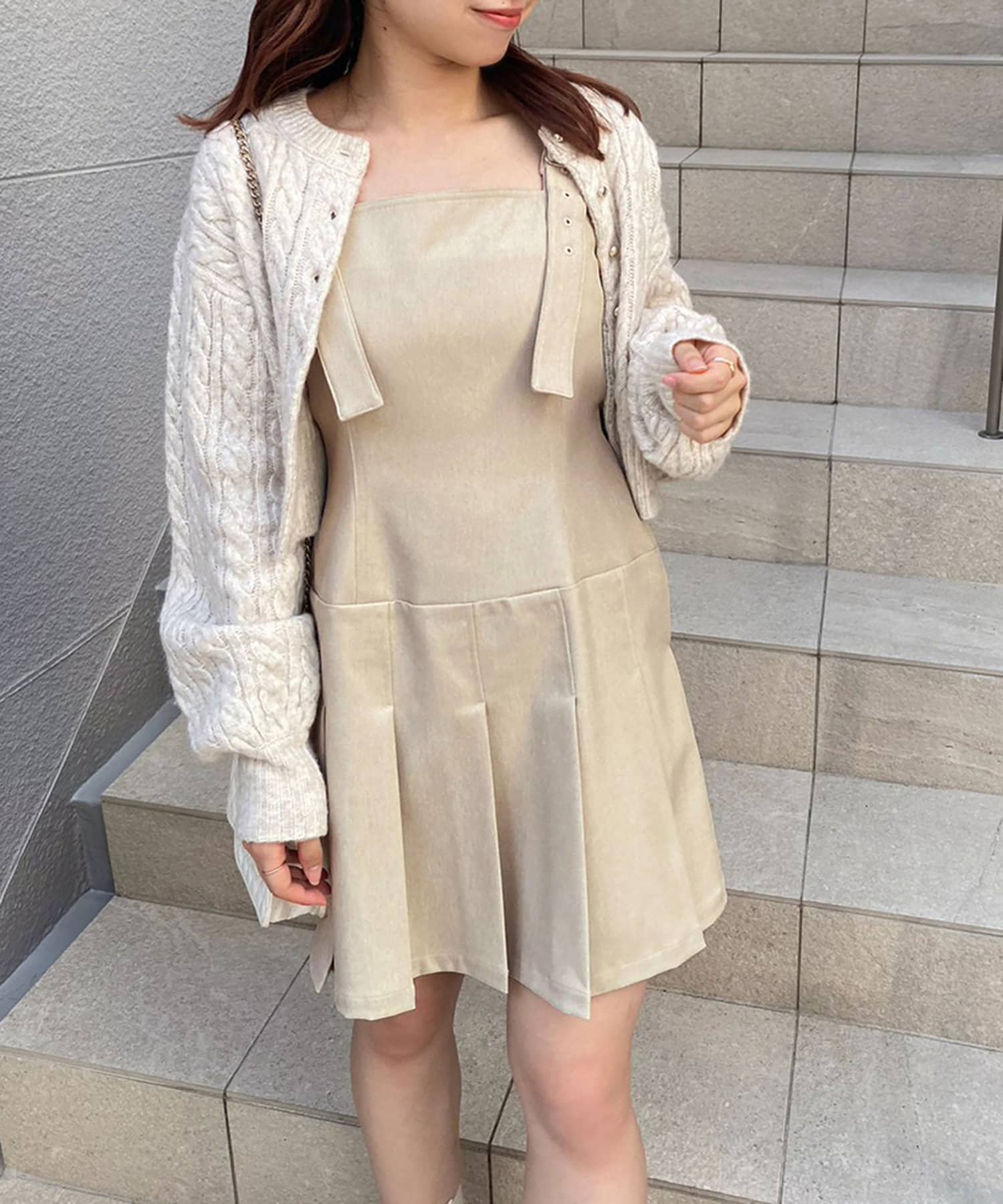 今シーズン注目のプリーツデザインのミニ丈ジャンスカ。