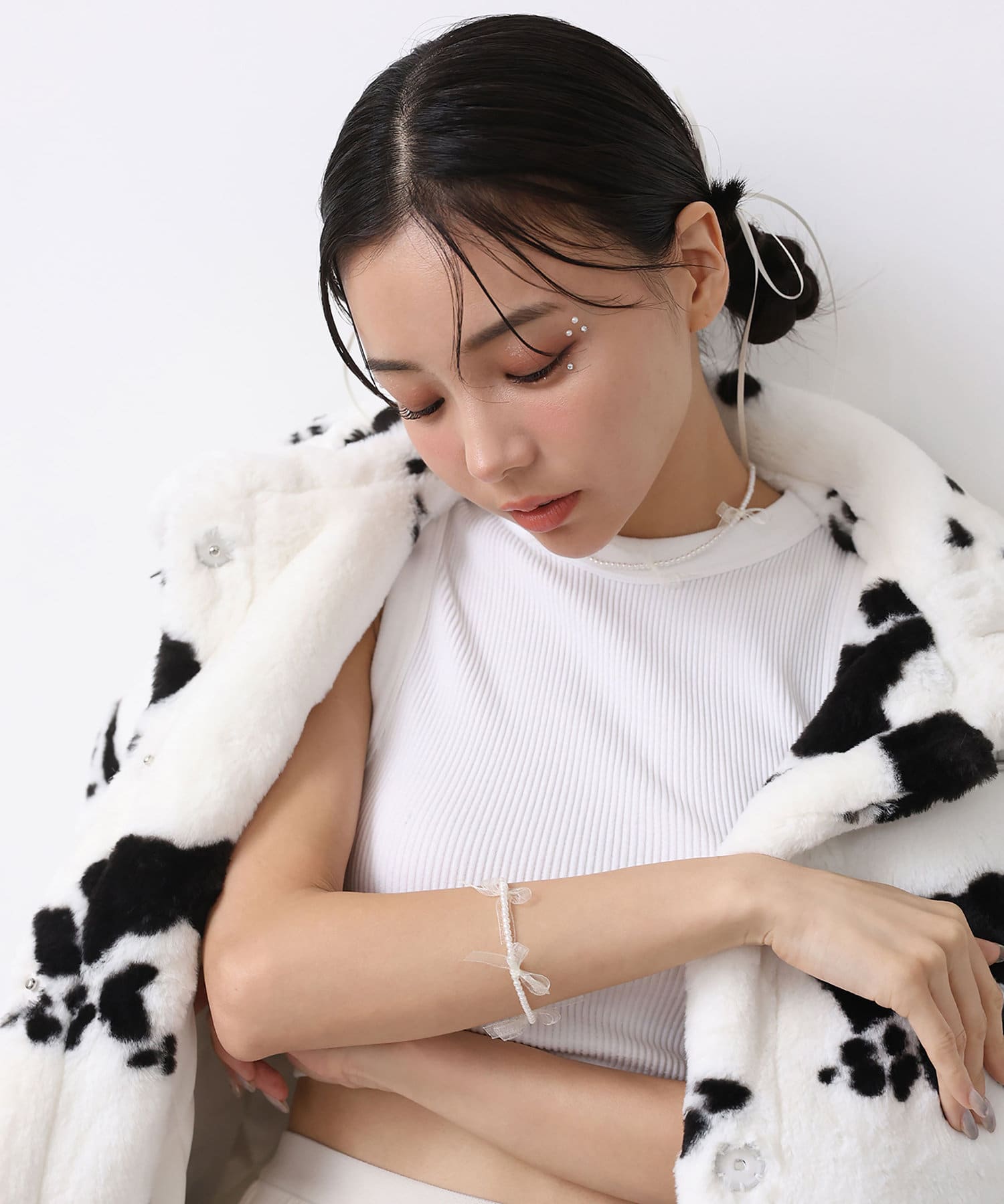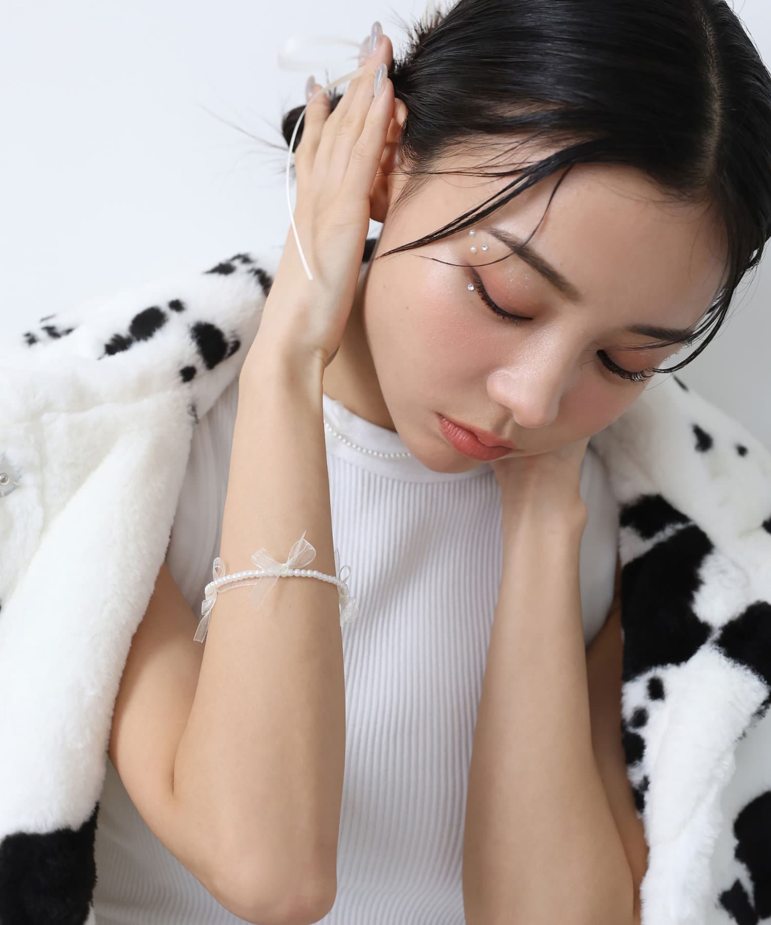 オーガンジートパールの組み合わせがフェミニンでガーリーな印に。
