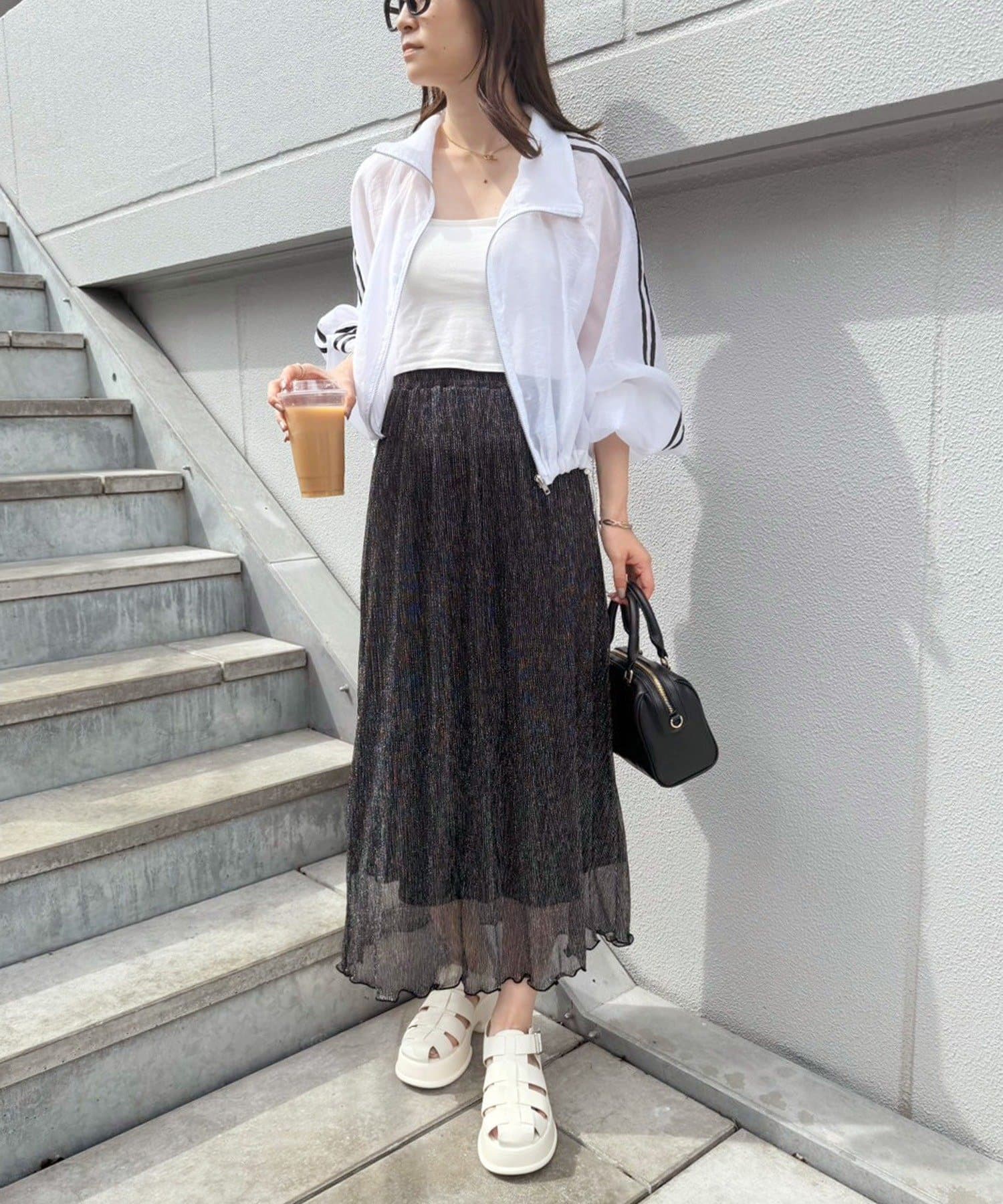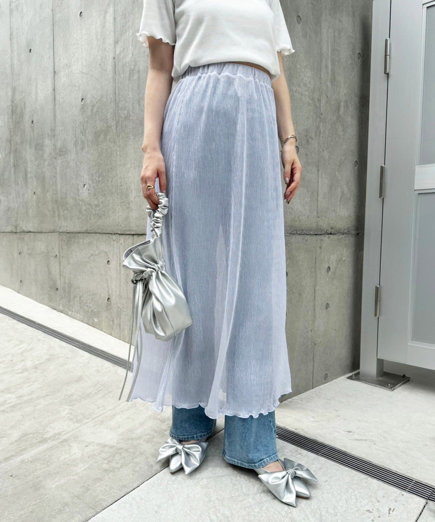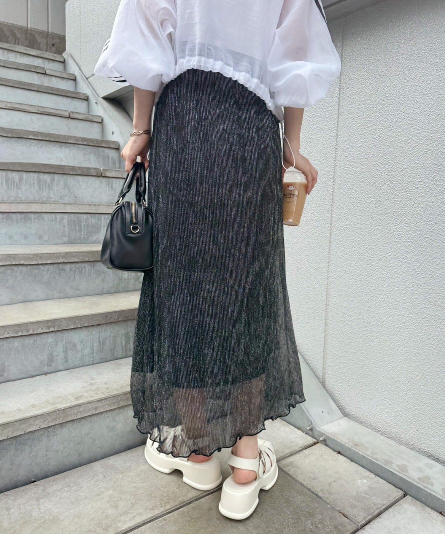 ラメプリーツスカートだけの着用も可能。