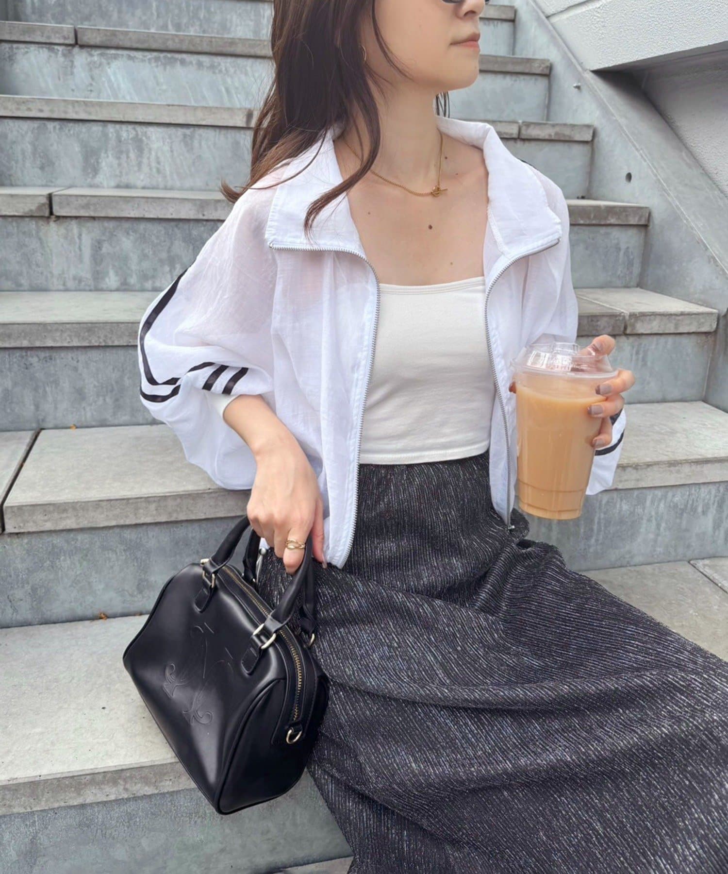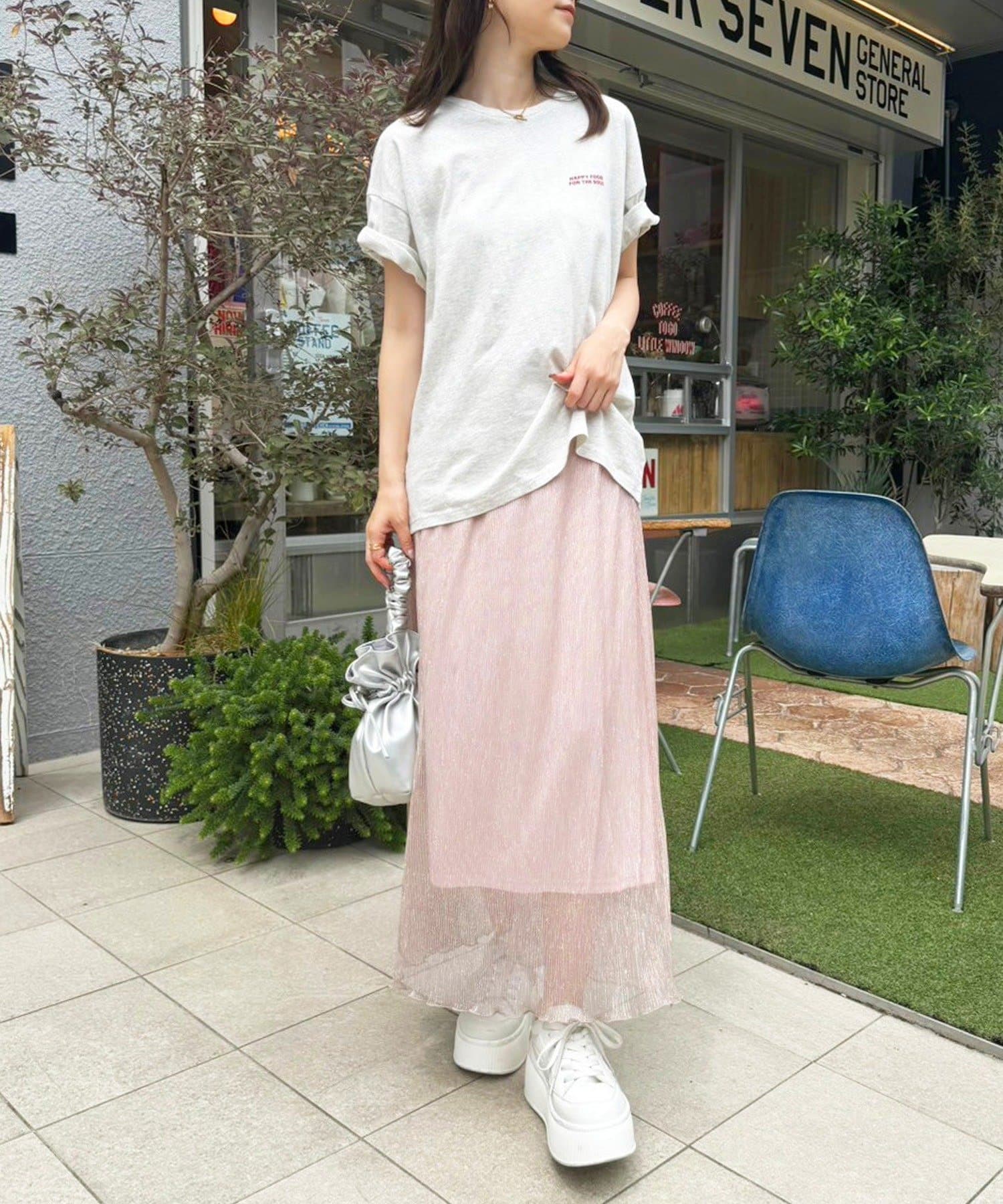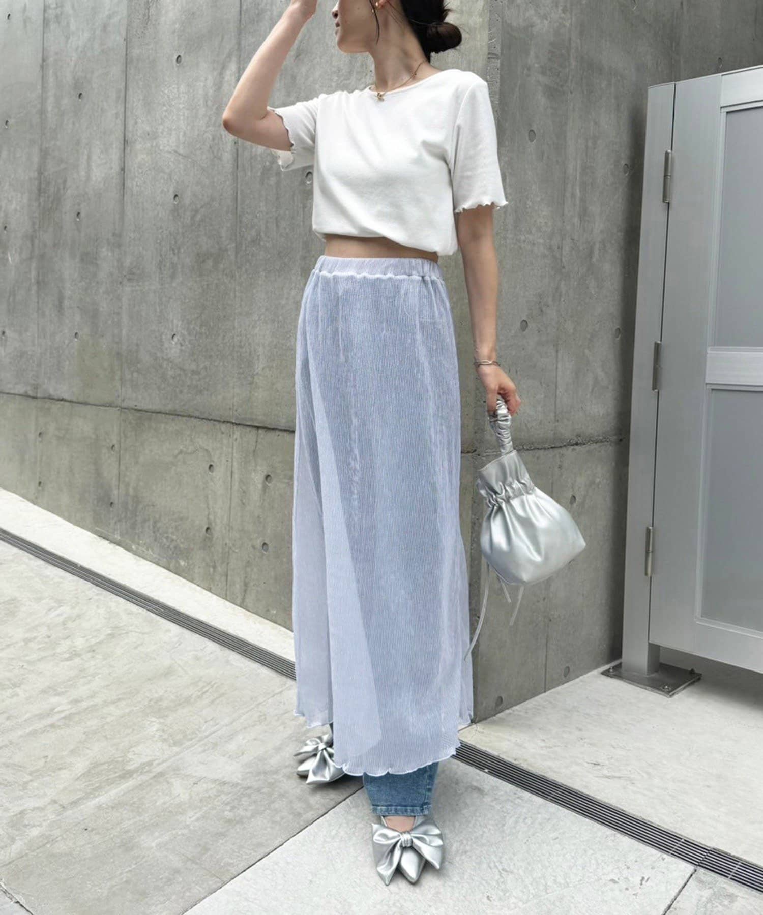 ラメプリーツスカートだけの着用も可能。