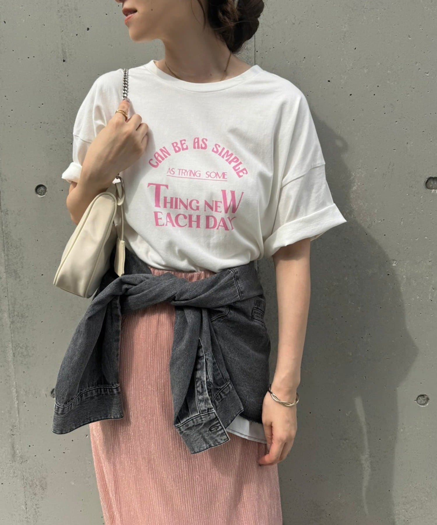 シンプルなTシャツスタイルやワントーンコーデに取り入れやすく、