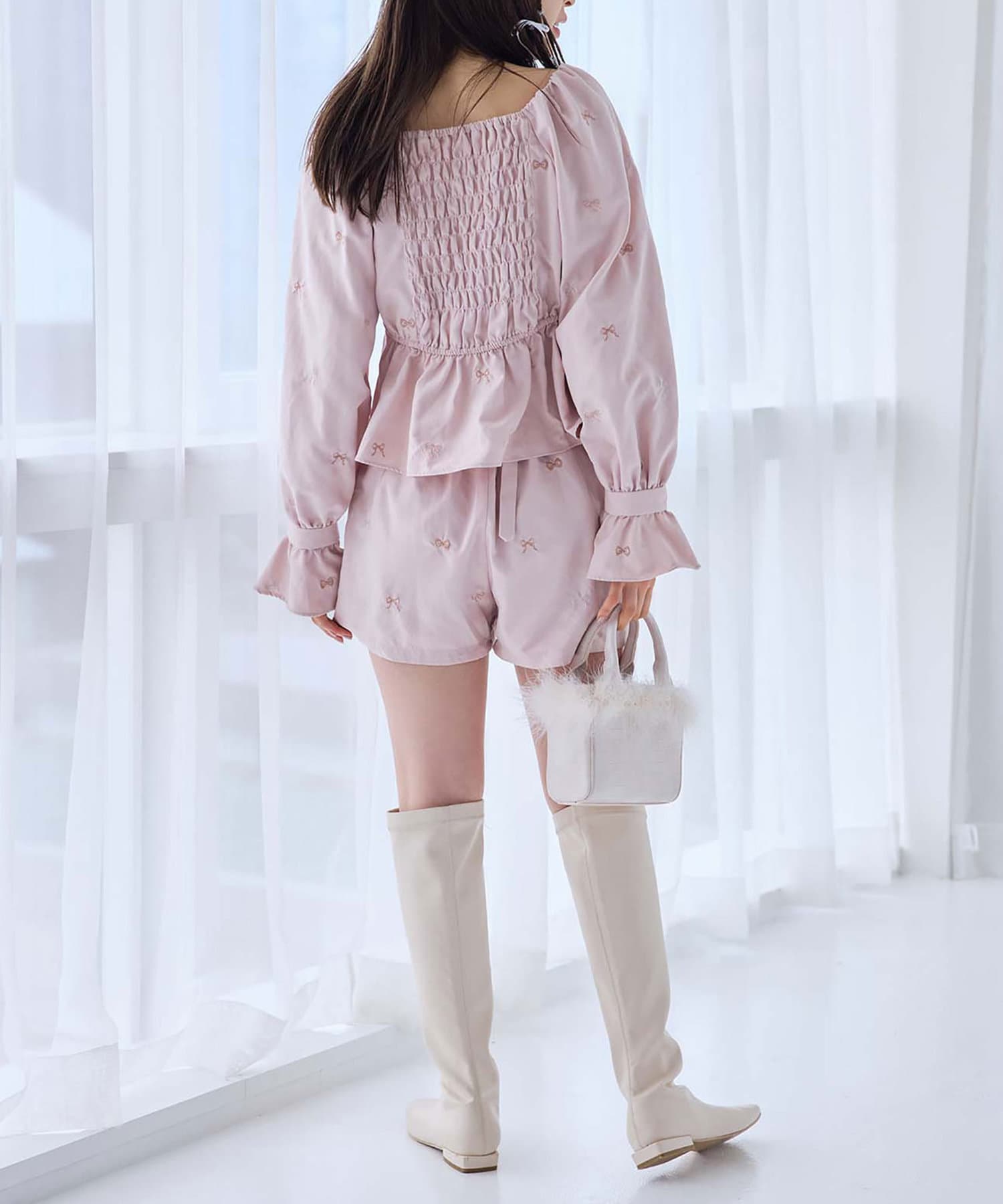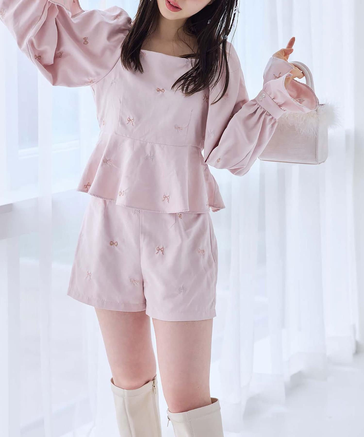 刺しゅうは様々なリボンの形を使ったこだわりたっぷりなデザイン!