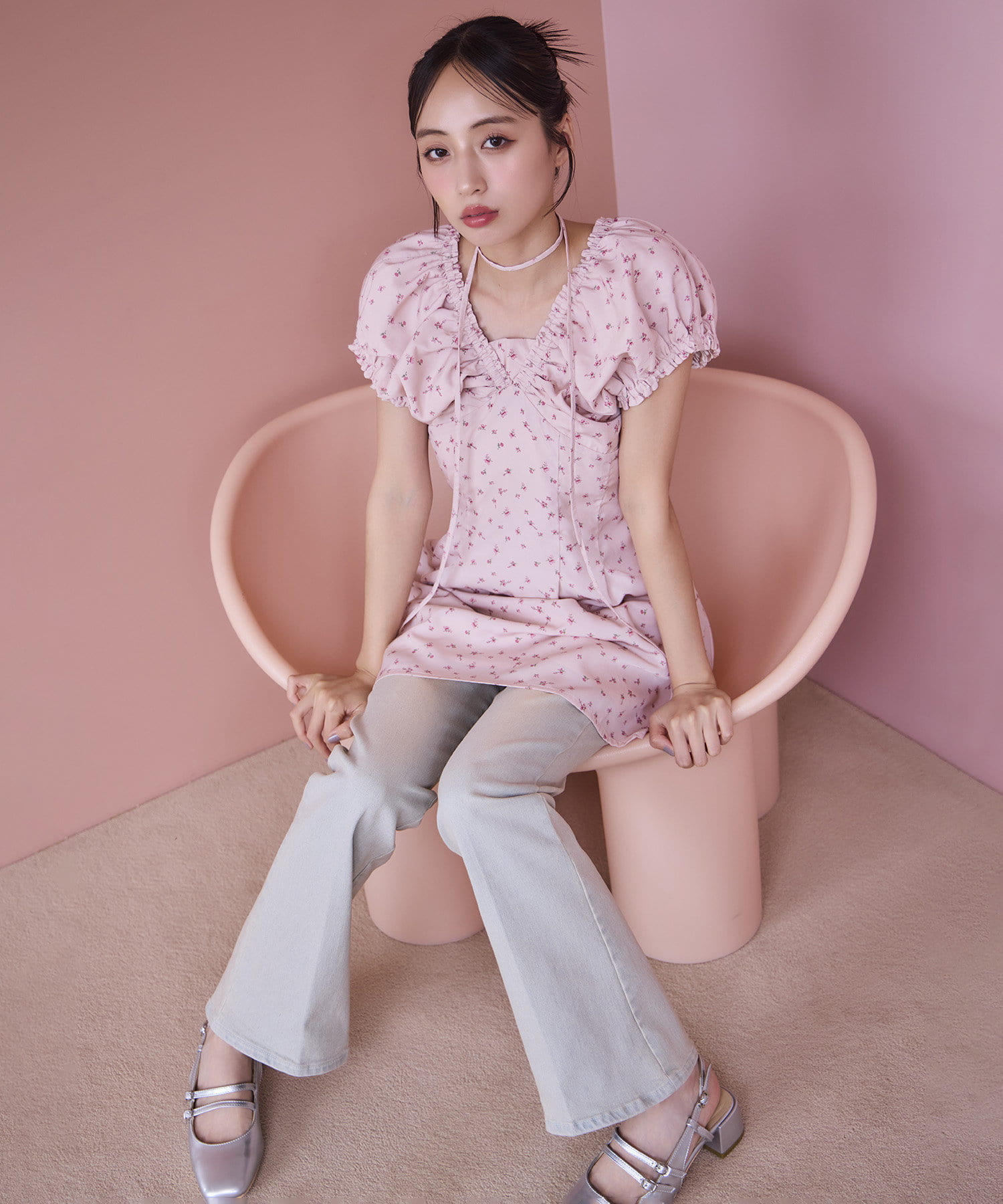 ハイウエスト×フレアシルエットで脚長な美スタイルへと導きます。