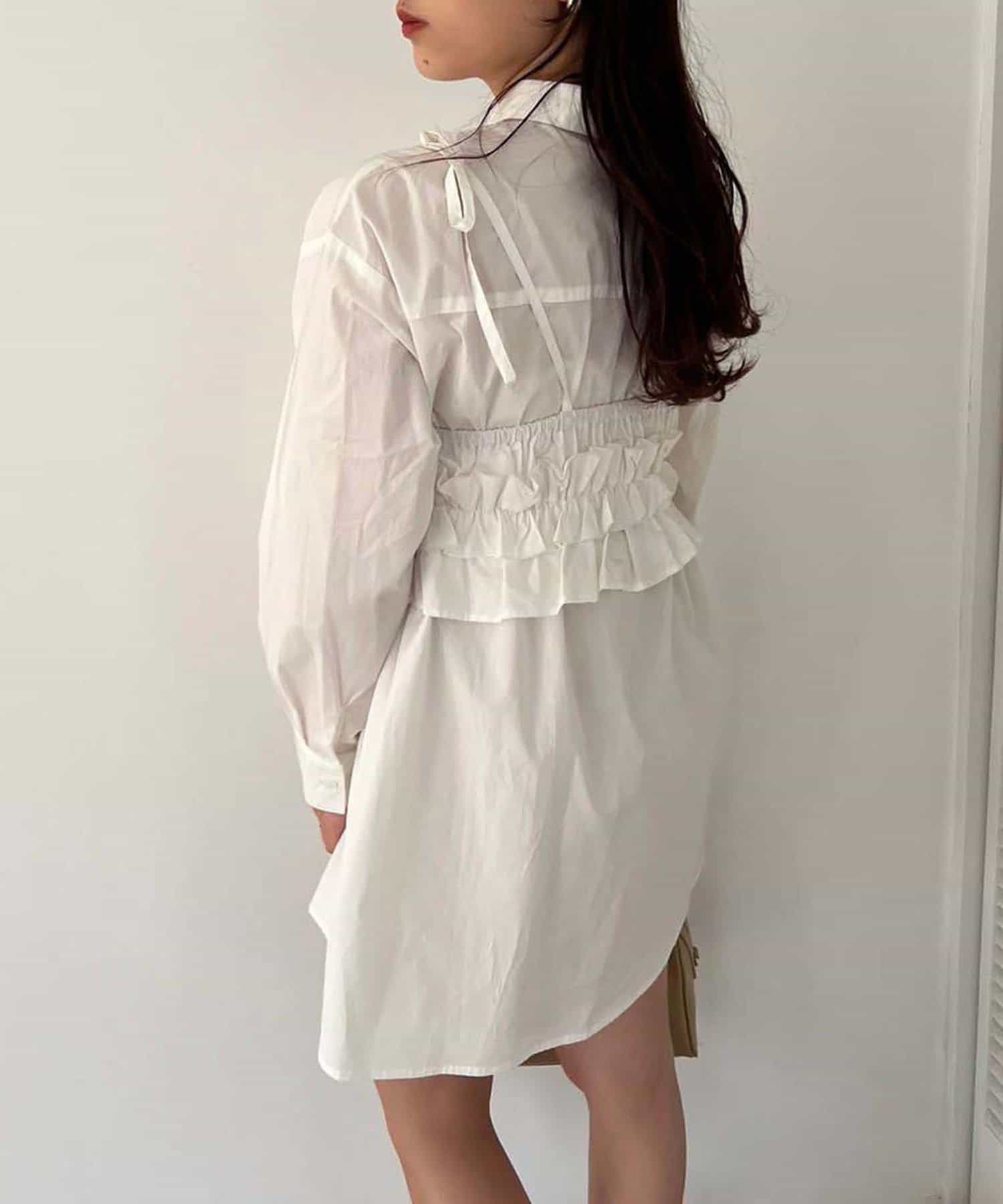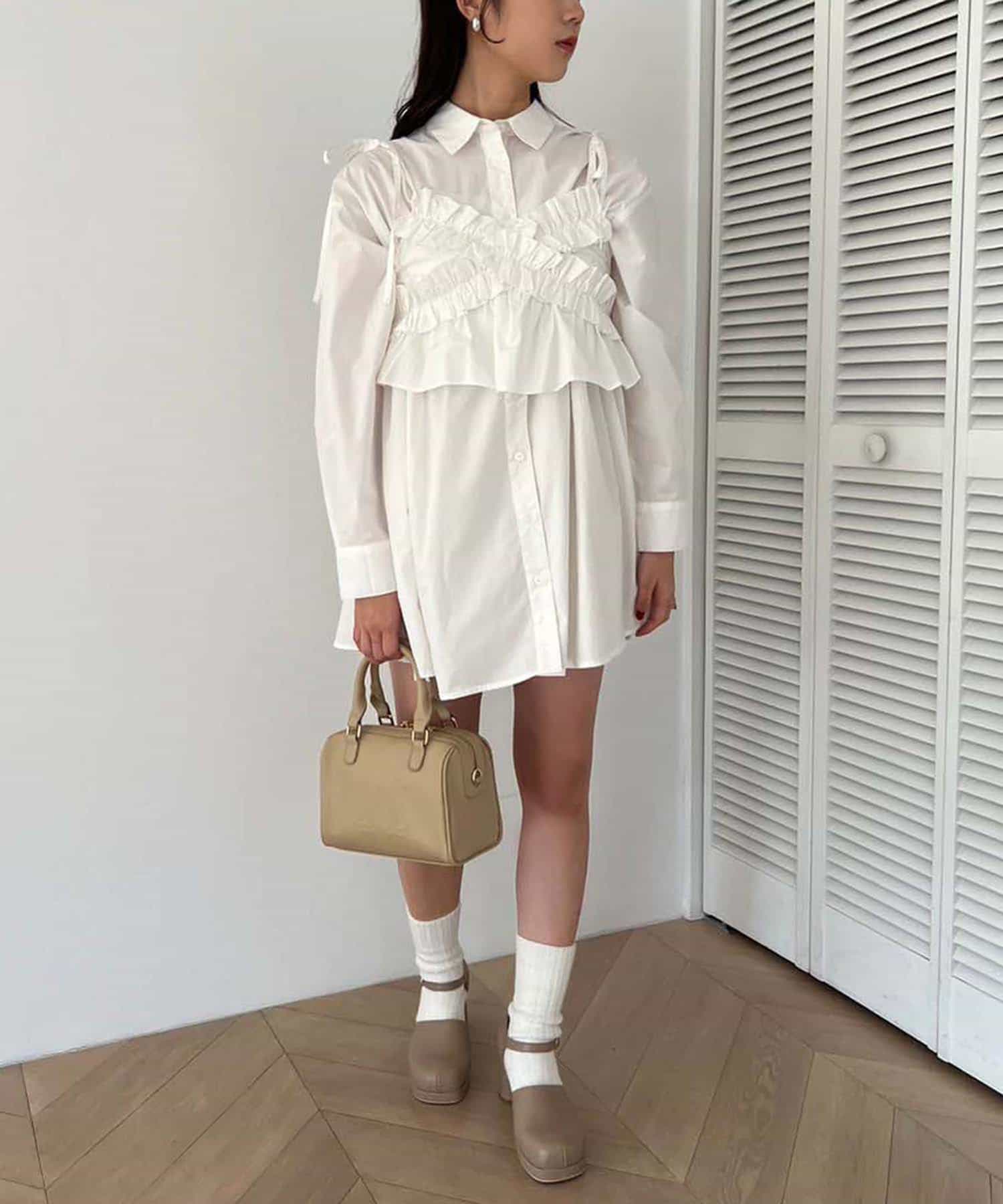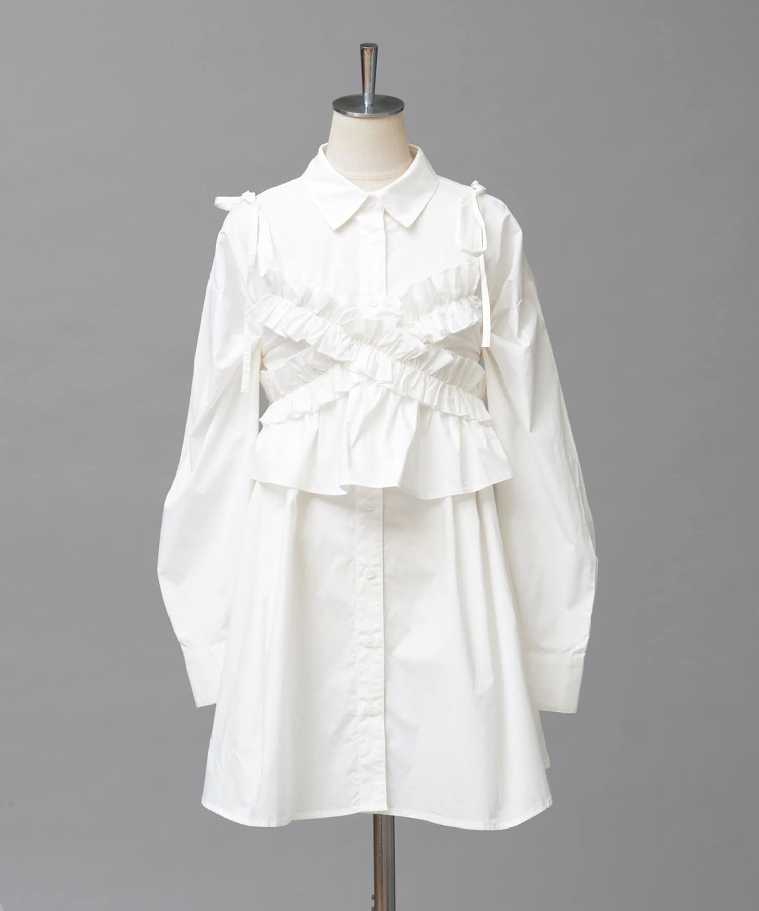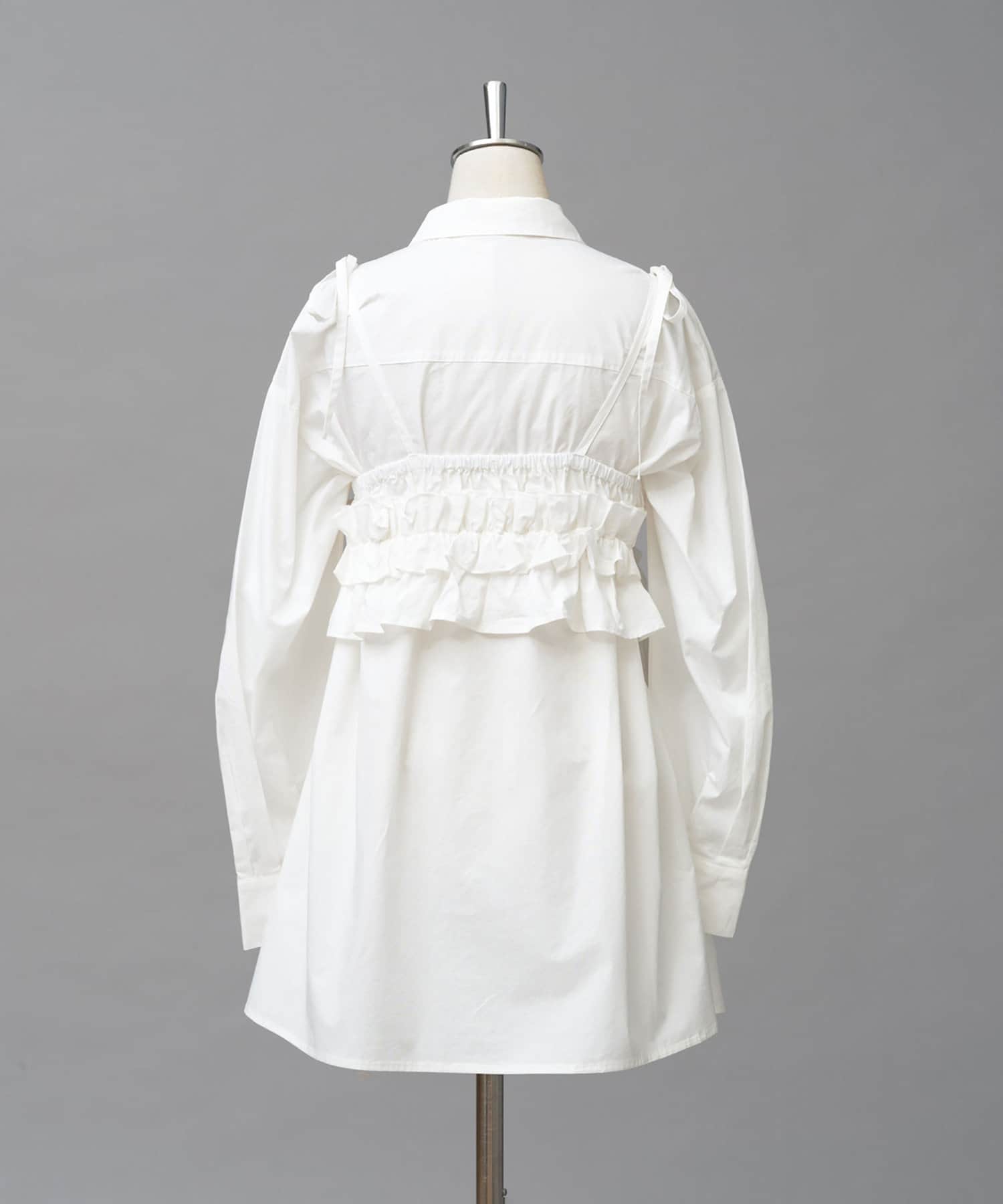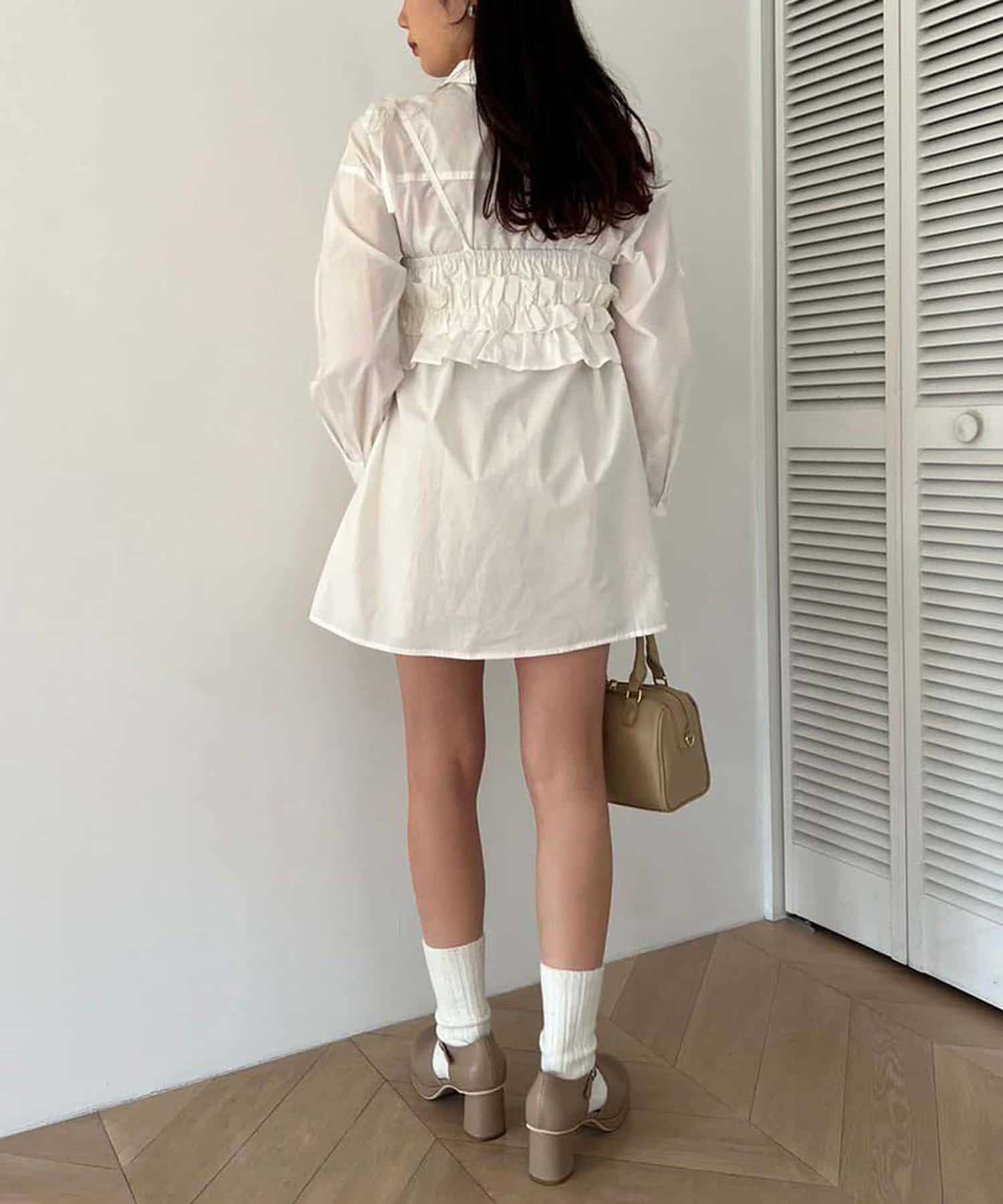 ミニワンピースでも使えるミドル丈のシャツにビスチェがセットになったアンサンブルアイテム