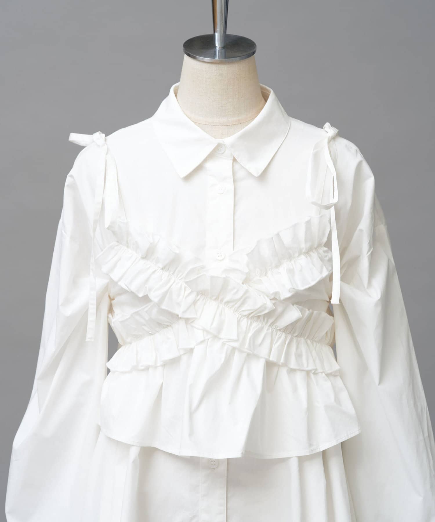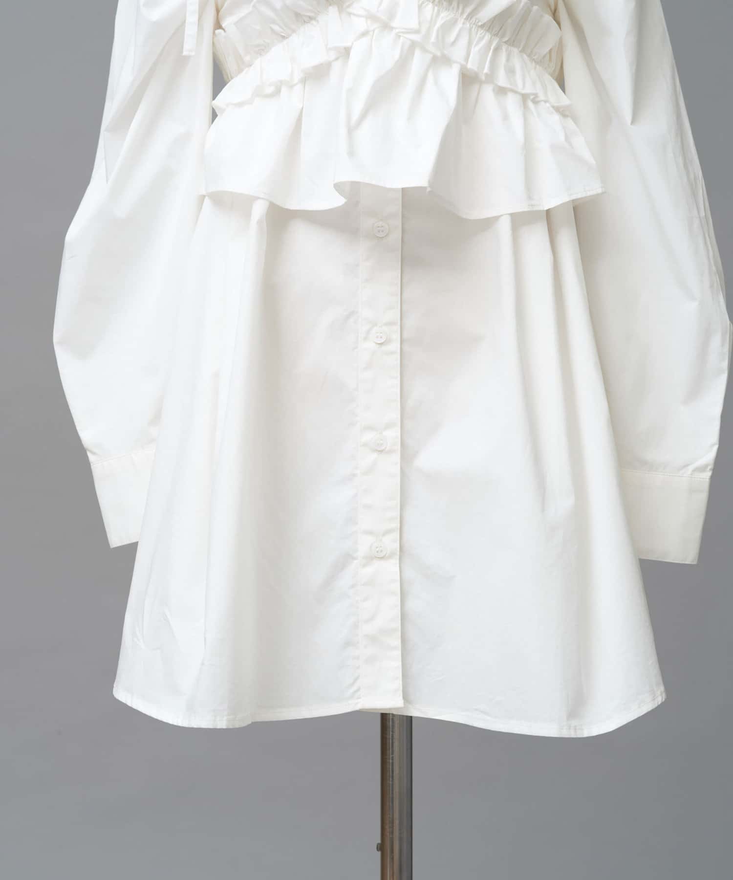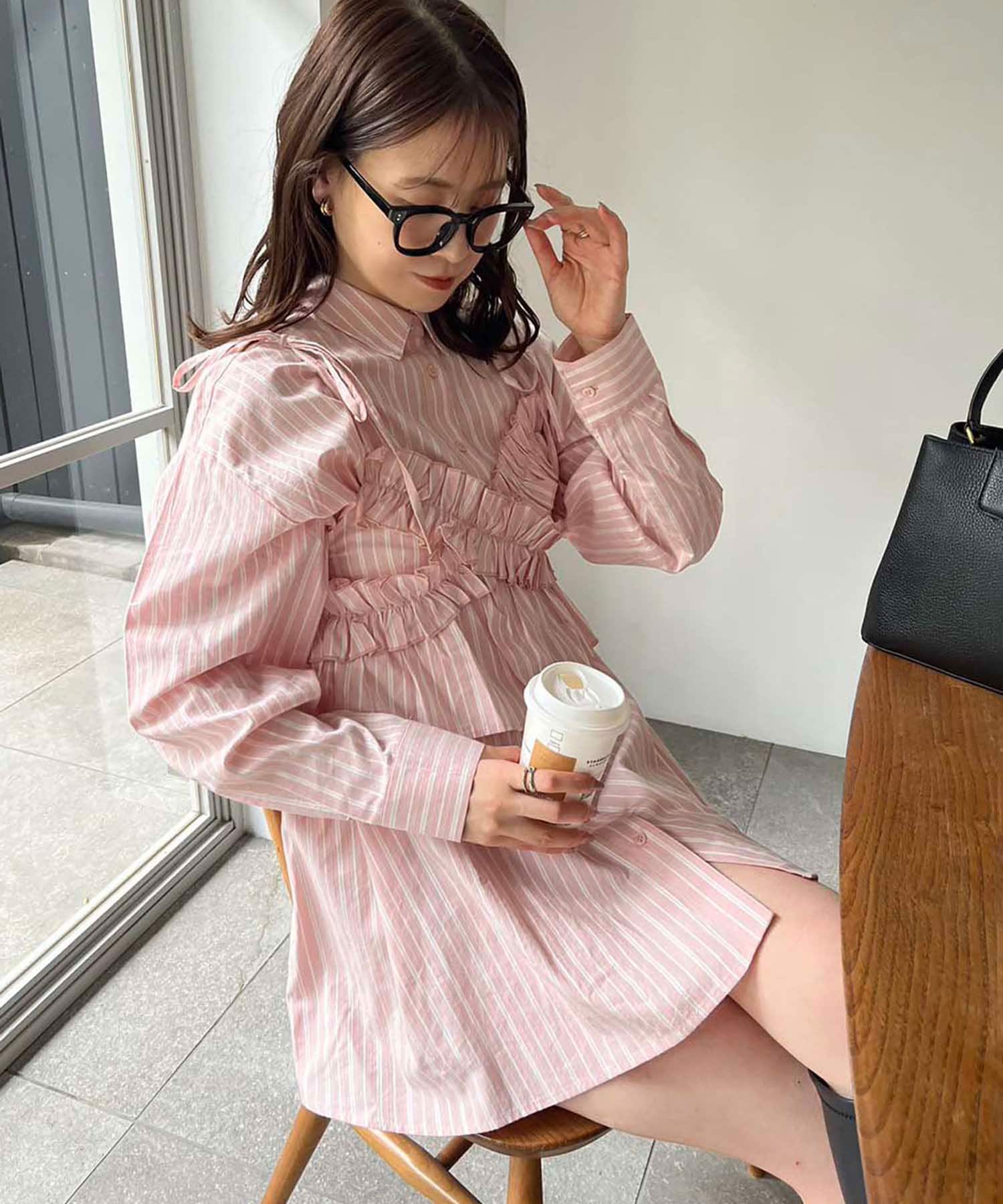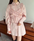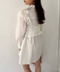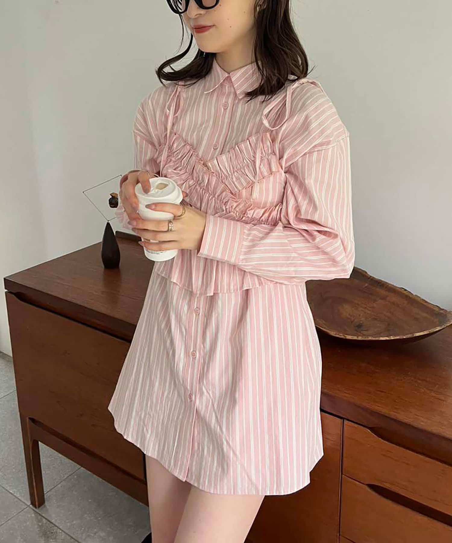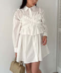 ミニワンピースでも使えるミドル丈のシャツにビスチェがセットになったアンサンブルアイテム