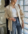 肩ボタンを開き閉めすることで印象も変えられるので、オンオフ両方でお使いいただけます。