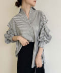 マニッシュな中に女性らしさの感じられる肩開きデザインシャツは、1枚で着映えするアイテムです。