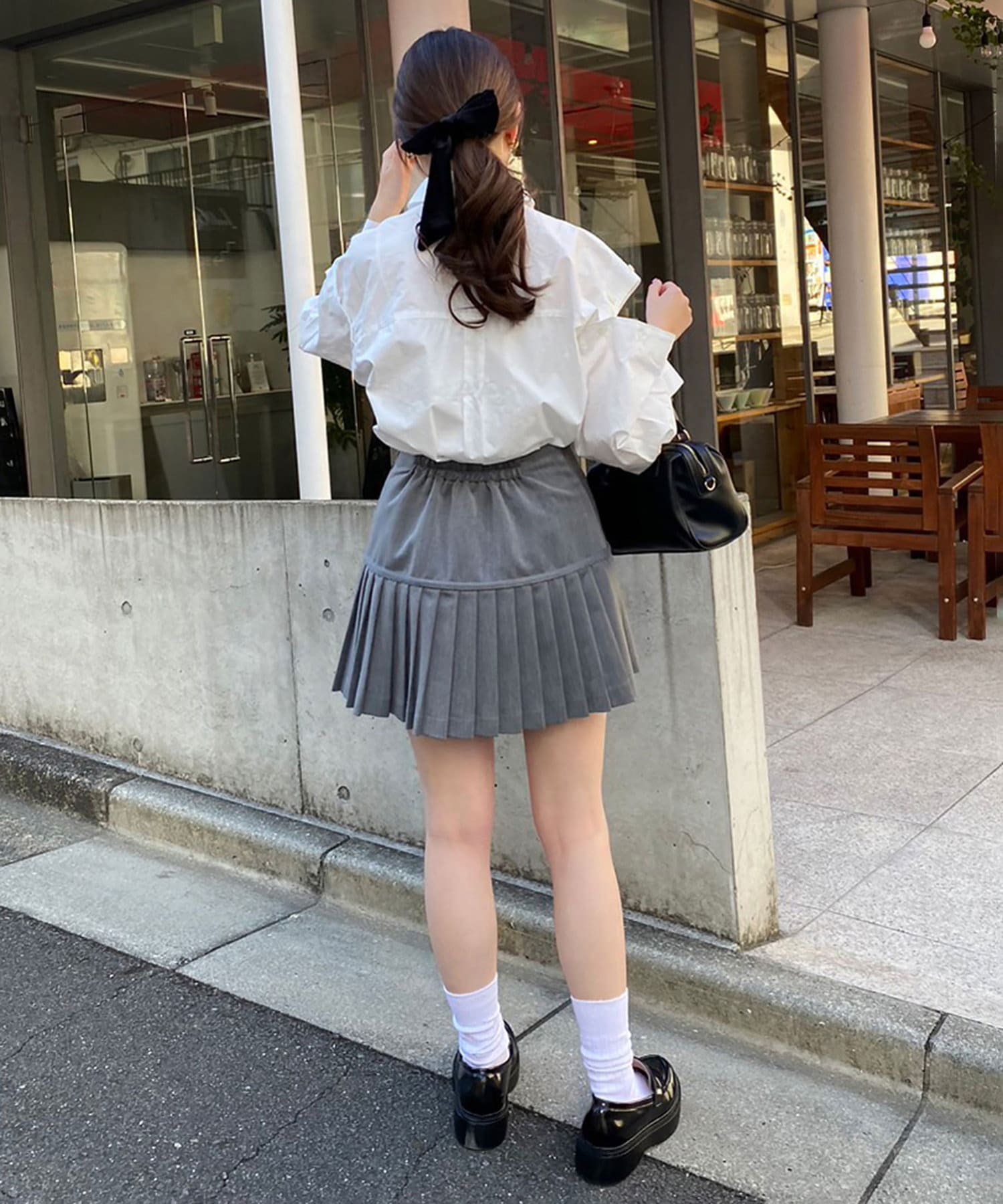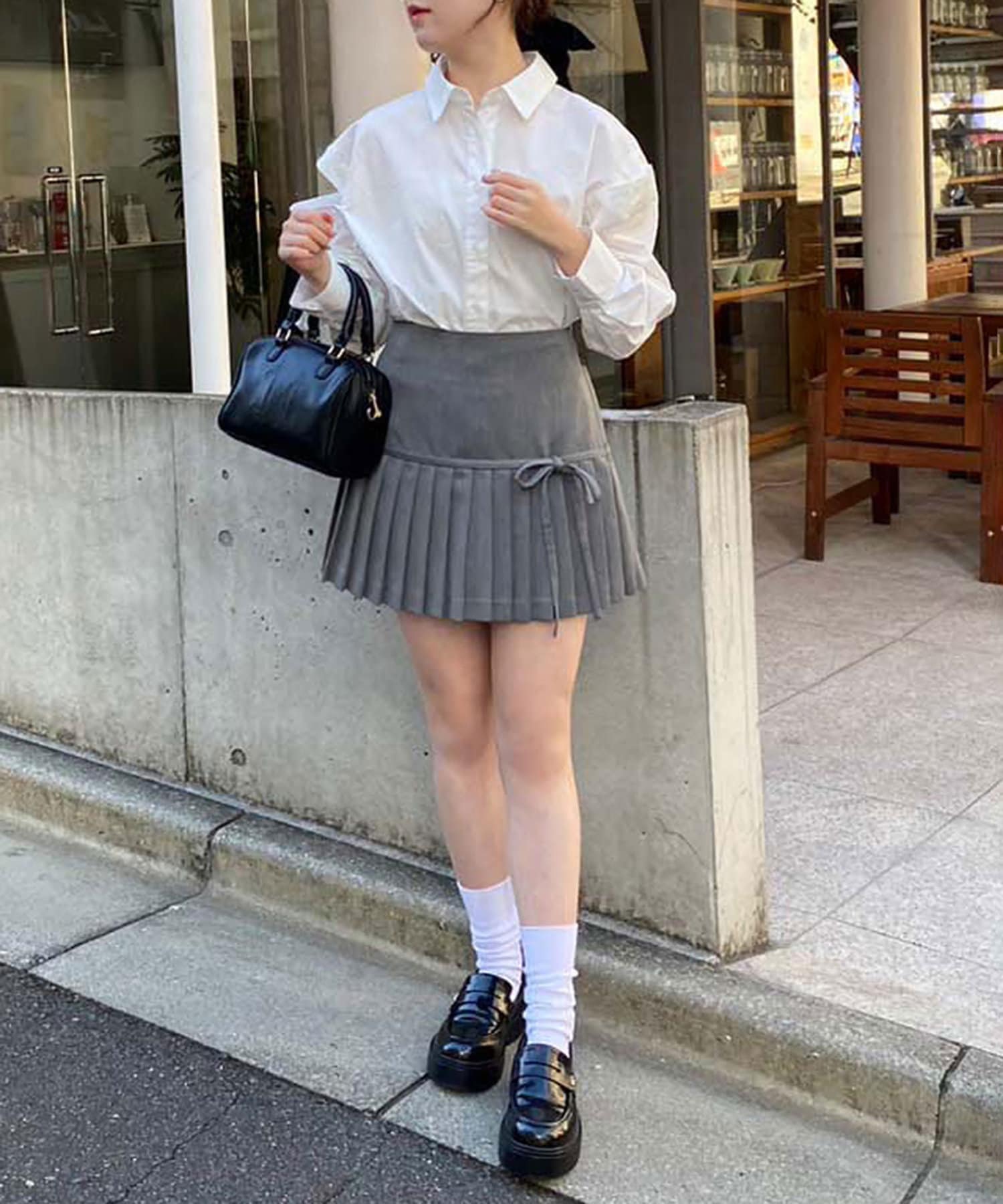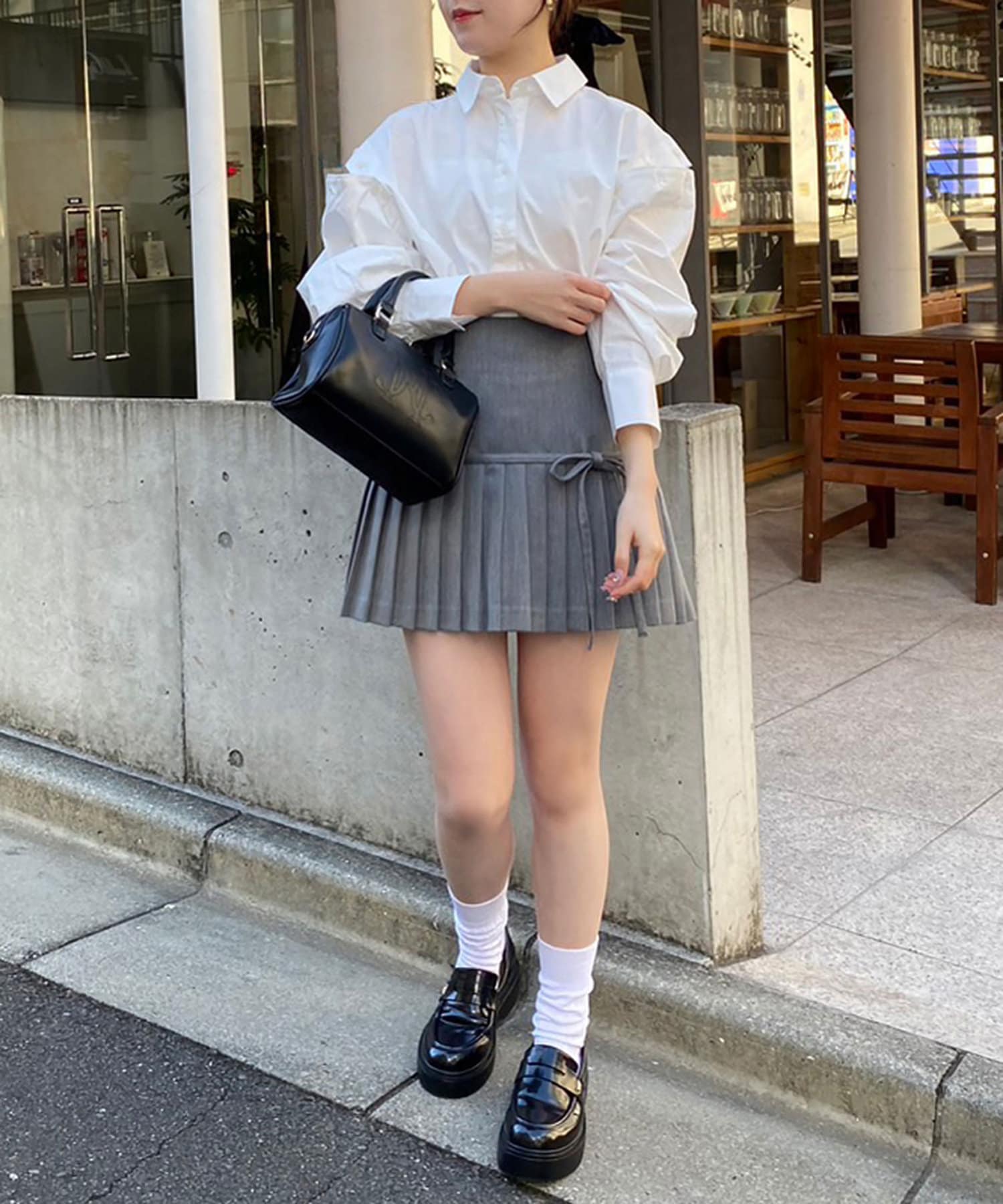 シャツブラウスのデザインなので、パンツにもスカートにも相性が良く、