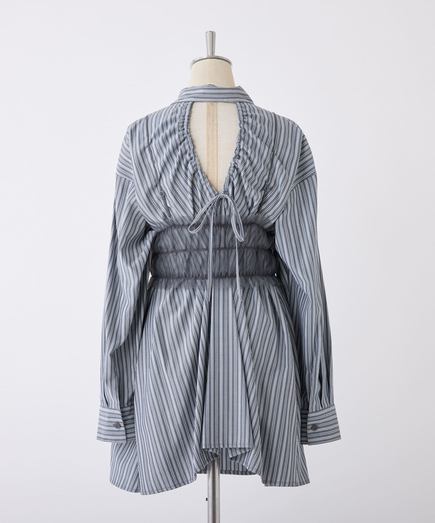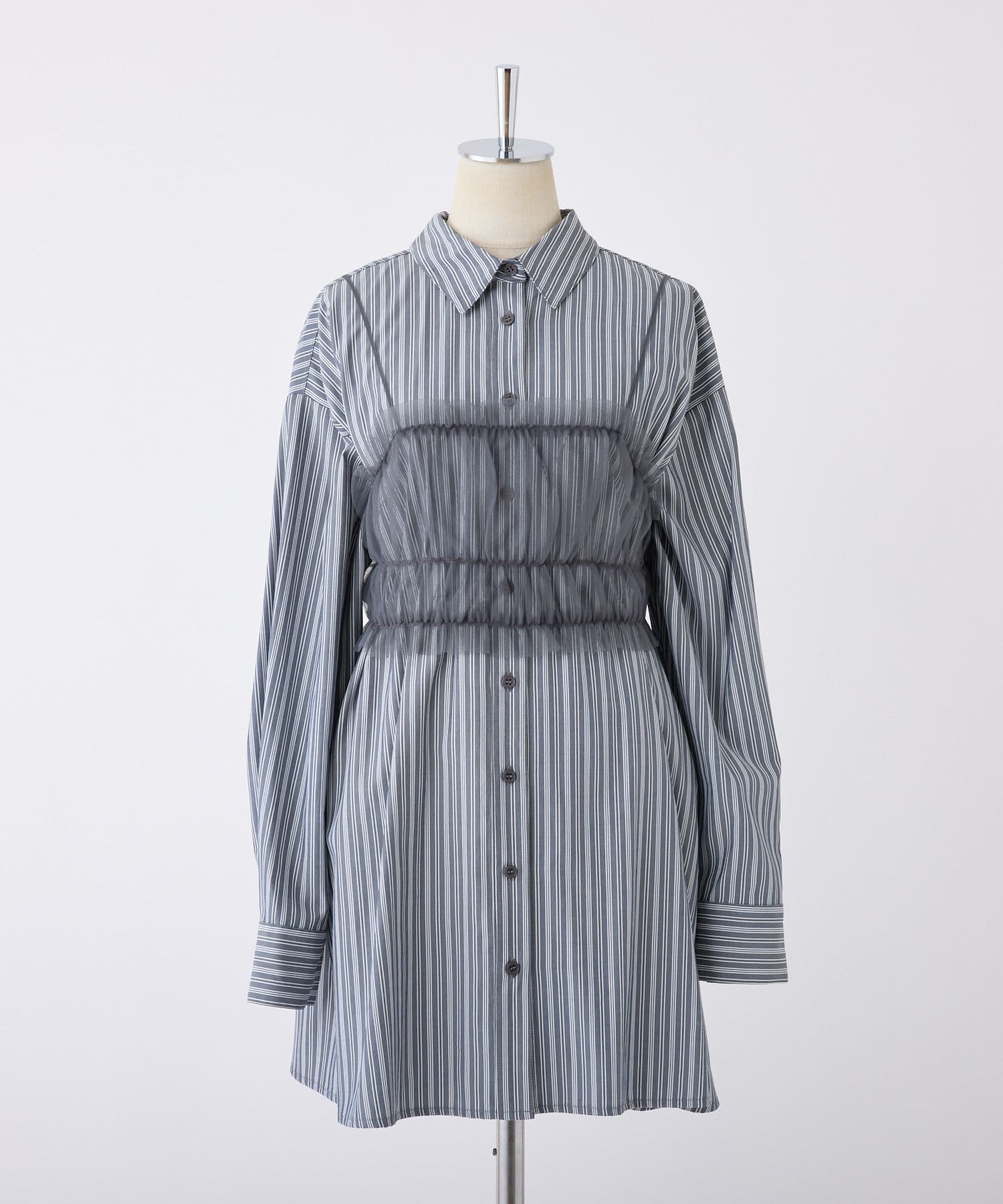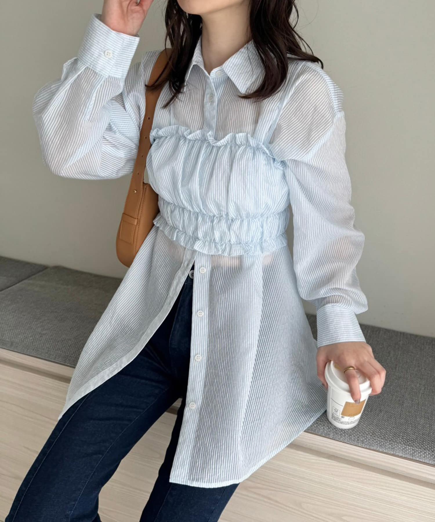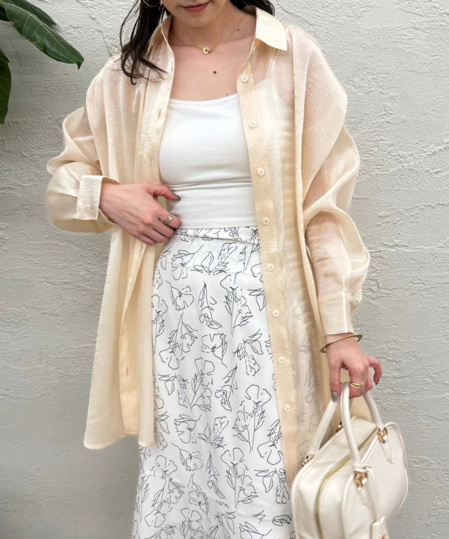 ミニワンピースでも使えるミドル丈のシアシャツに