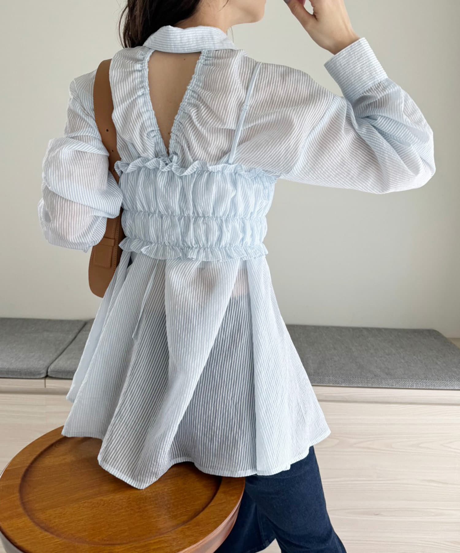 シャツはキャミワンピースの上などから羽織としてもお使い頂けます。