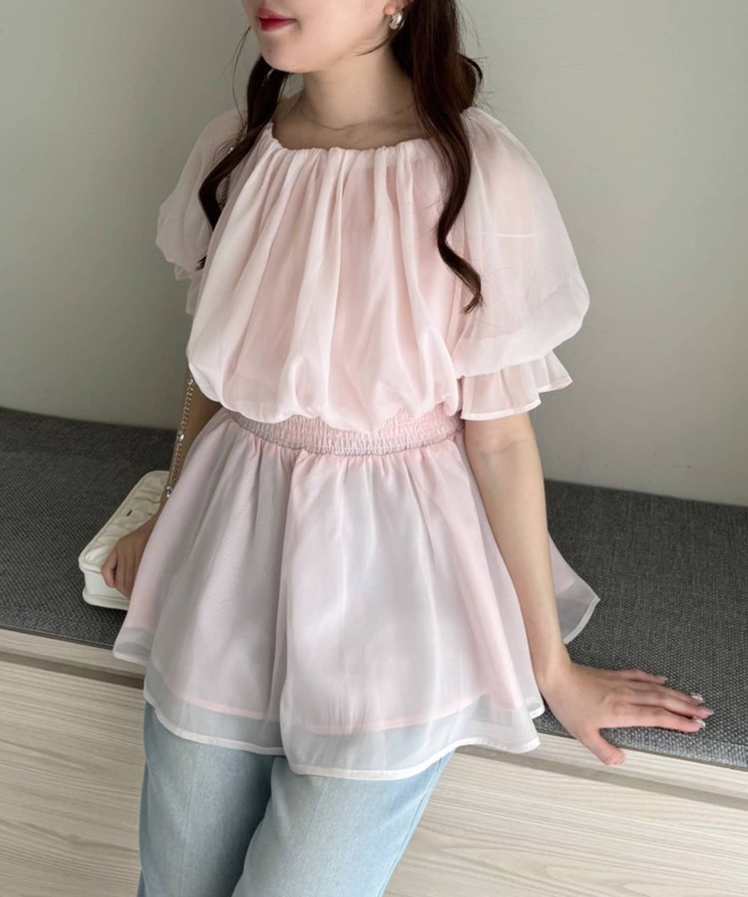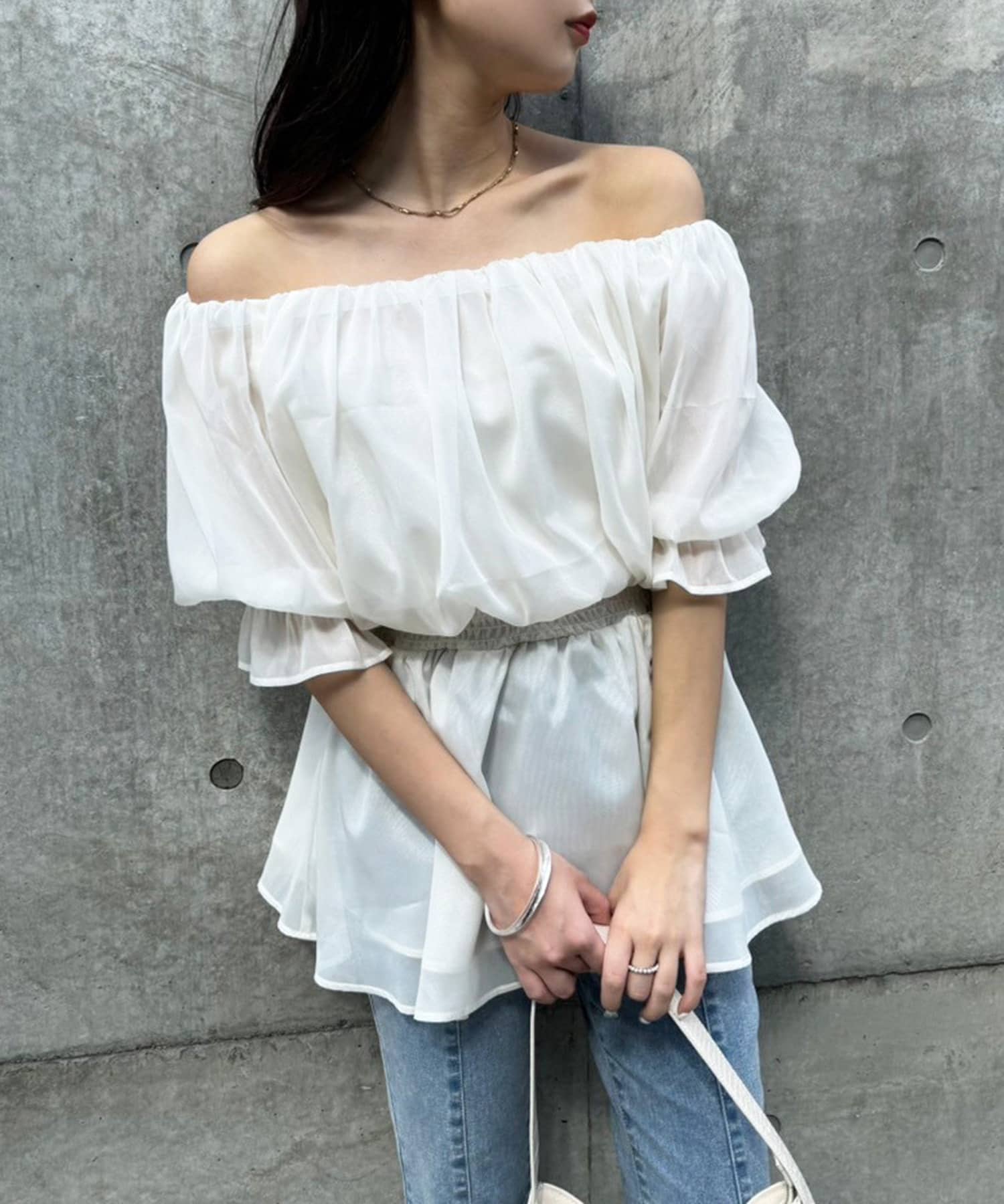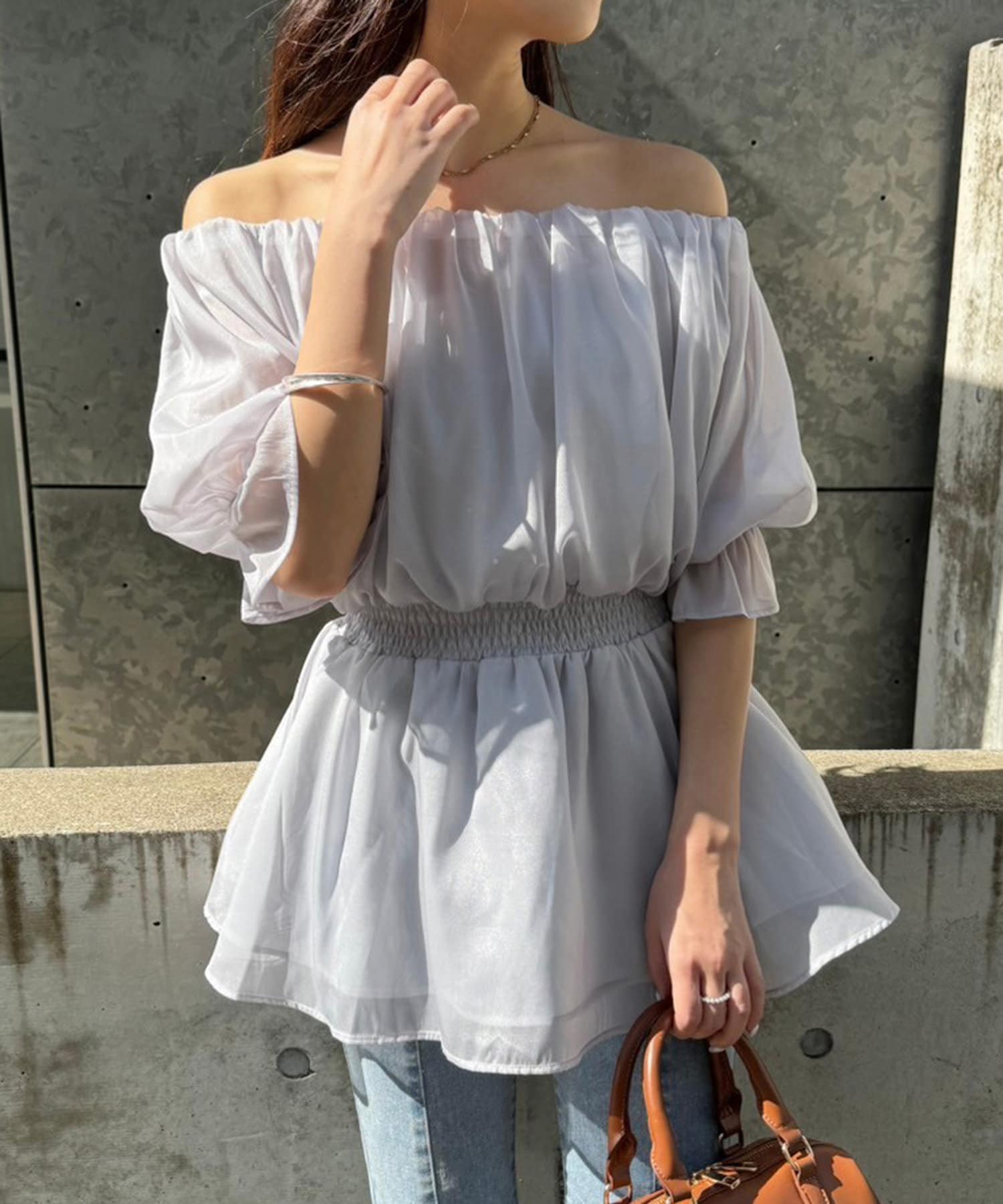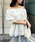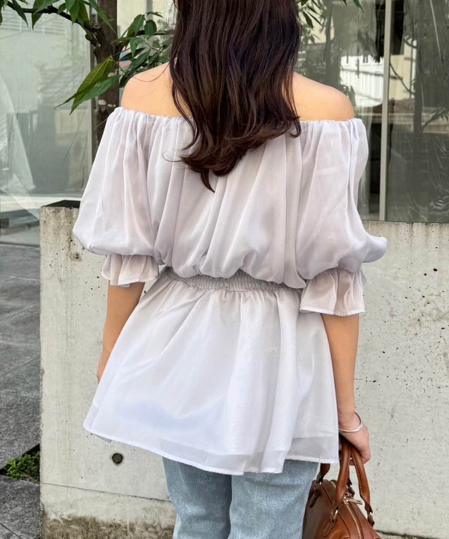 オフショルでも着られるオーガンジーのフェミニンブラウス