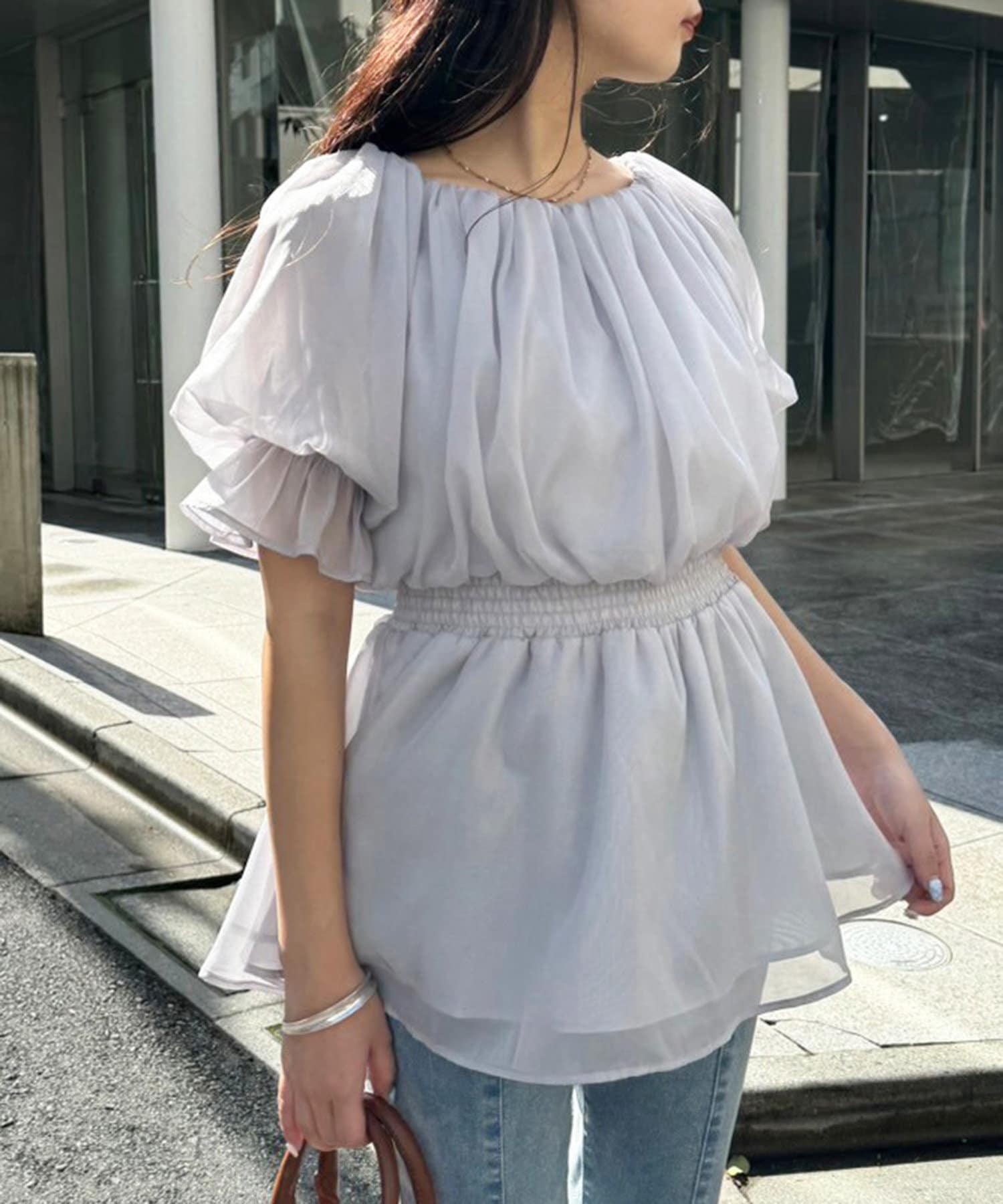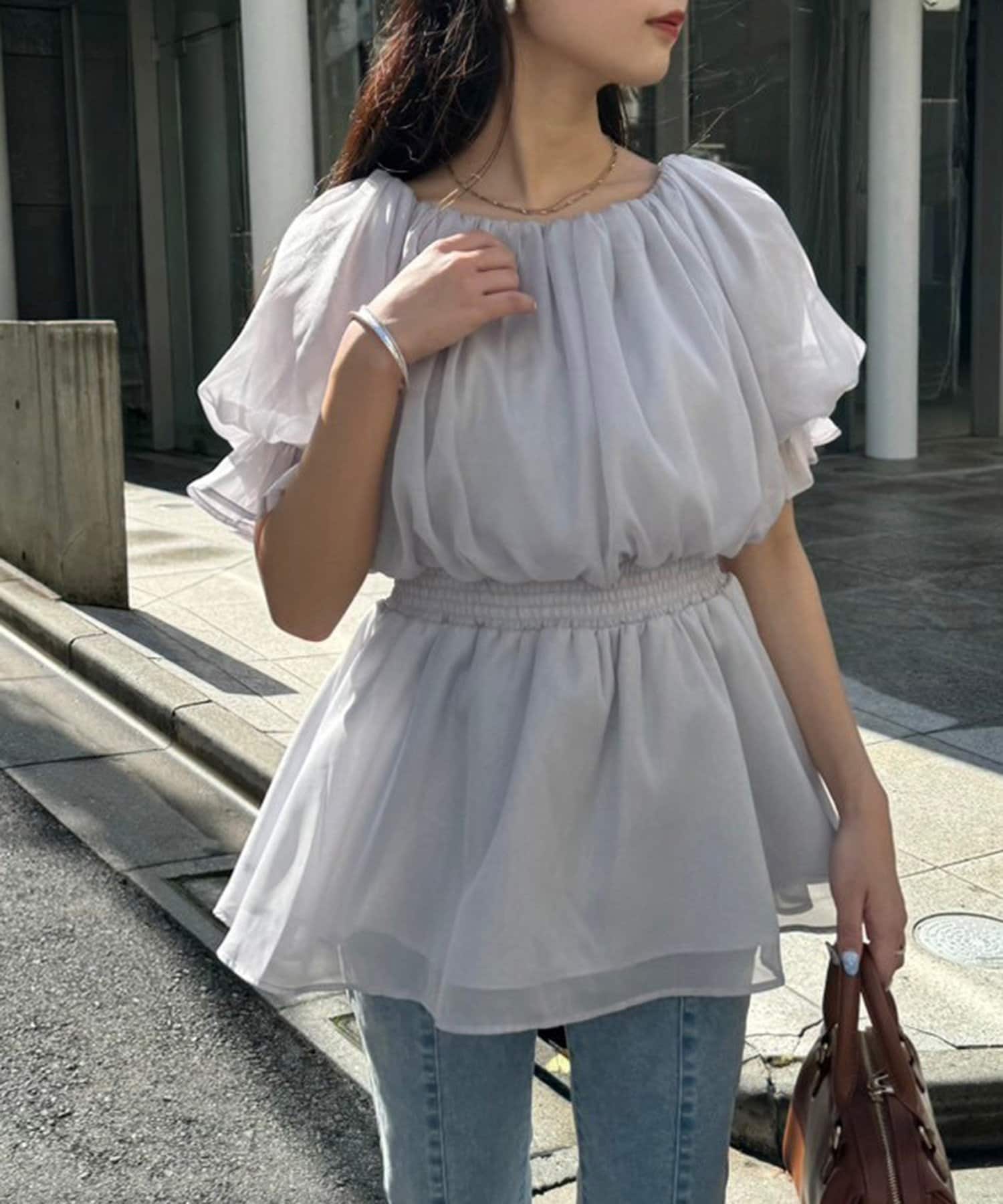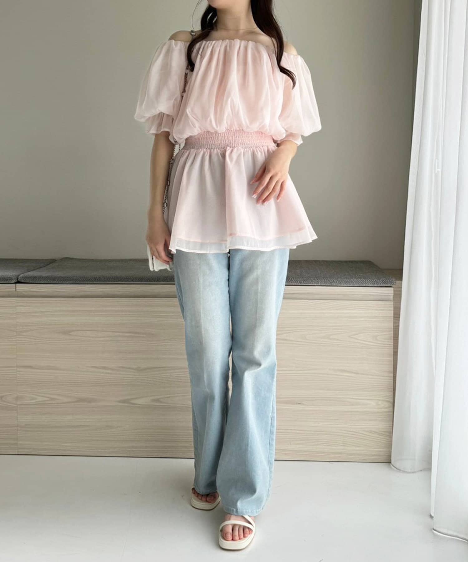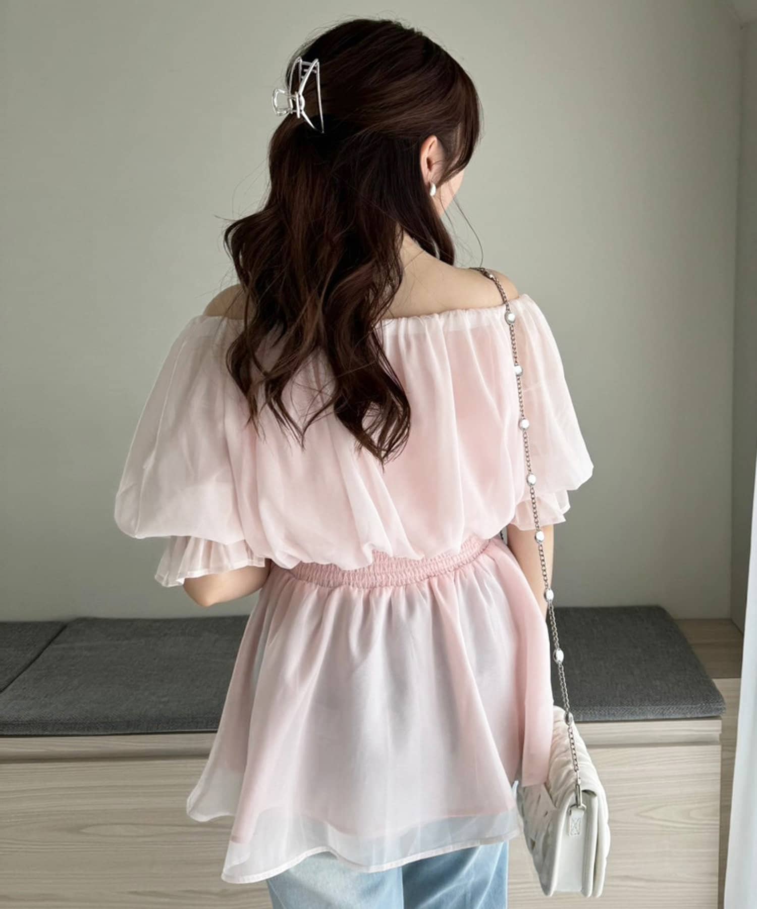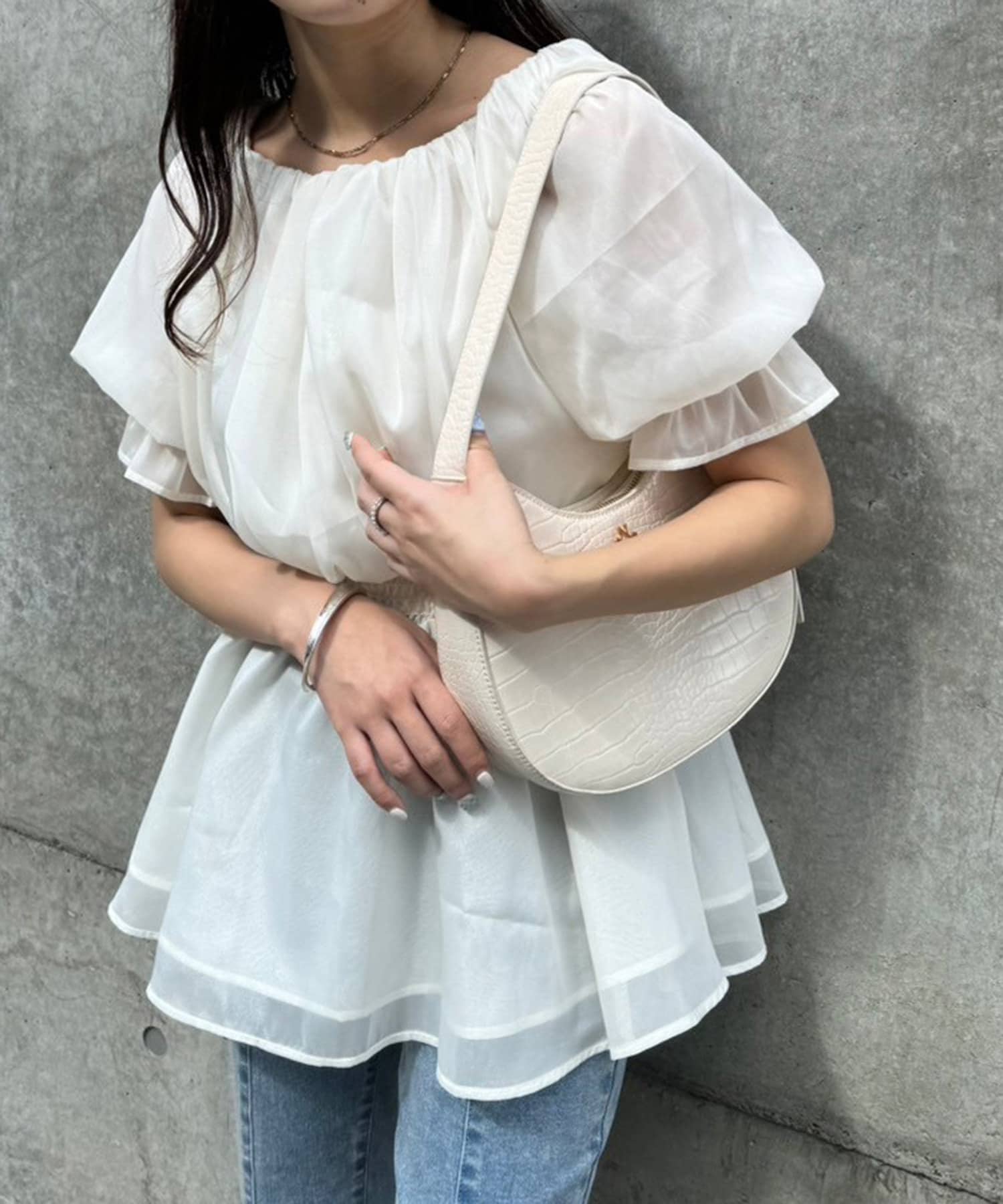 オフショルでも着られるオーガンジーのフェミニンブラウス