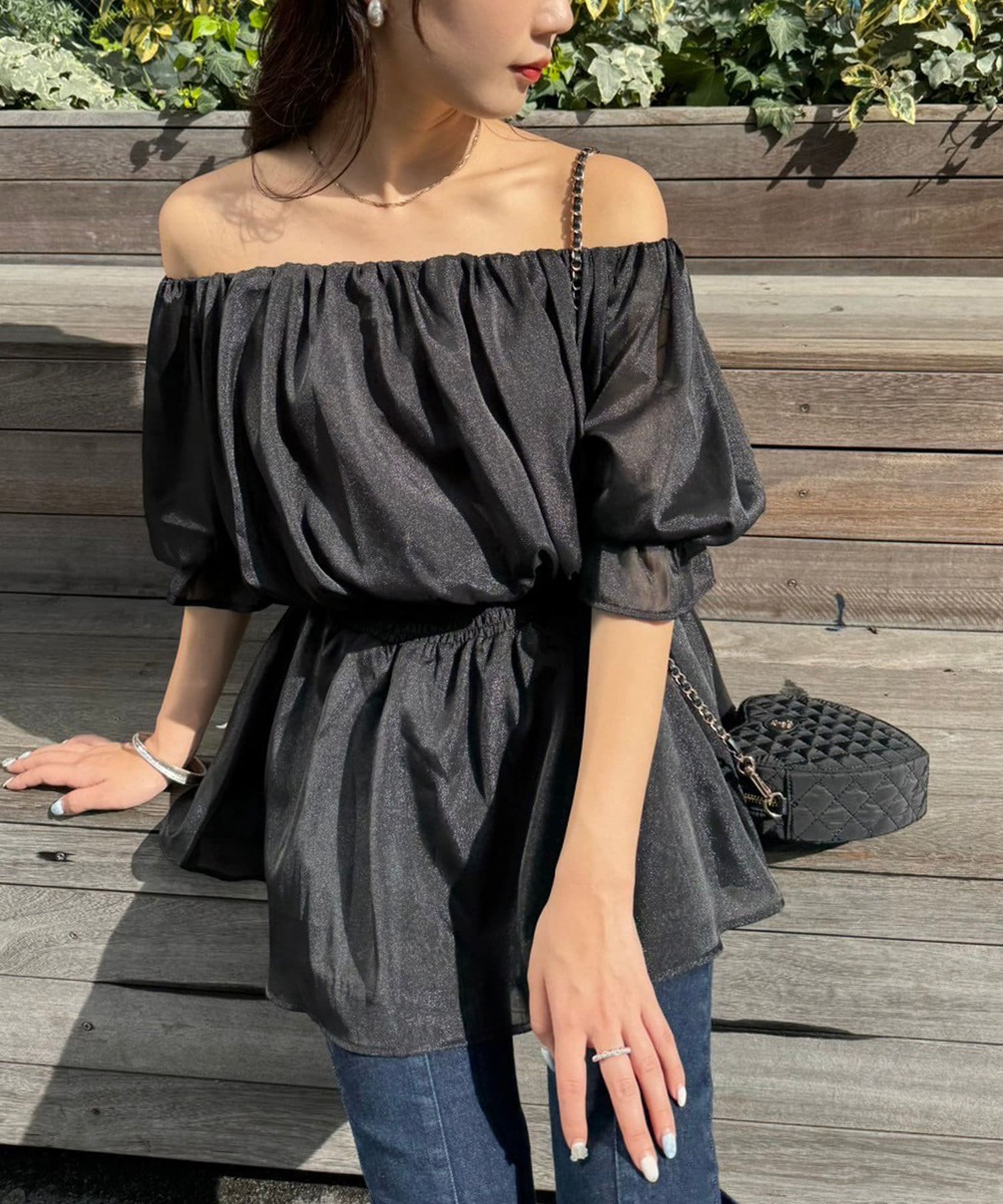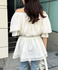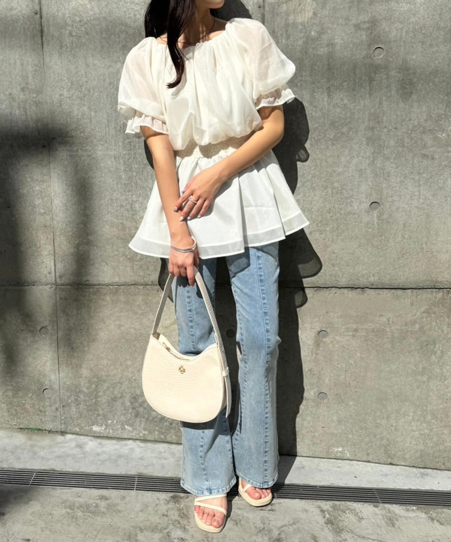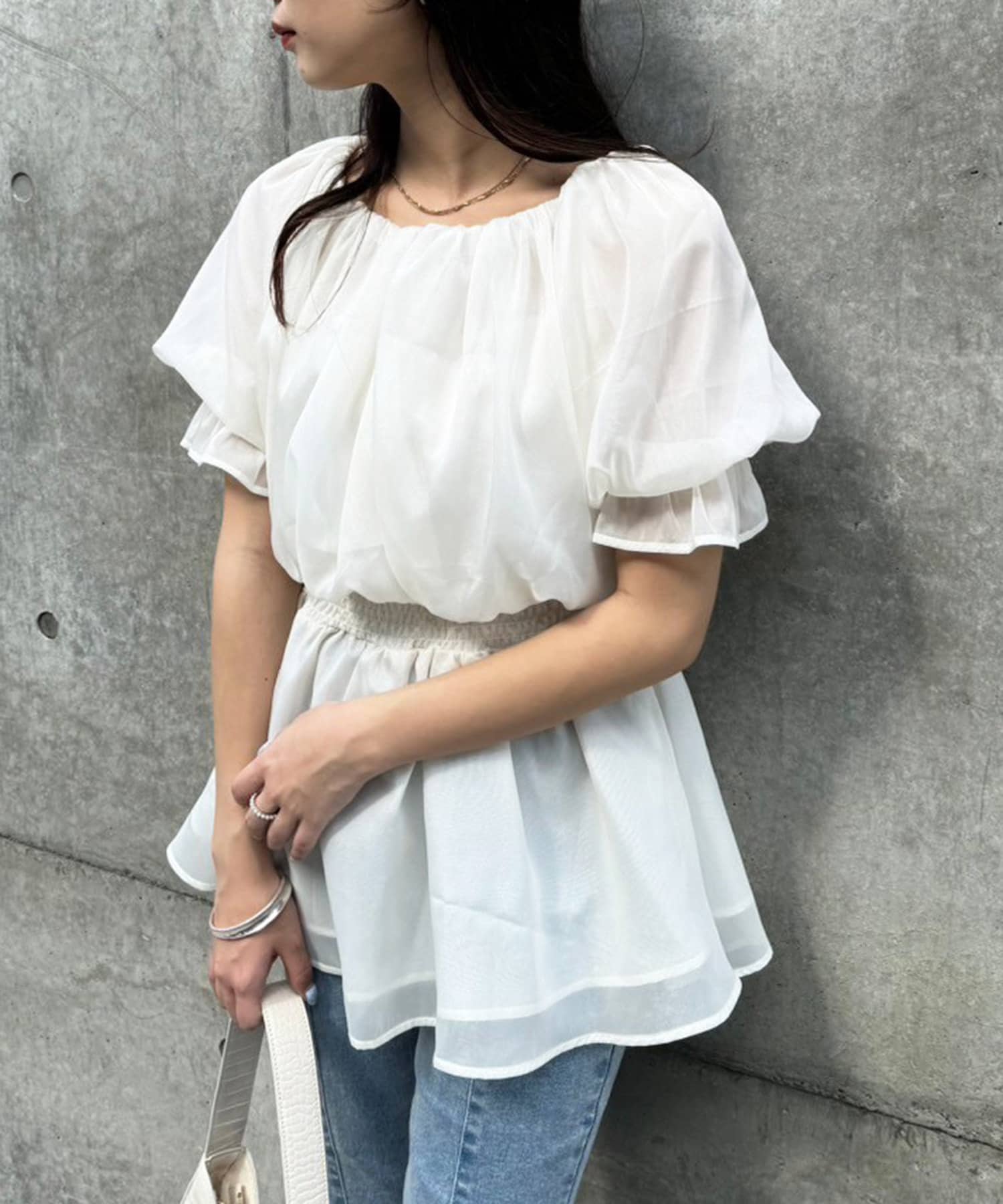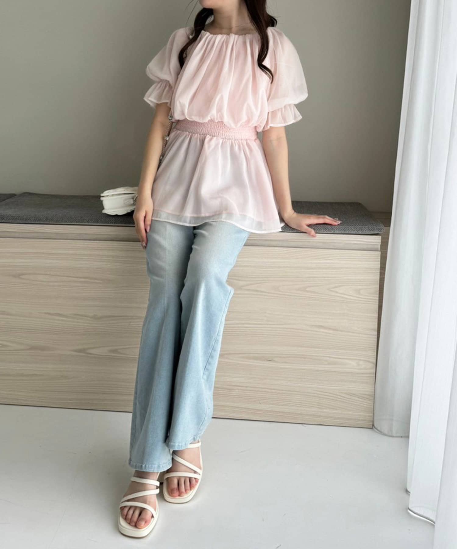 オフショルでも着られるオーガンジーのフェミニンブラウス