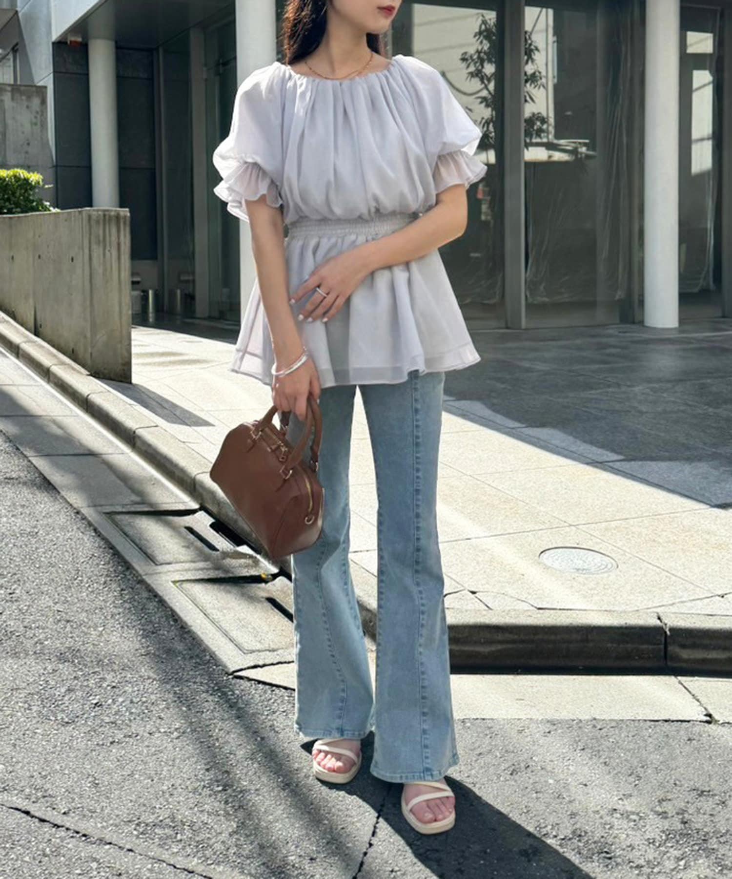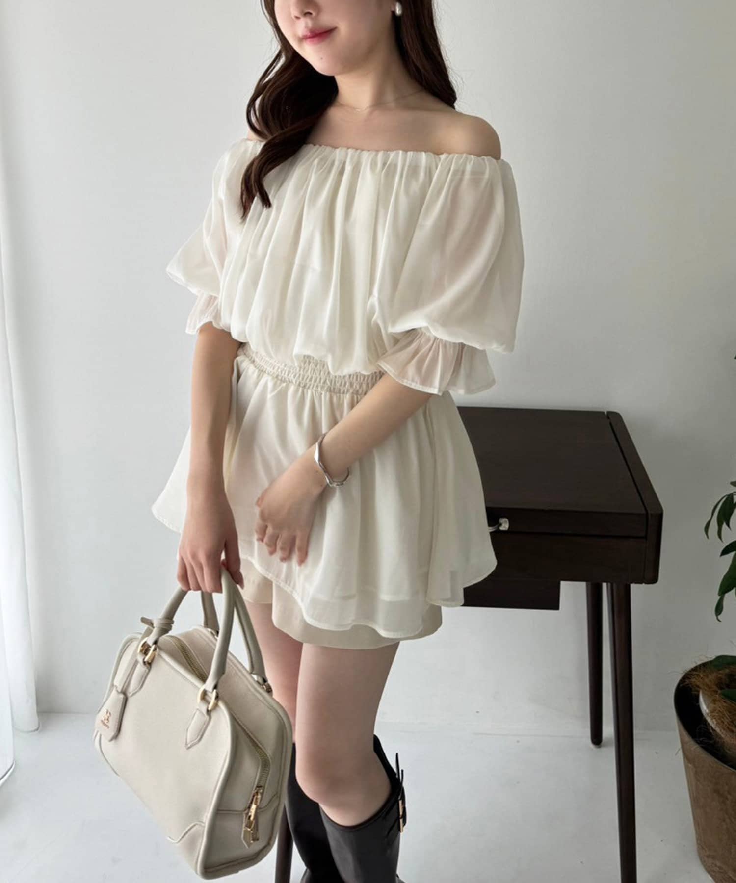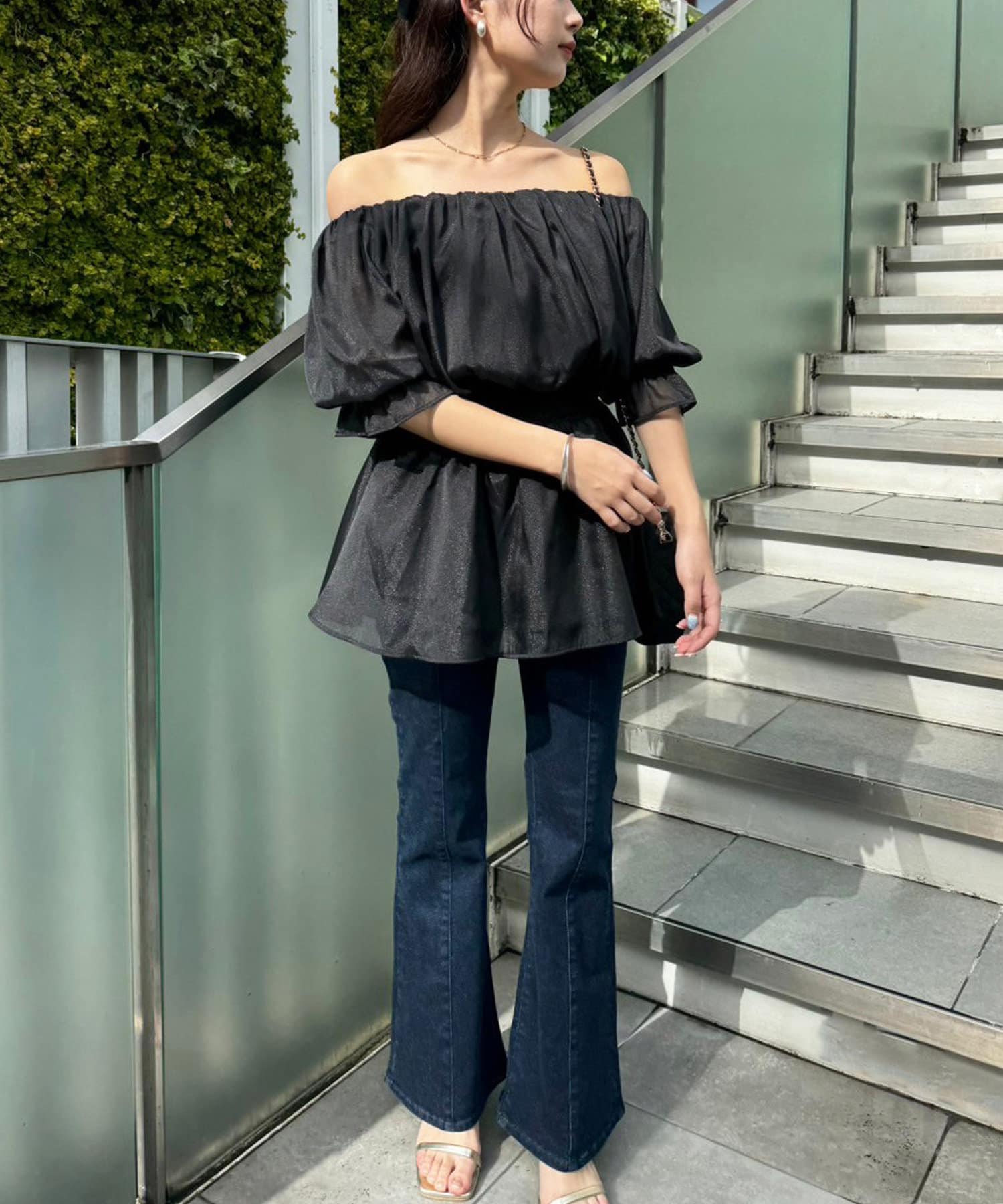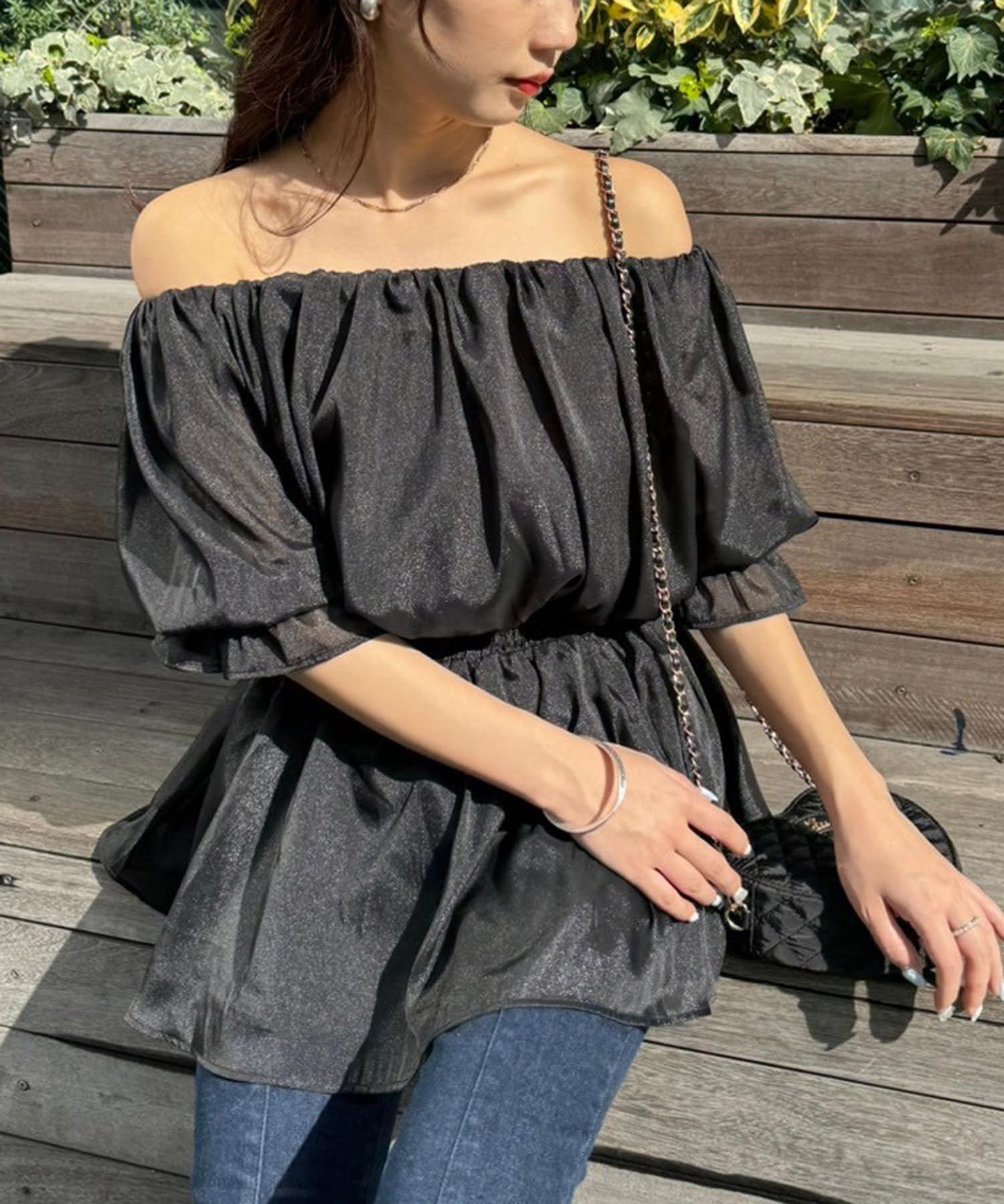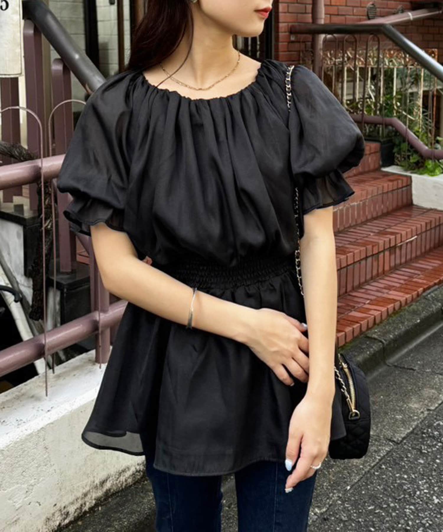 オフショルでも着られるオーガンジーのフェミニンブラウス