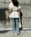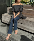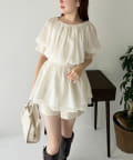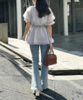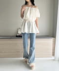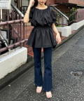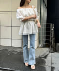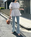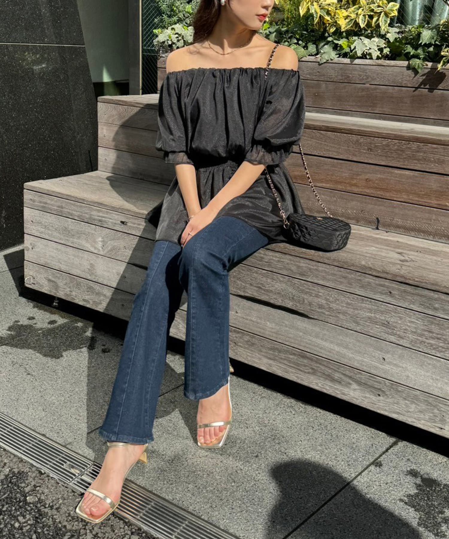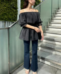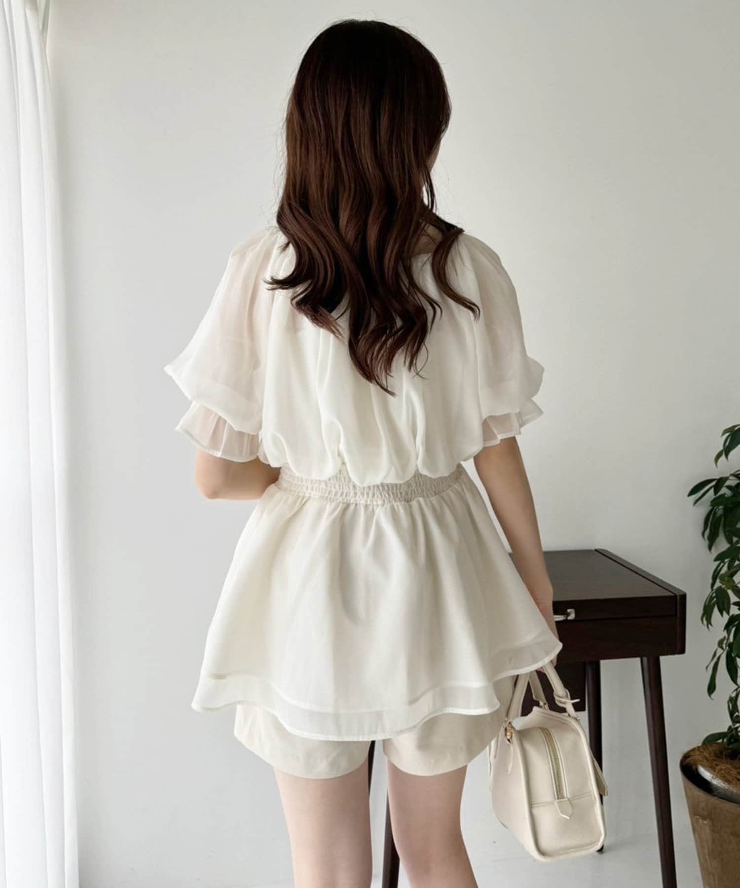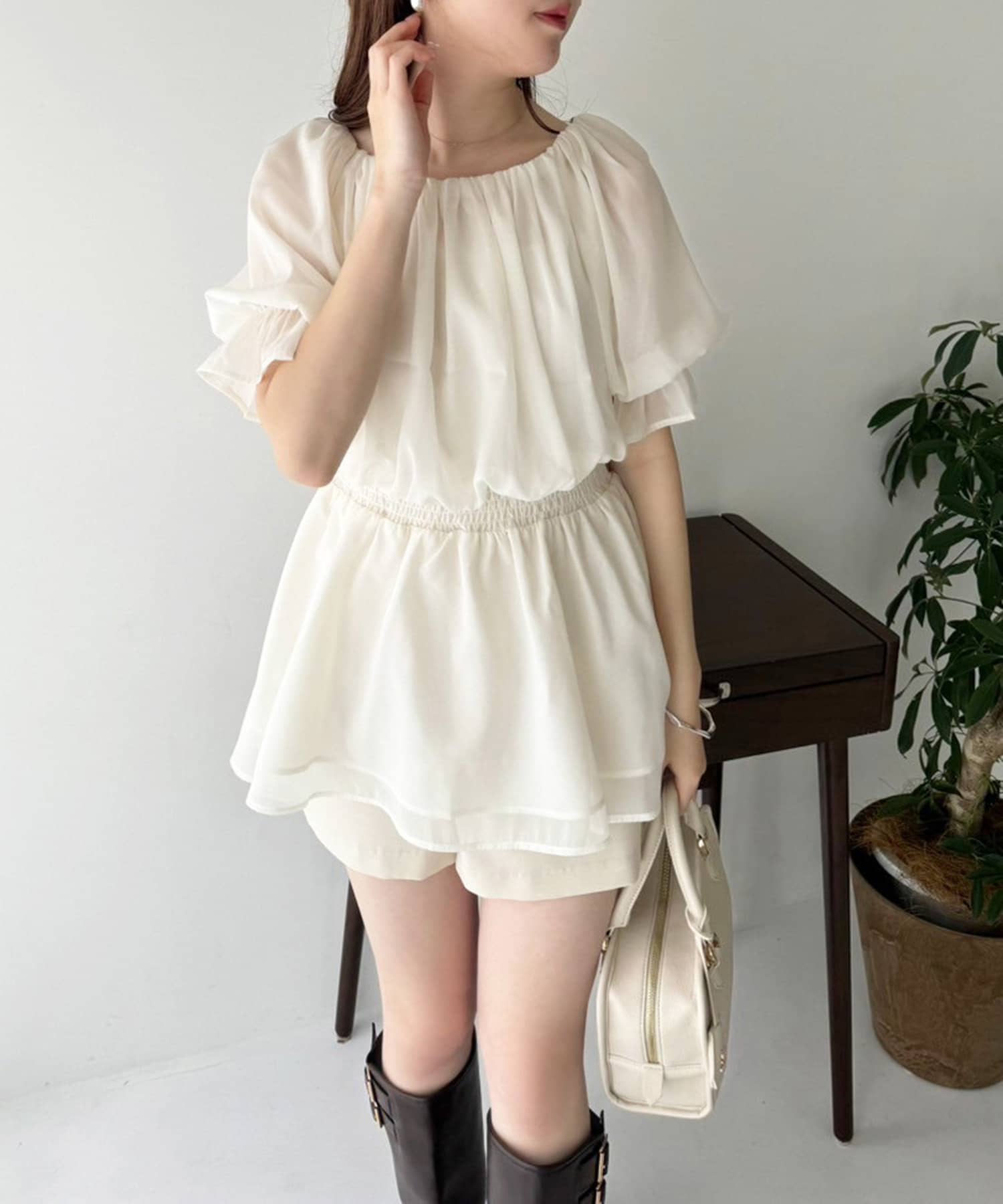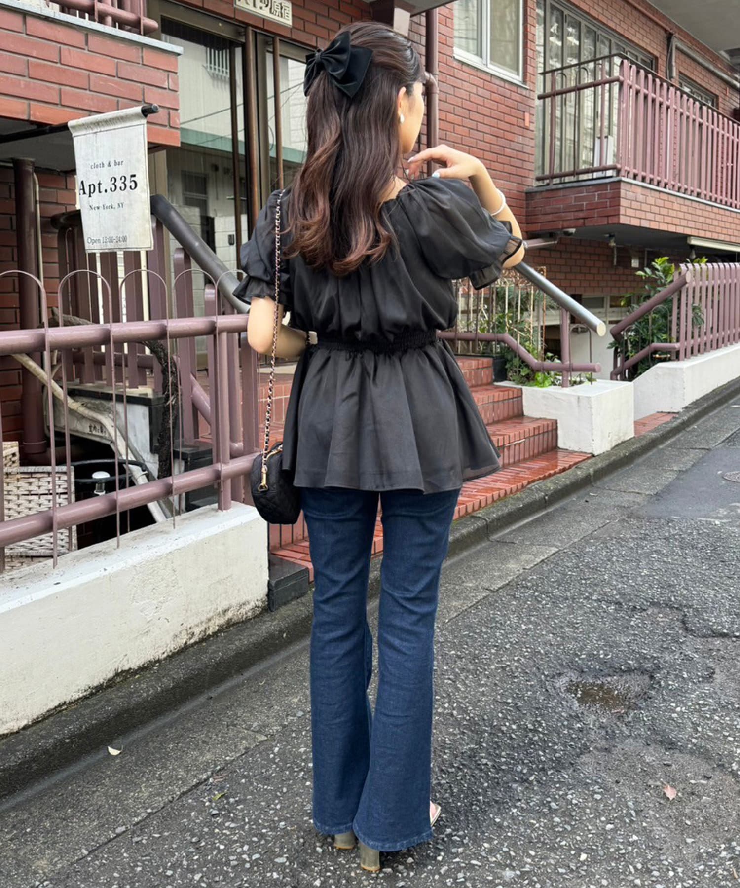 オフショルでも着られるオーガンジーのフェミニンブラウス