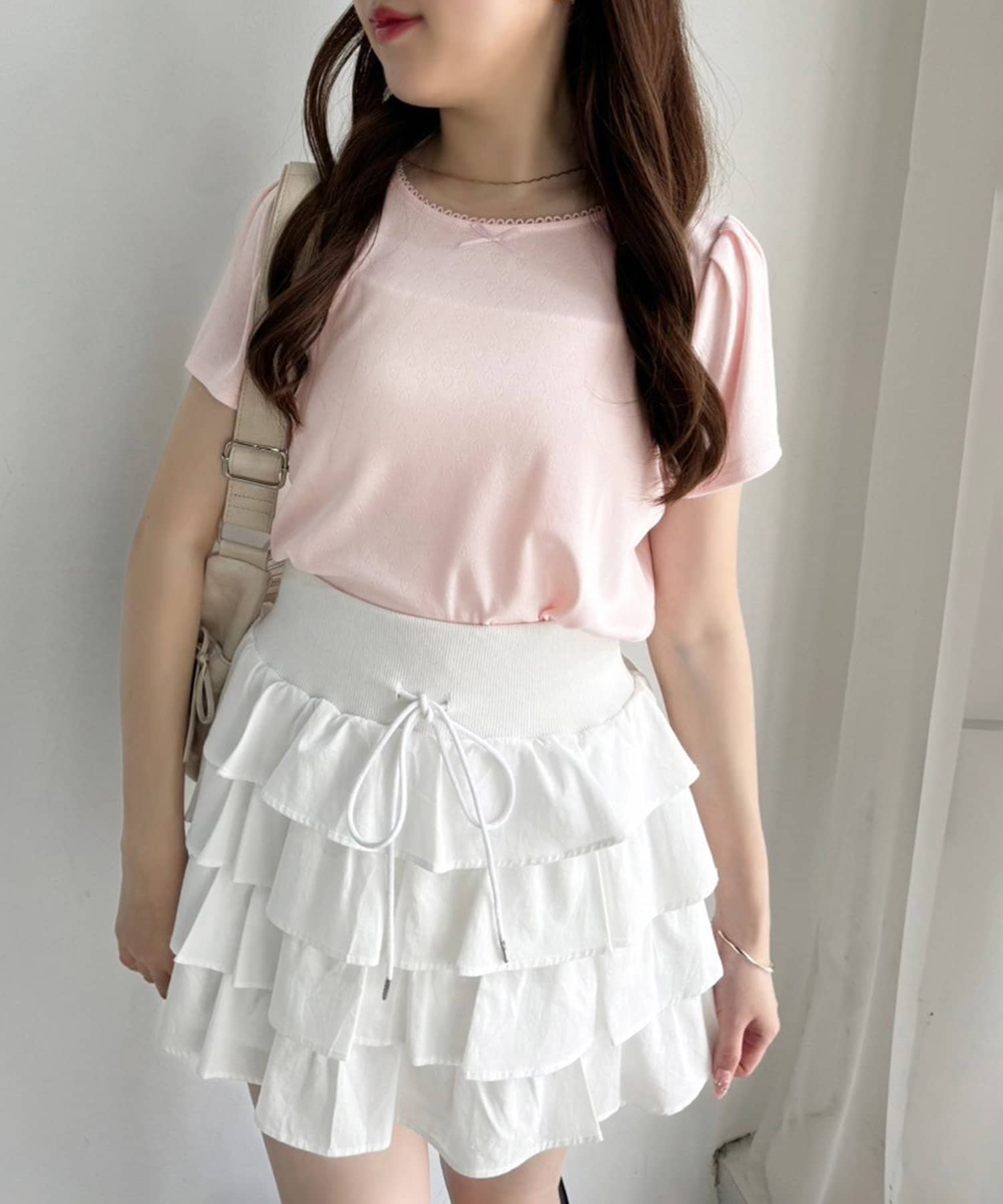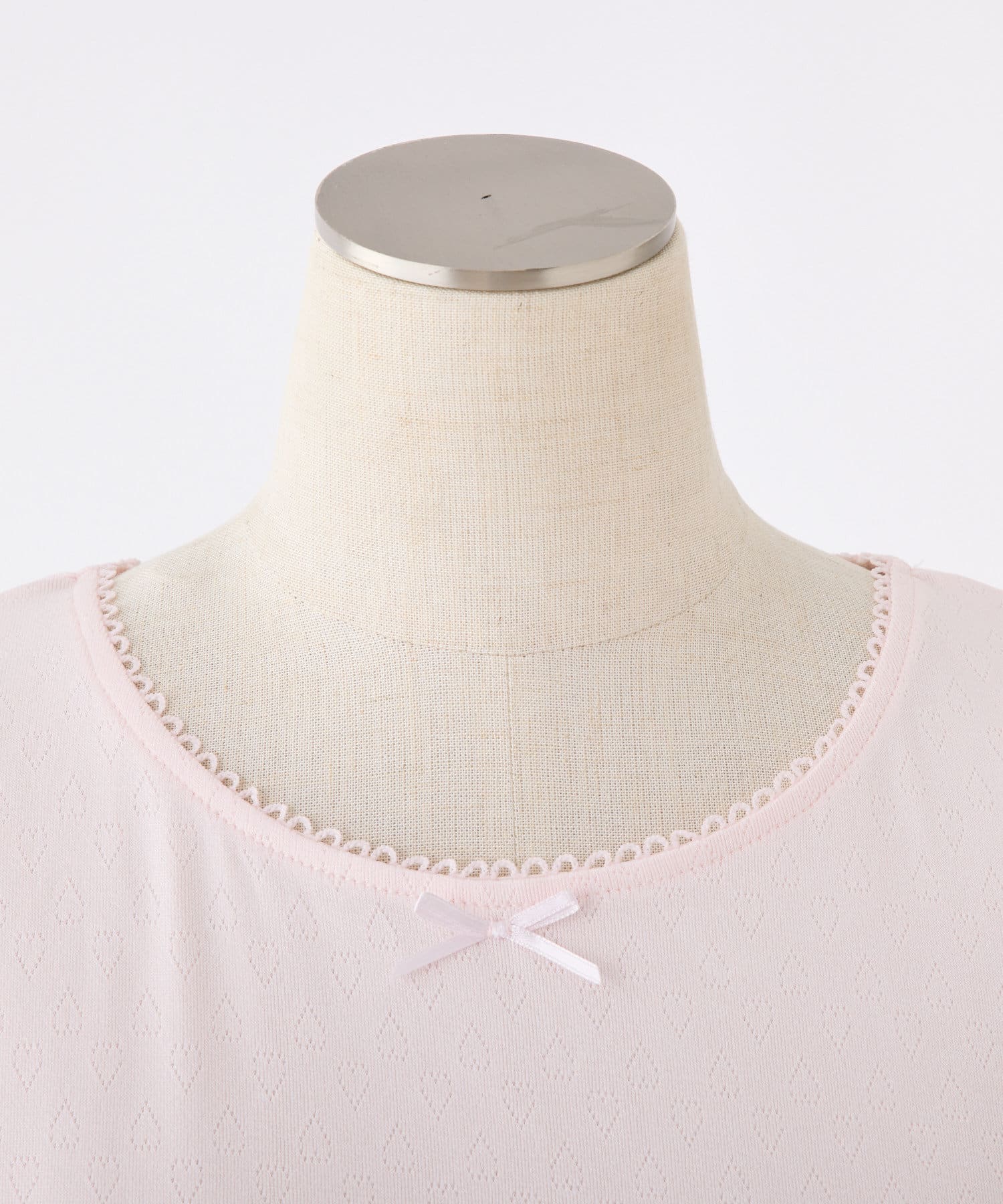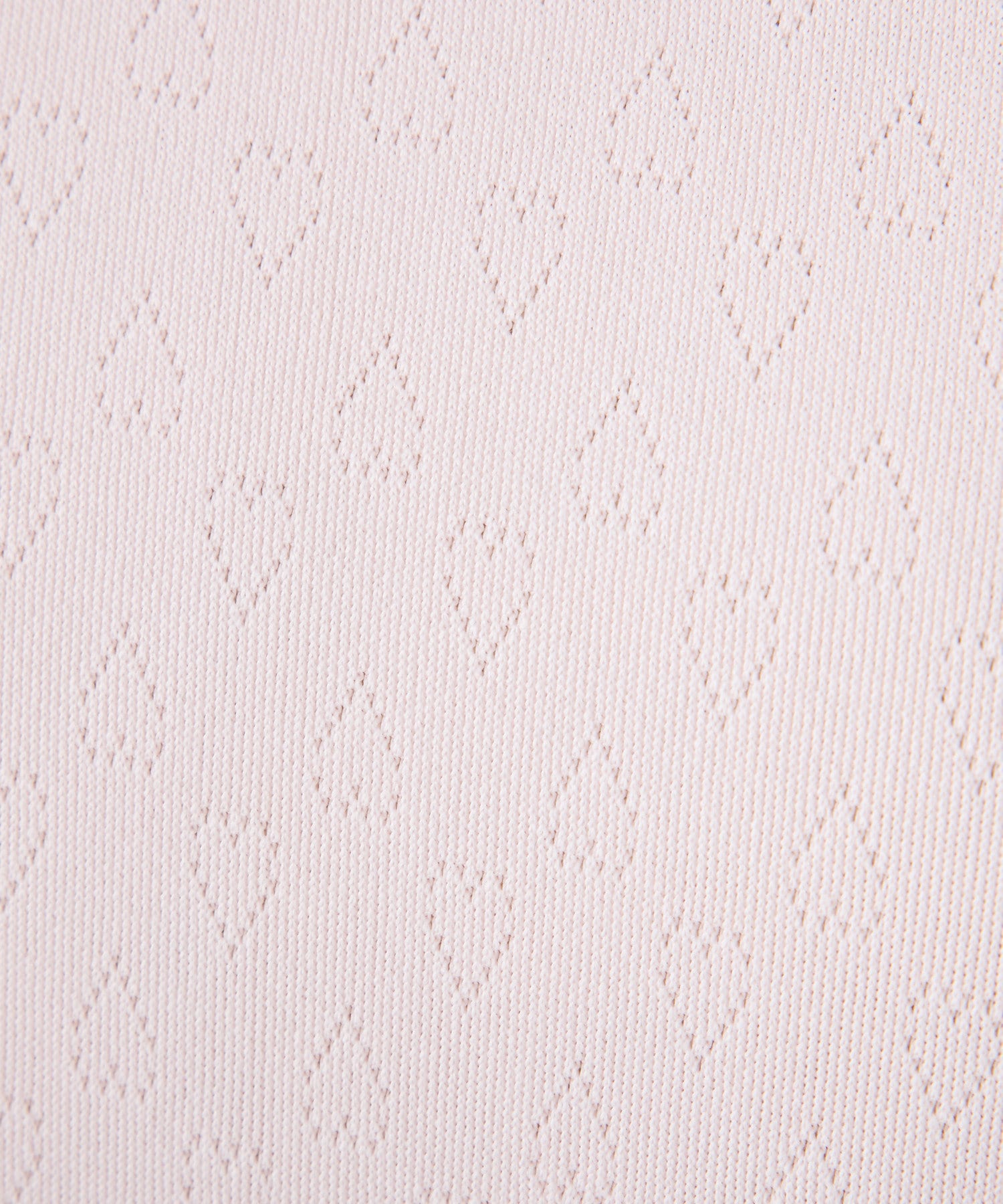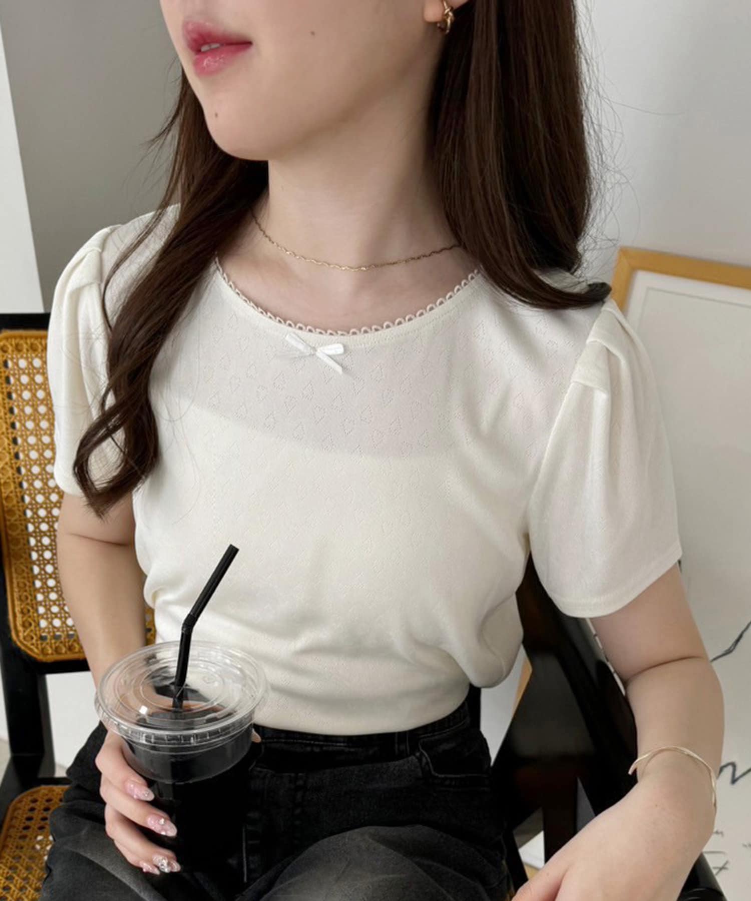 ハート柄の透かし網や首元のピコレースがガーリーさを演出してくれます。