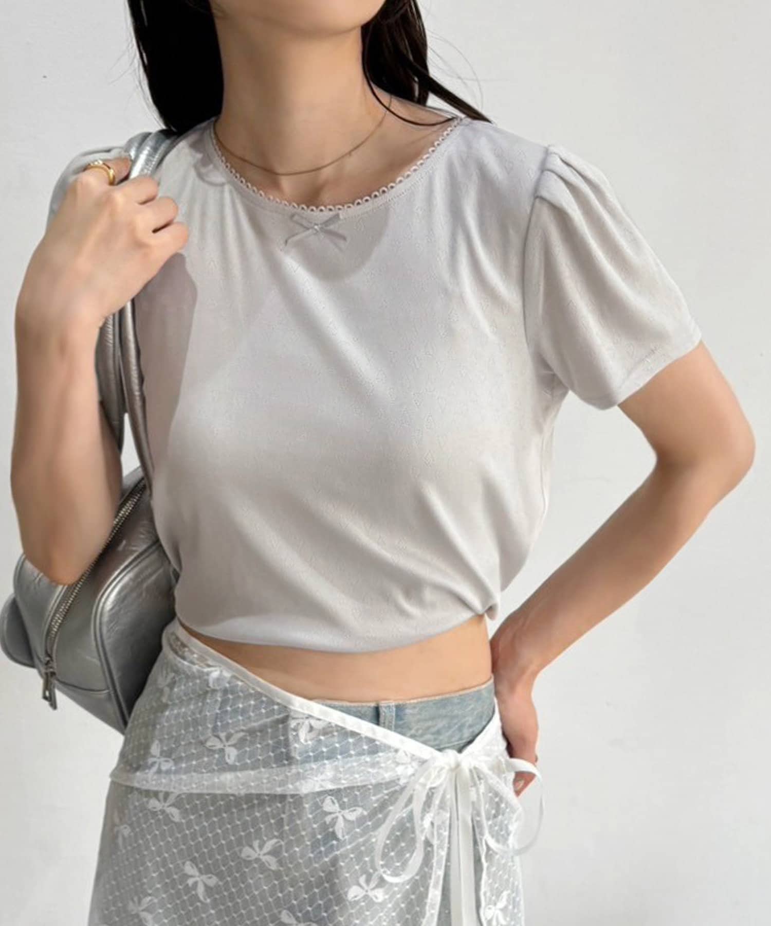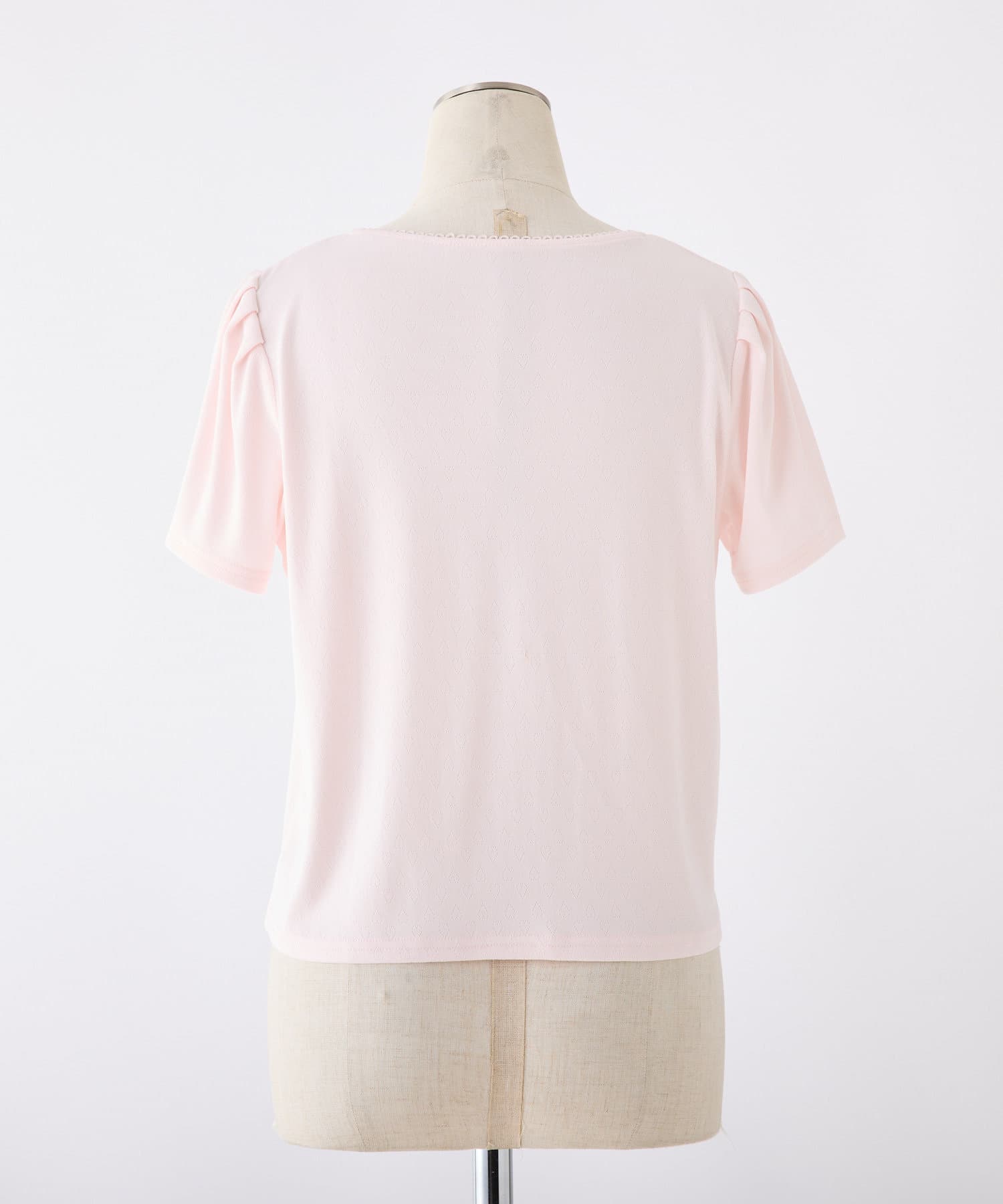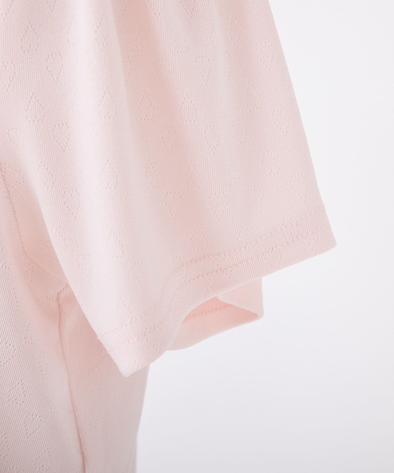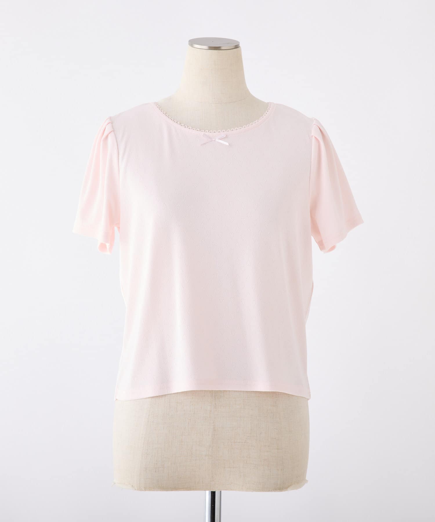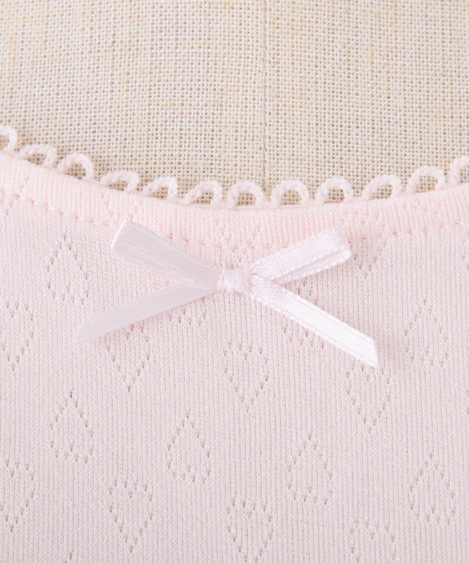 ハート柄の透かし網や首元のピコレースがガーリーさを演出してくれます。