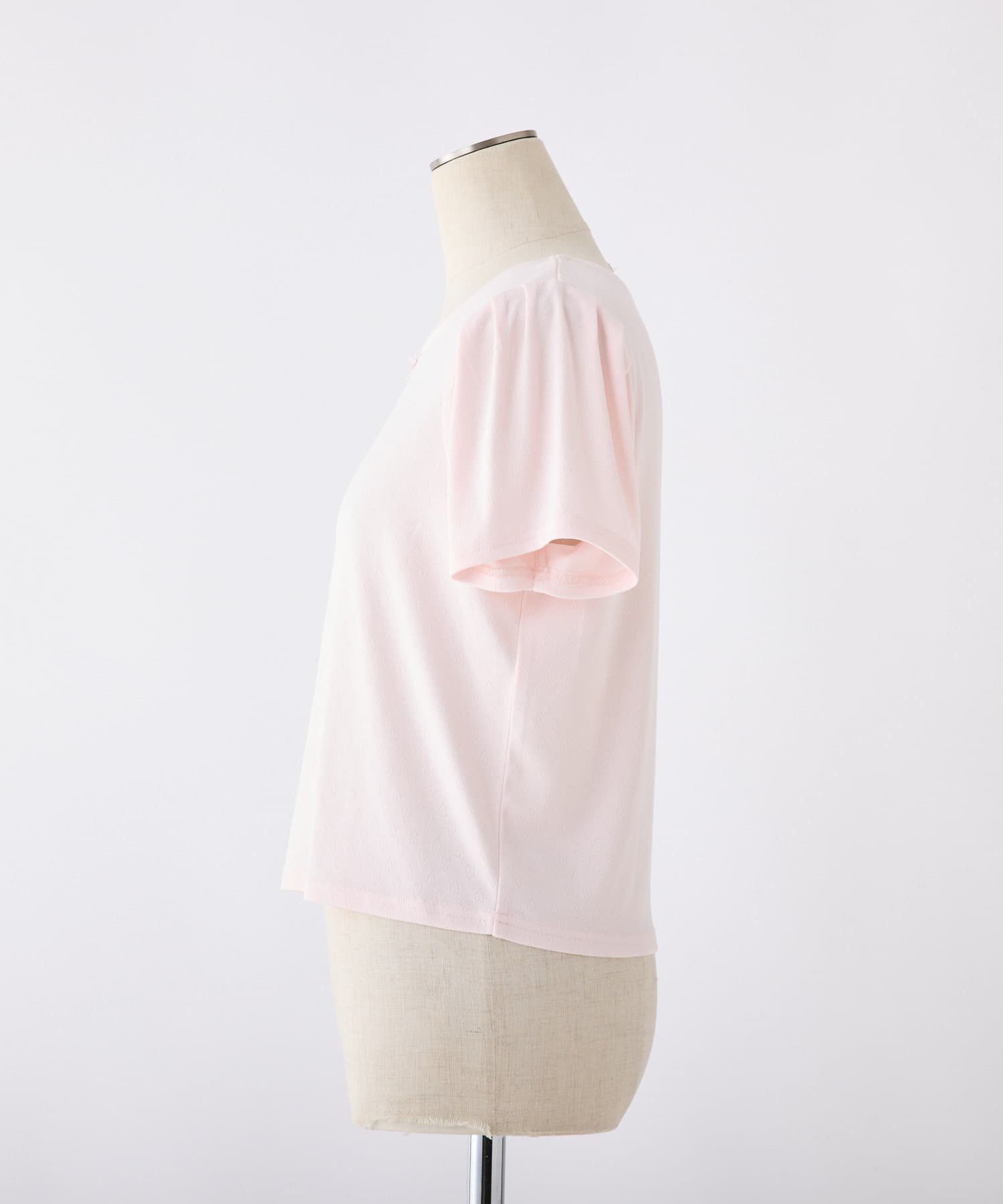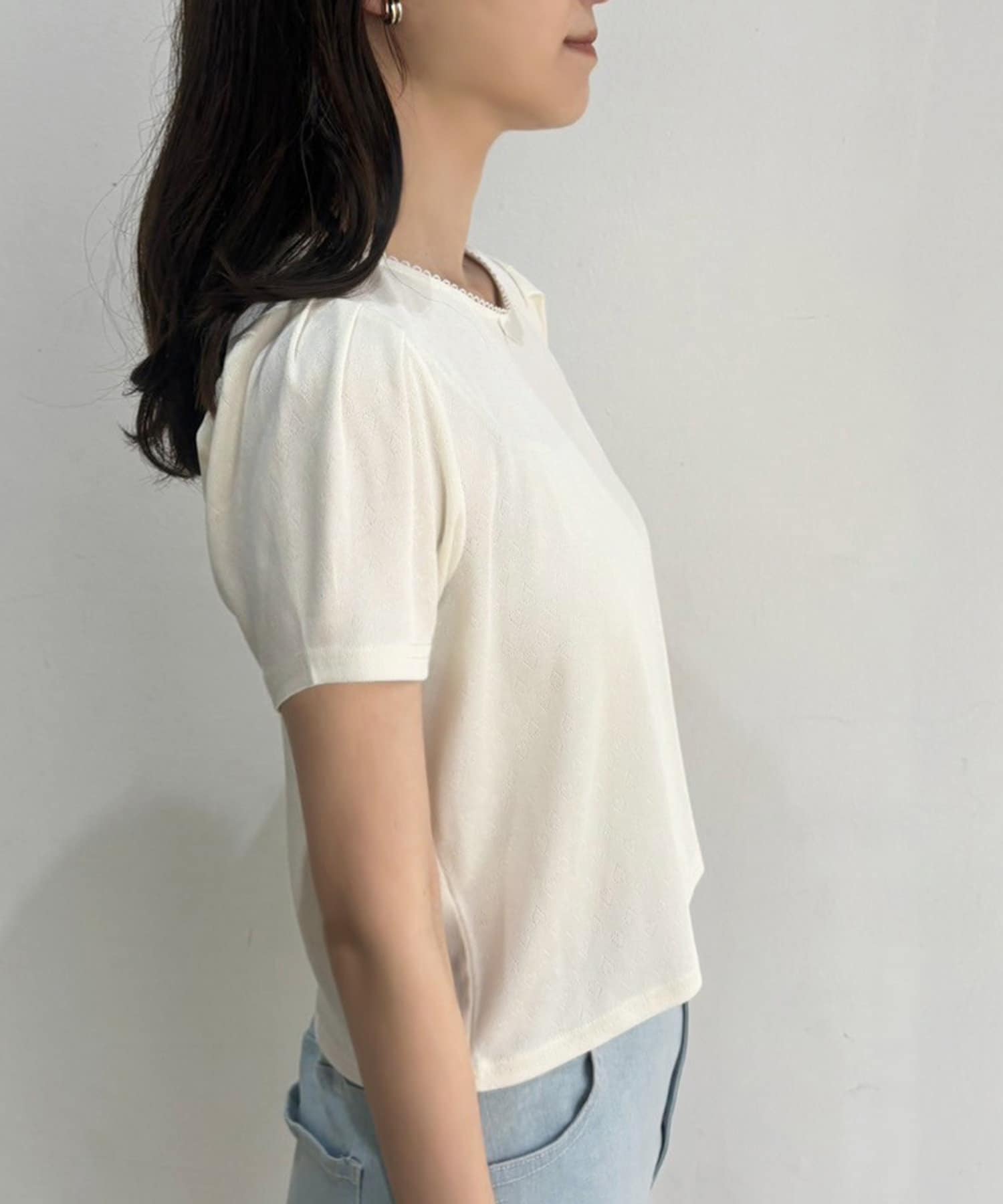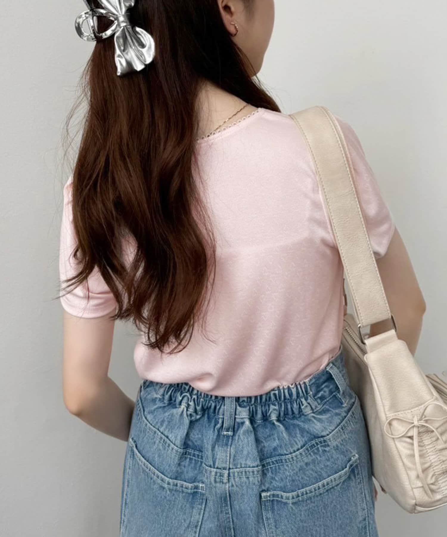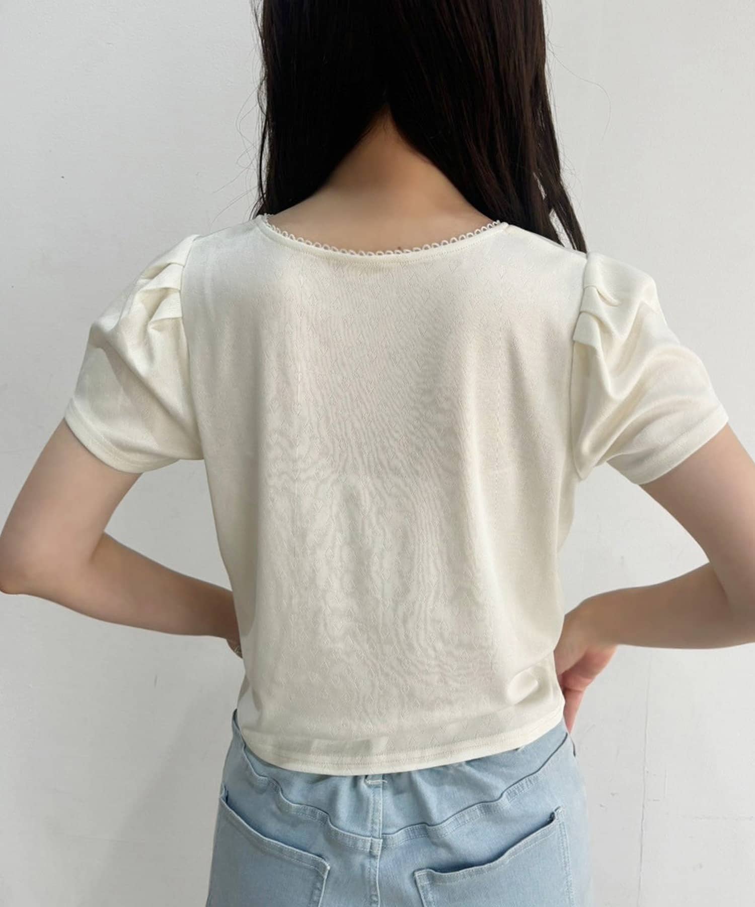 ハート柄の透かし網や首元のピコレースがガーリーさを演出してくれます。