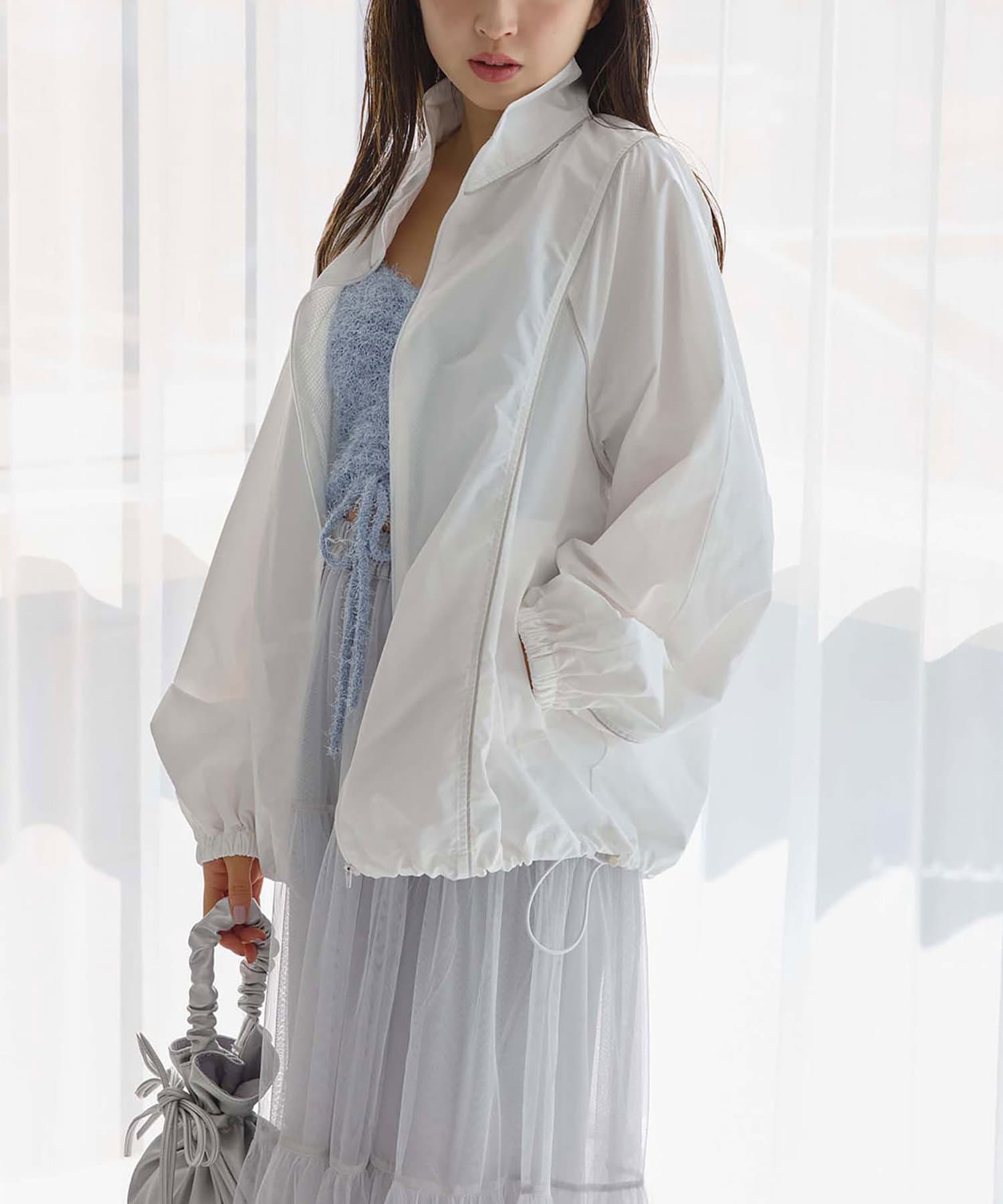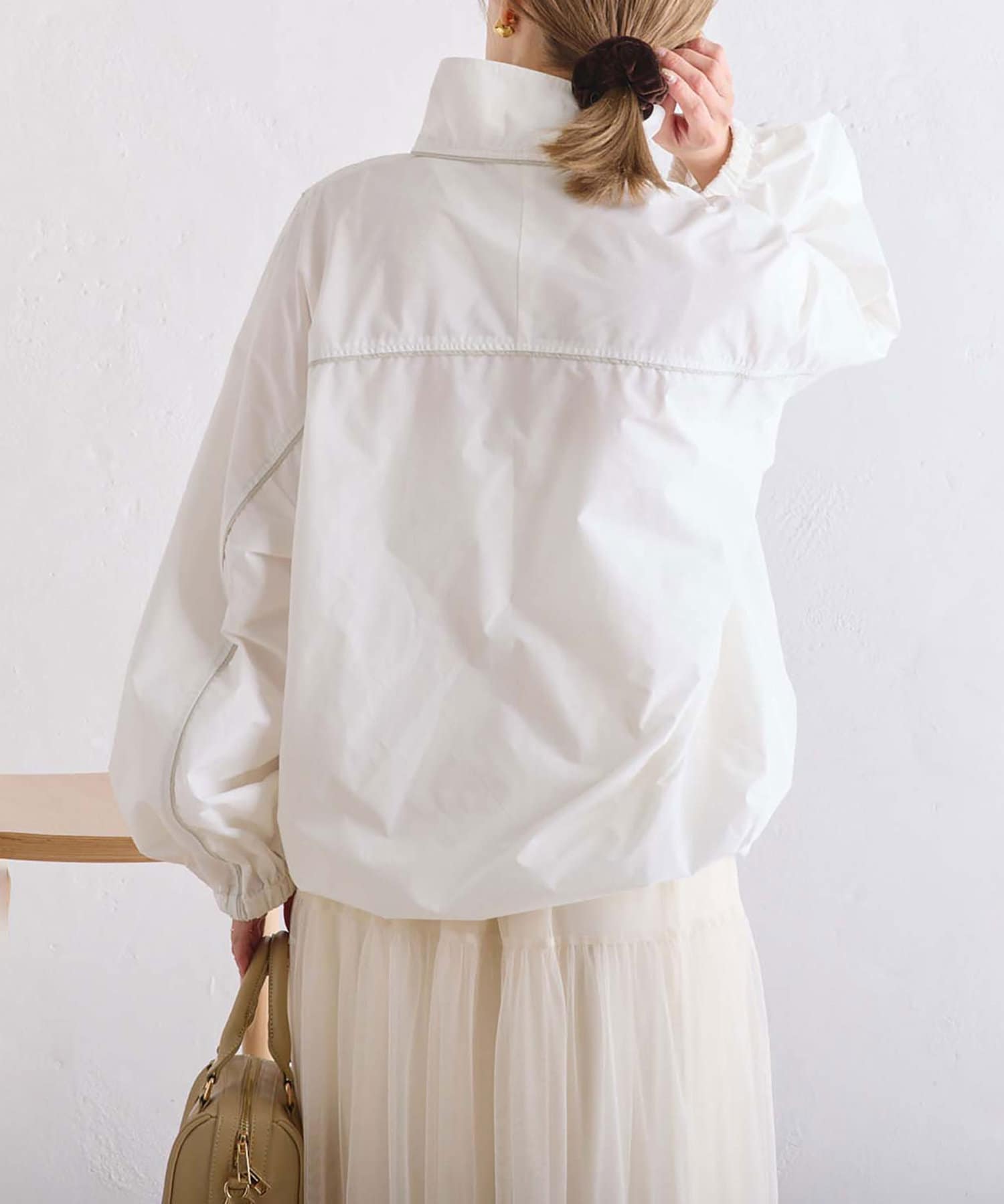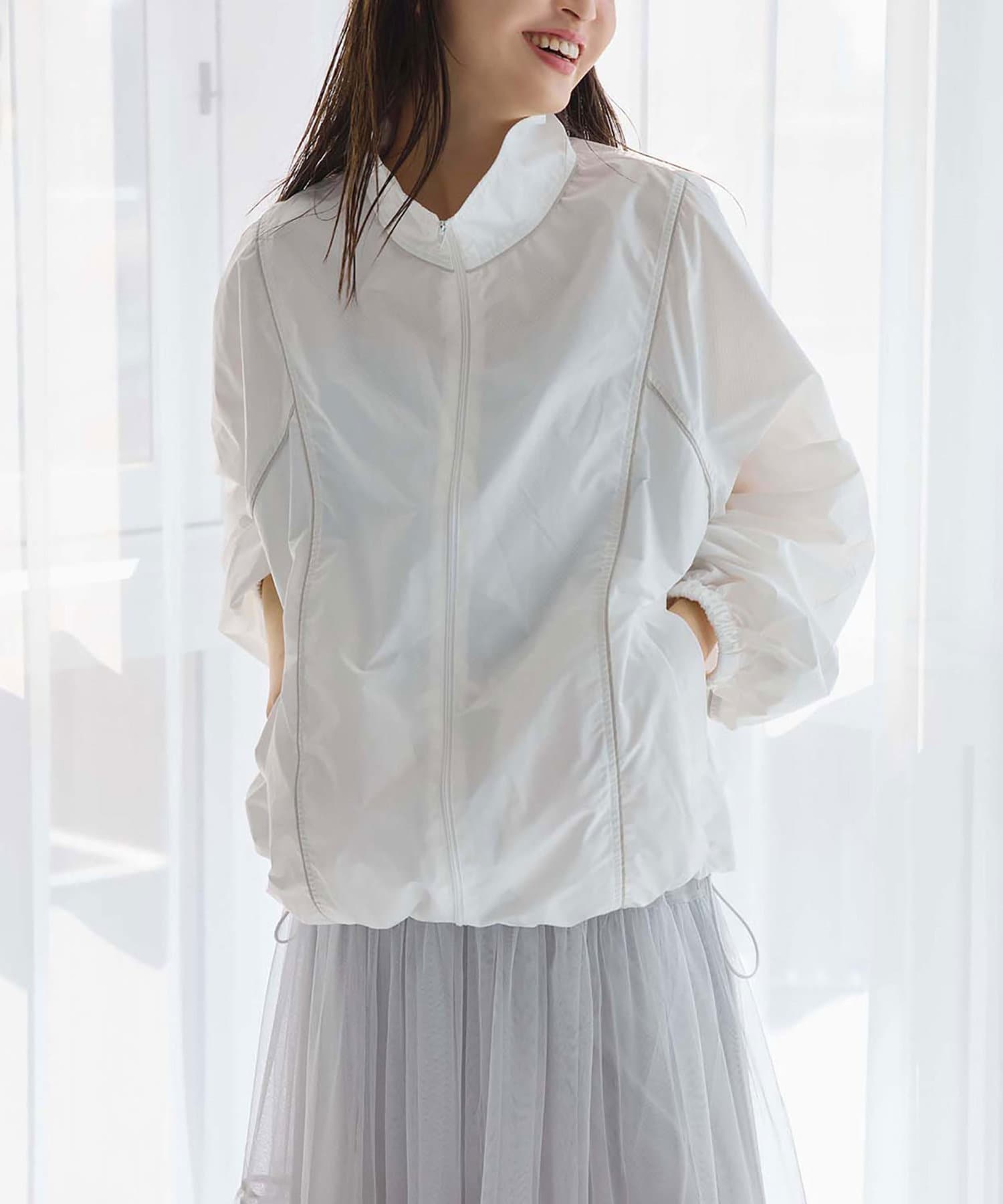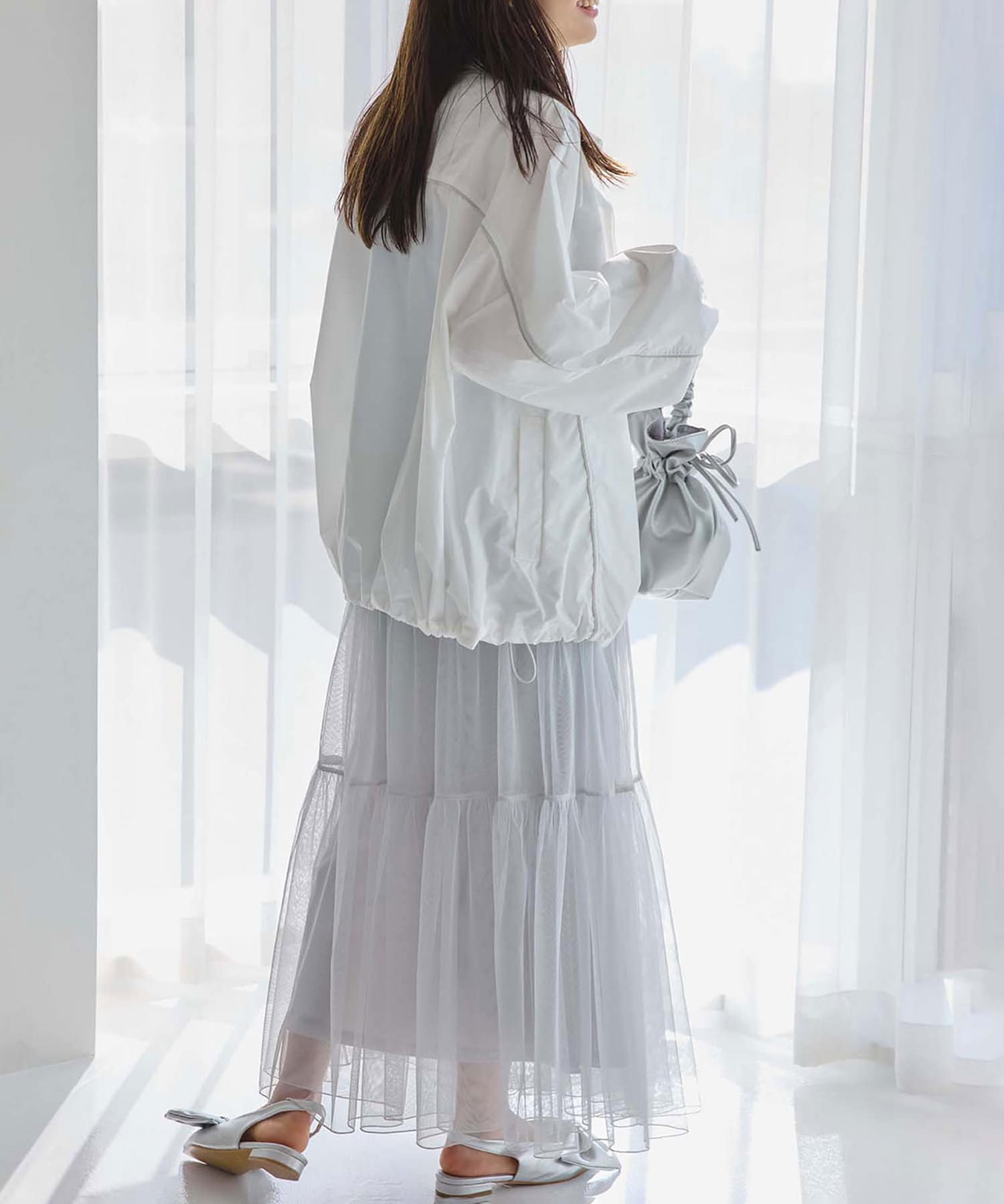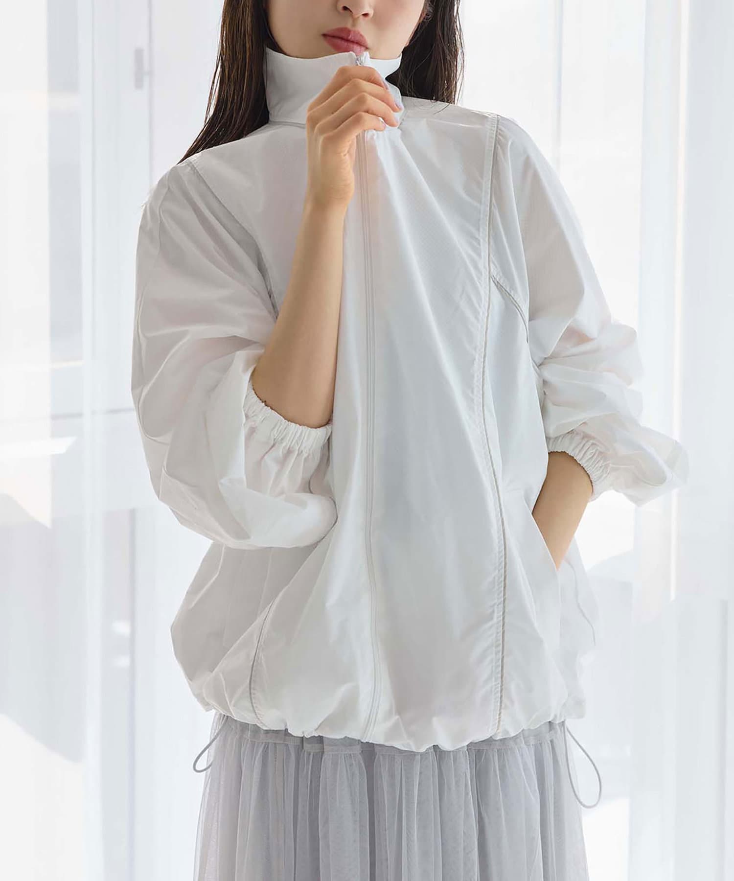 裾はゴムで調整が出来る仕様に。ゴムが表に出てこないように裏に止めループがついており、ディティールにもこだわった1枚です。