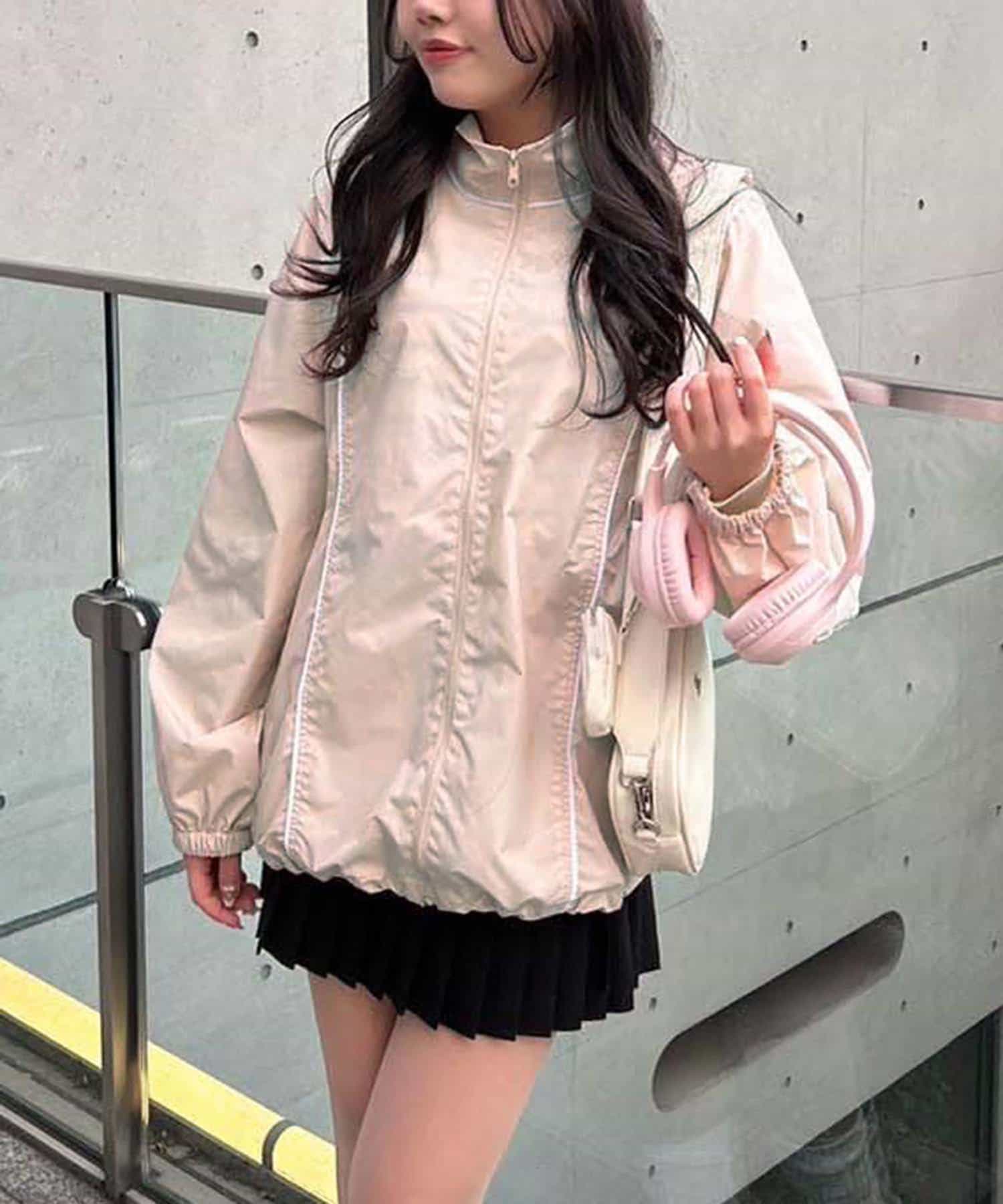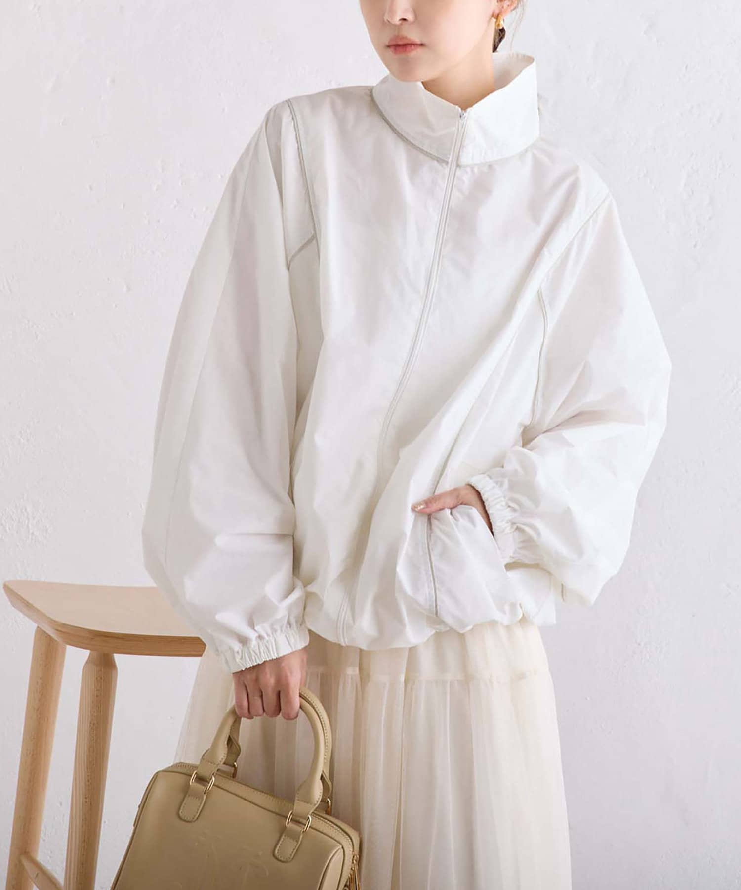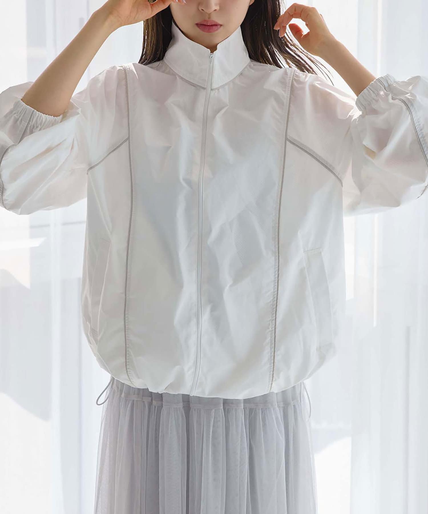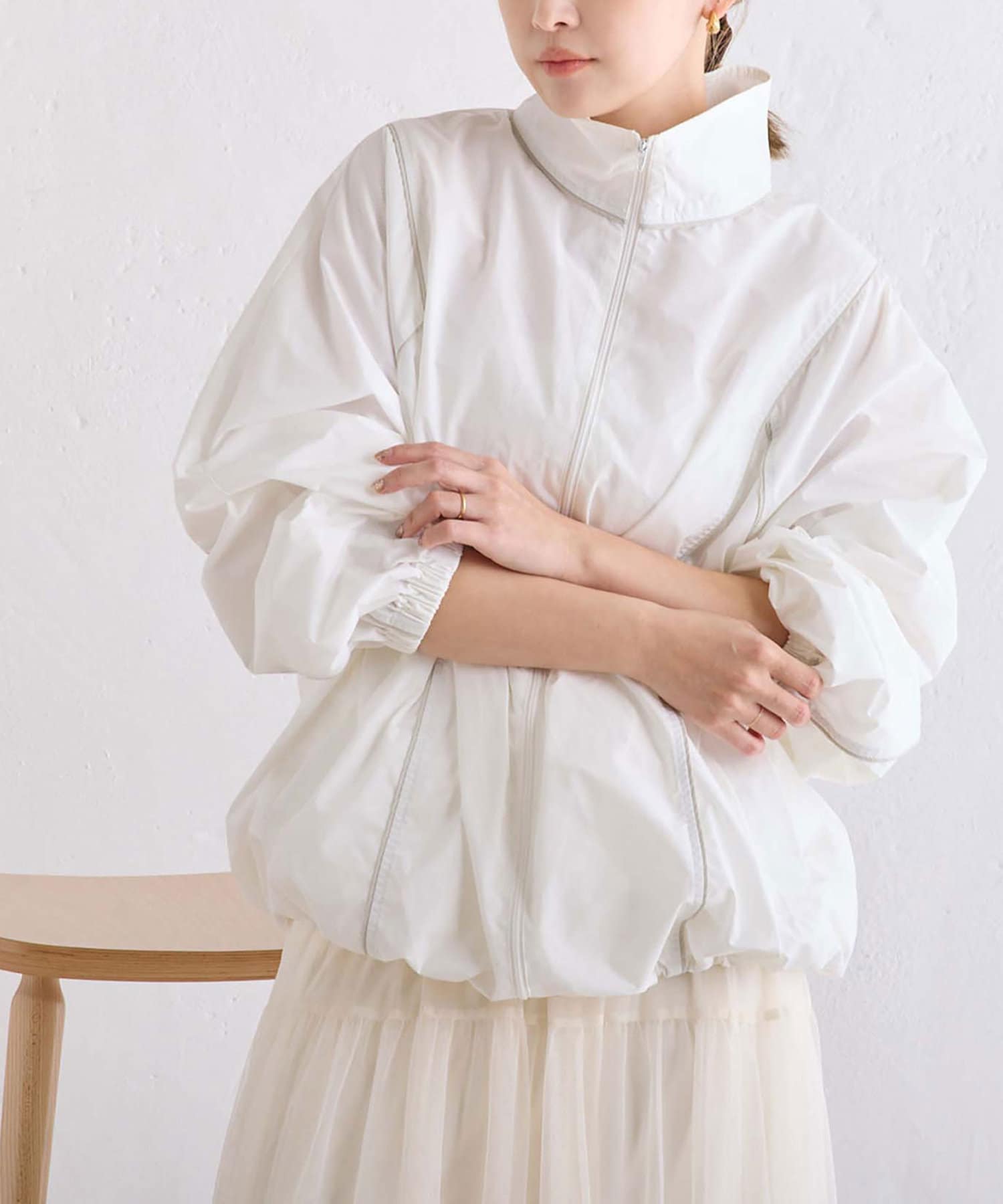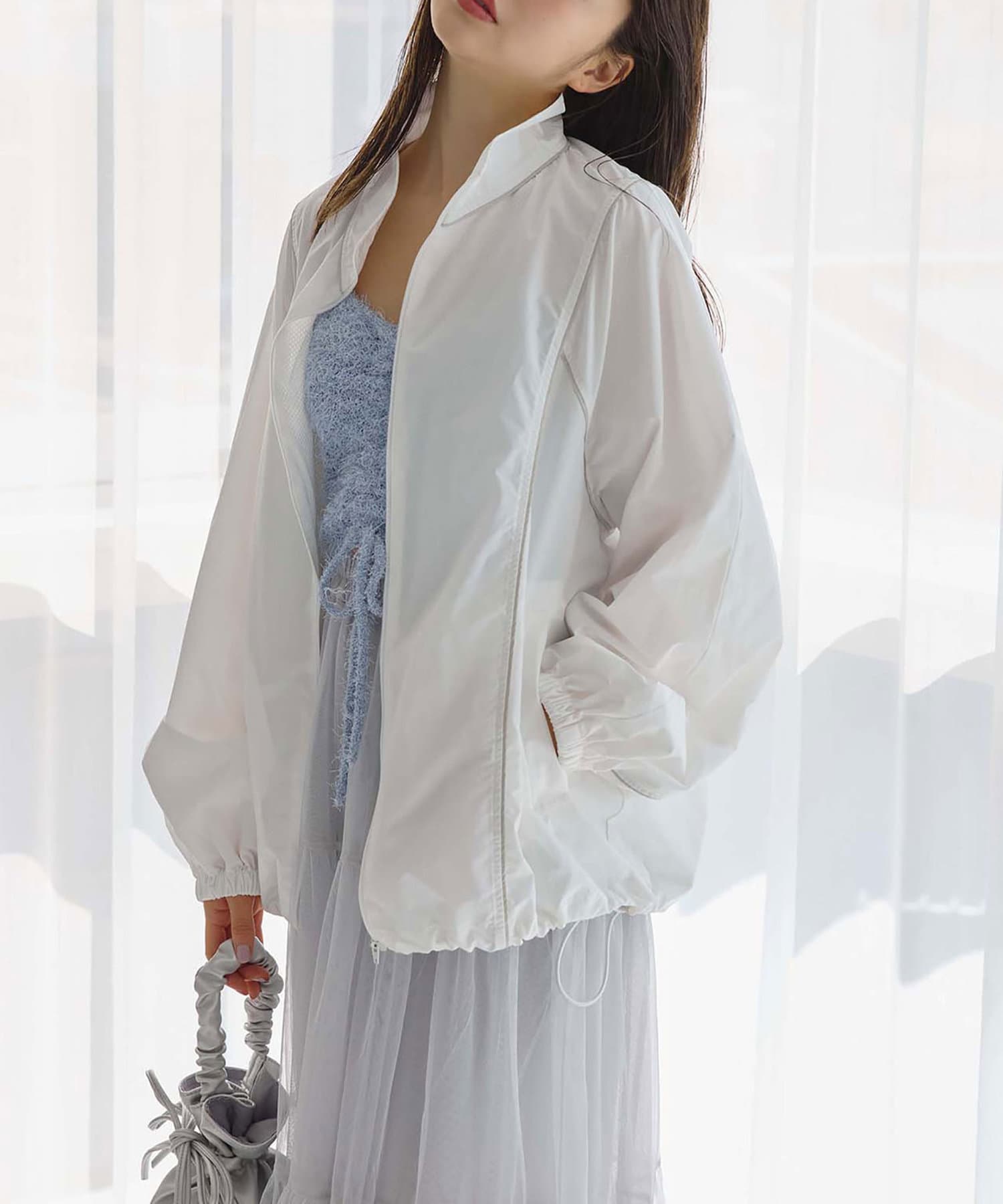 裾はゴムで調整が出来る仕様に。ゴムが表に出てこないように裏に止めループがついており、ディティールにもこだわった1枚です。