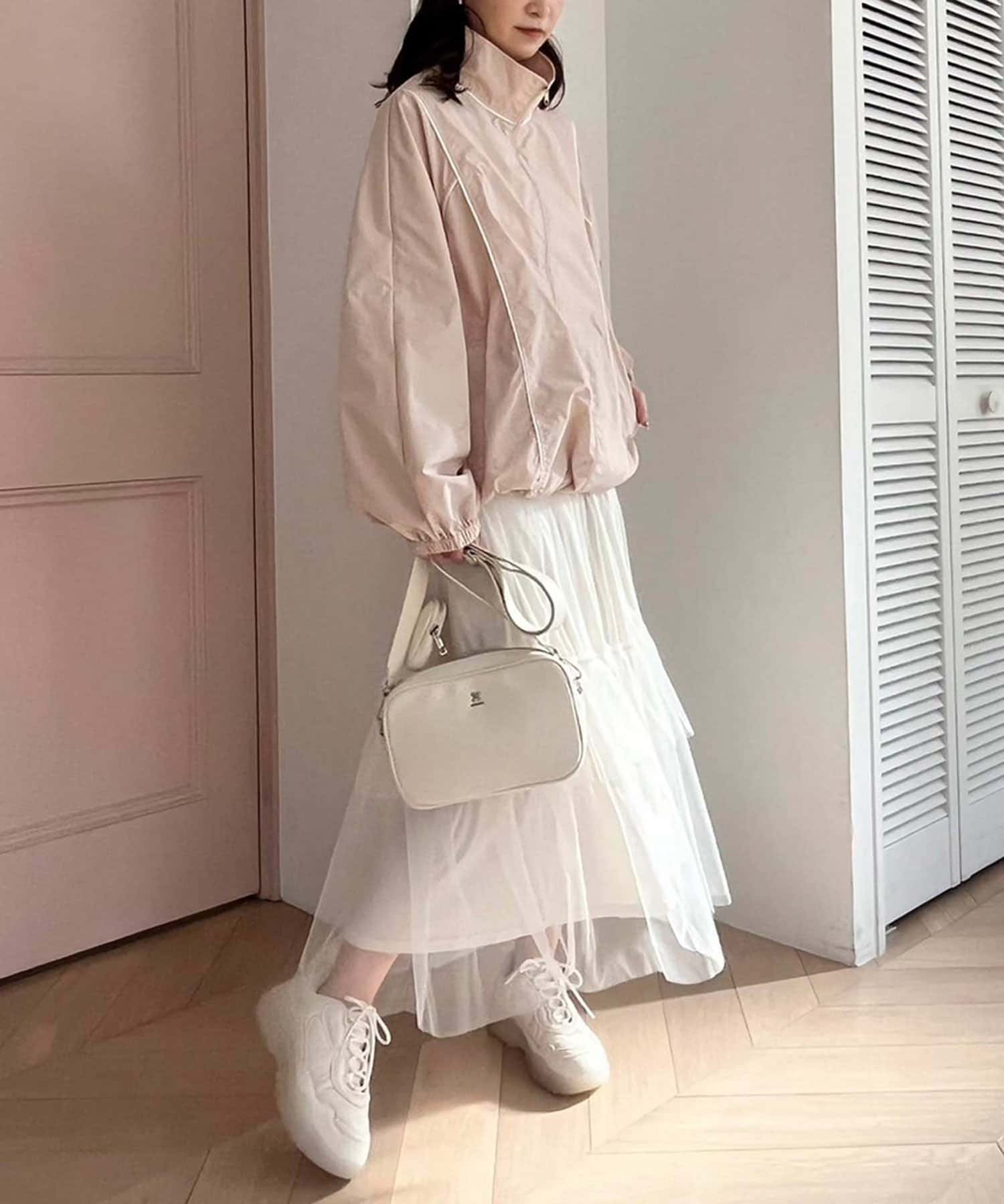 甘めなスタイリングに合わせていただくと抜け感がでて今年らしい印象に。