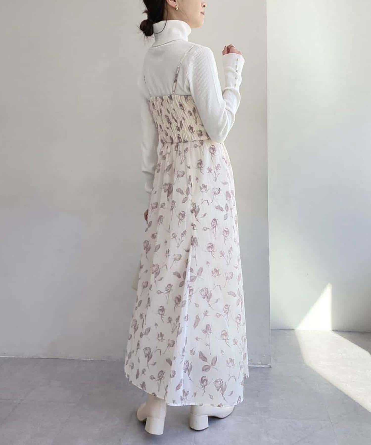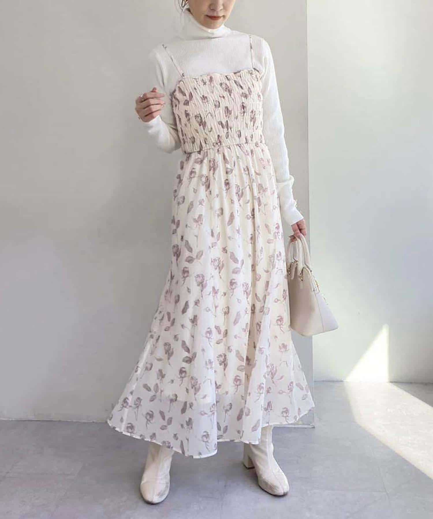キャミワンピースは違うトップスを重ねたり、シアーインナーを重ねて着れば