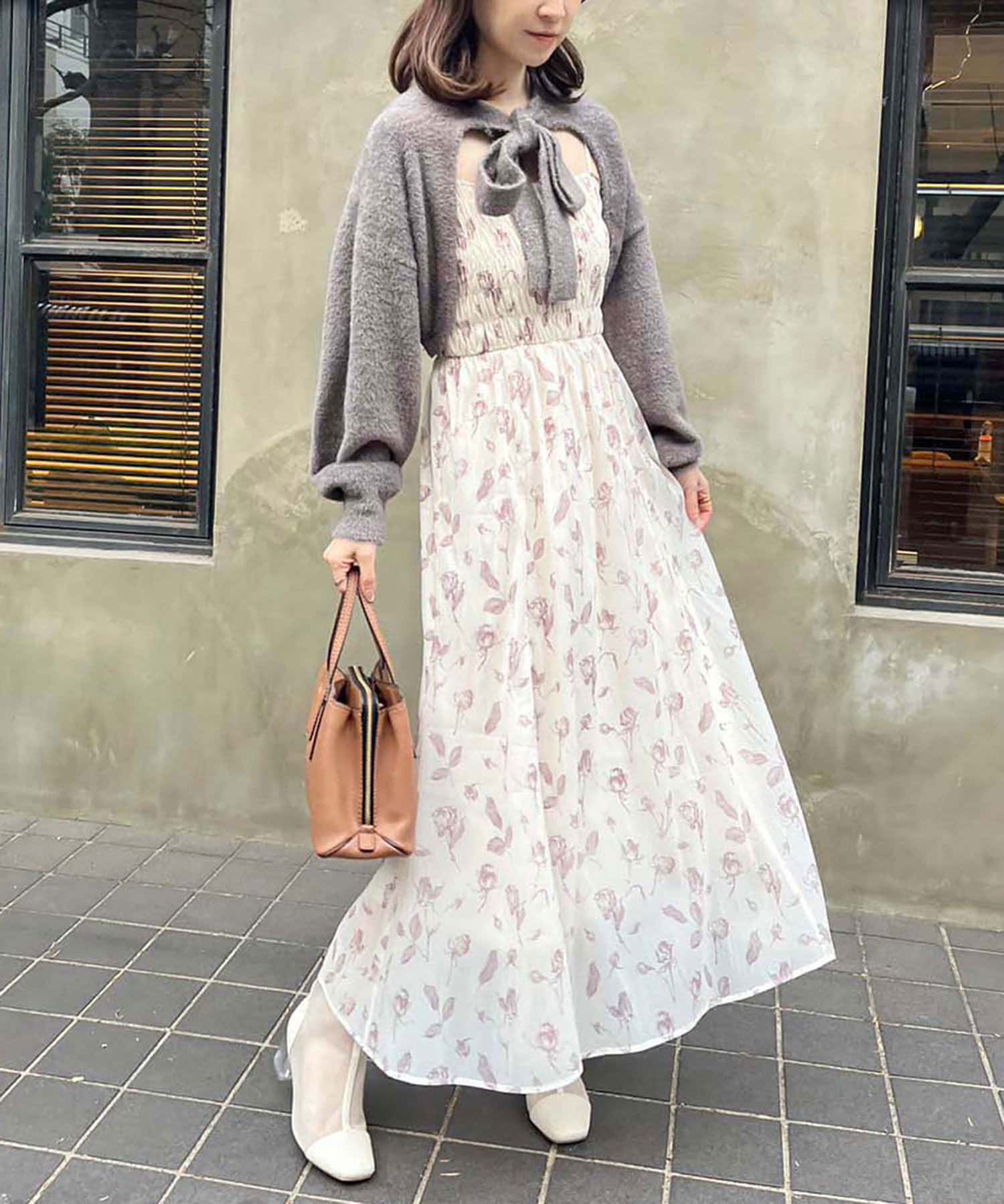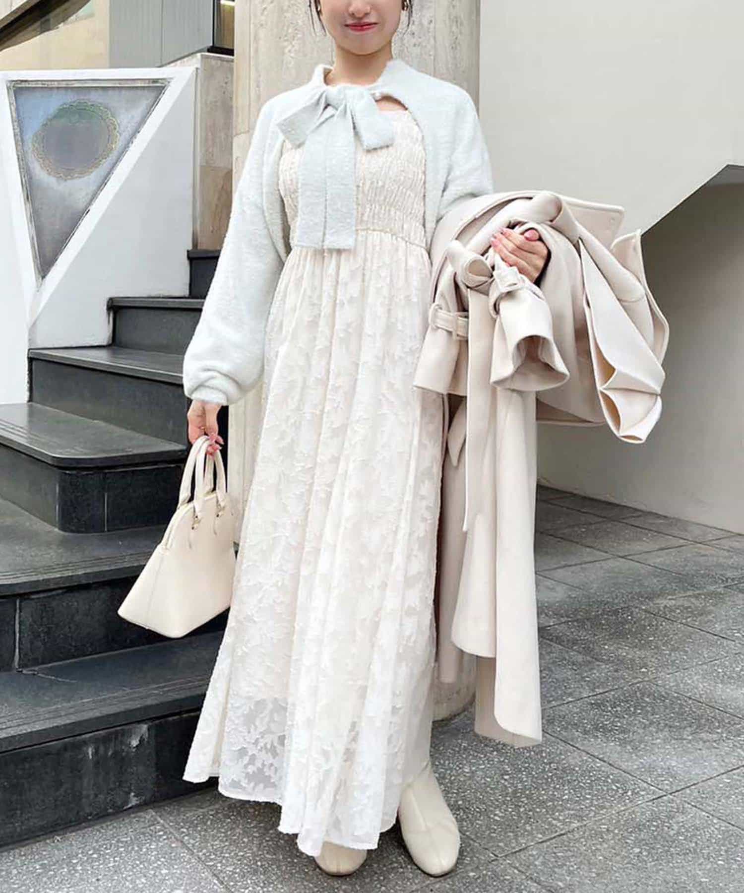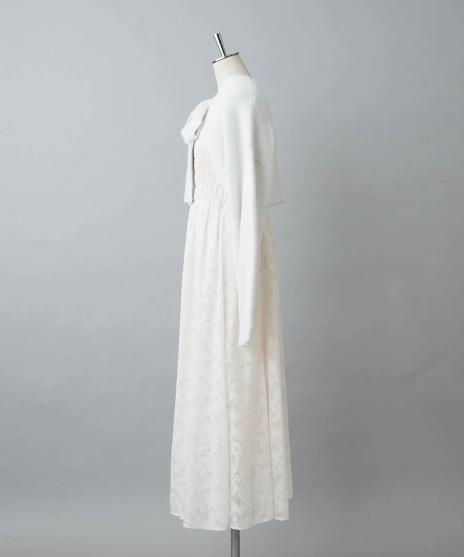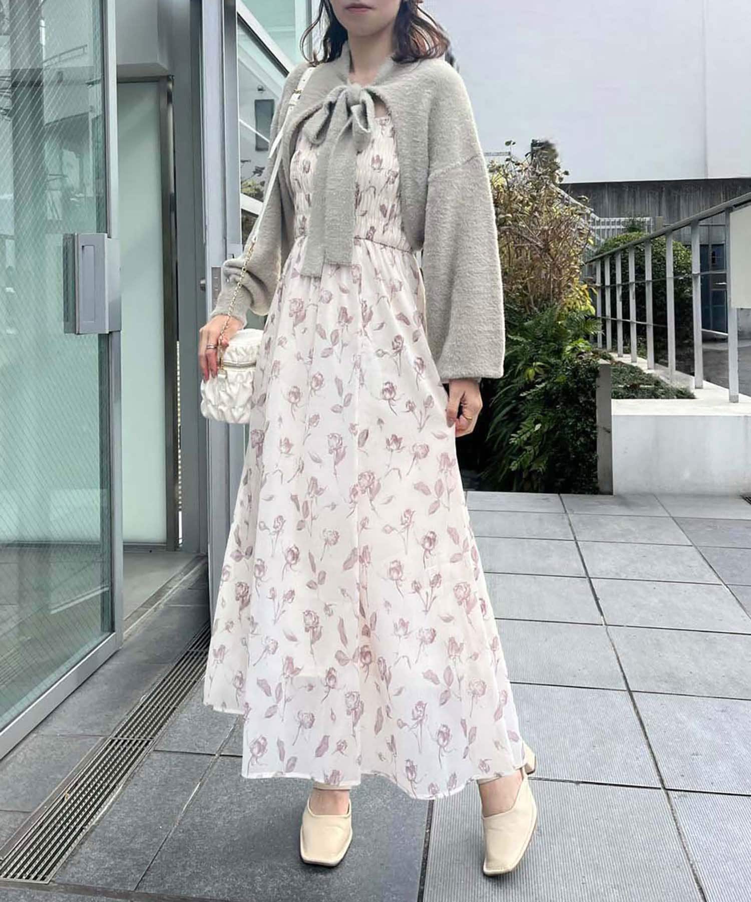胸元にシャーリングを施したキャミワンピース×ボレロのセットアイテム