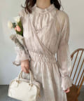 袖にもシャーリング加工を施し、ふんわりとしたシルエットもポイント。