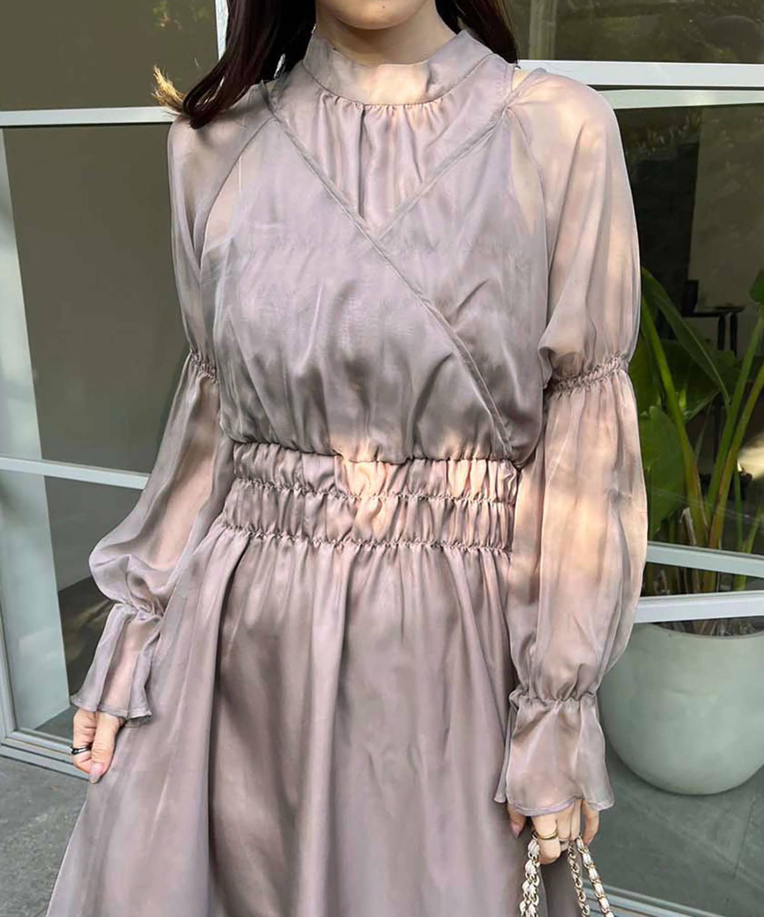 カシュクール風のデザイン上品で大人っぽい印象に。